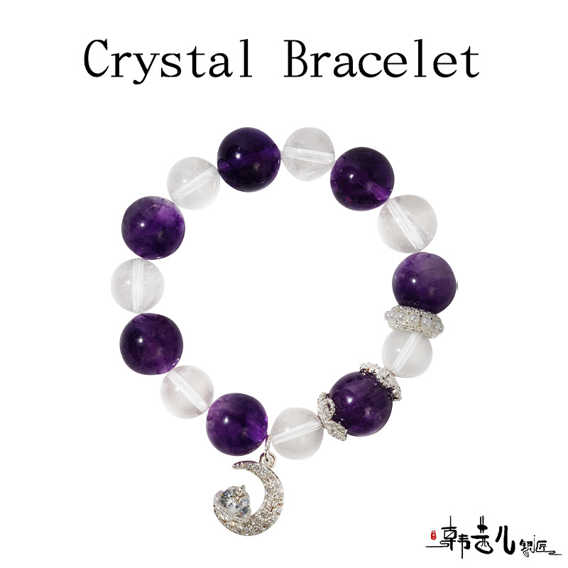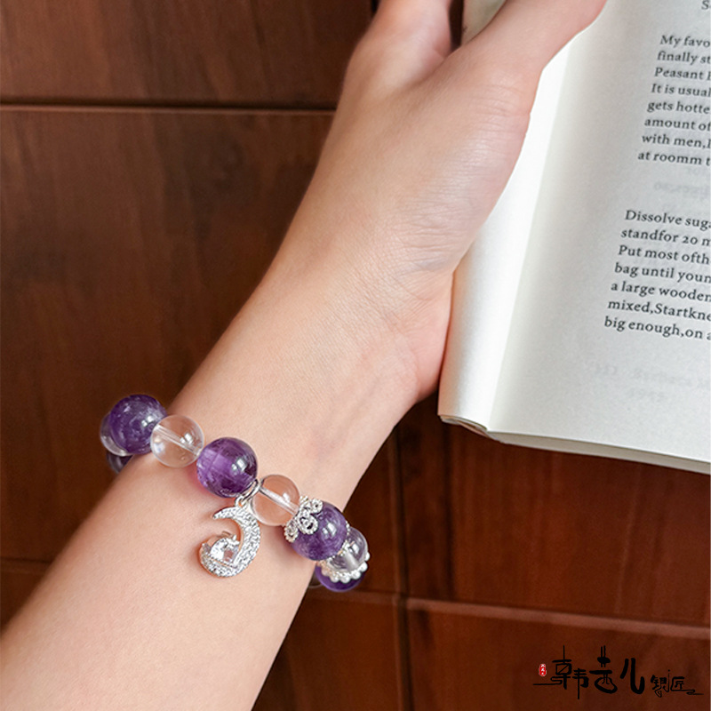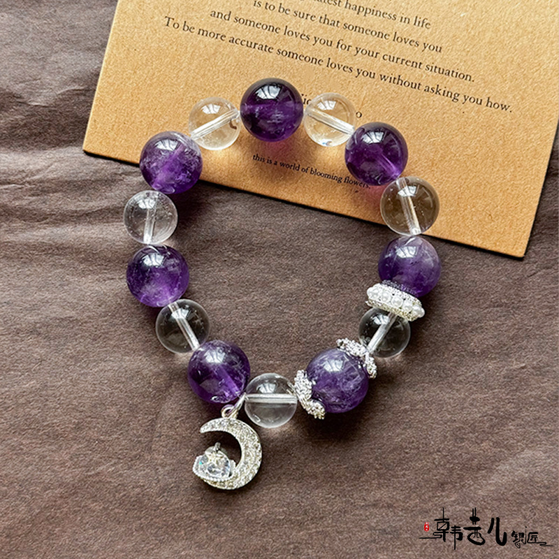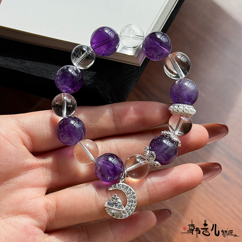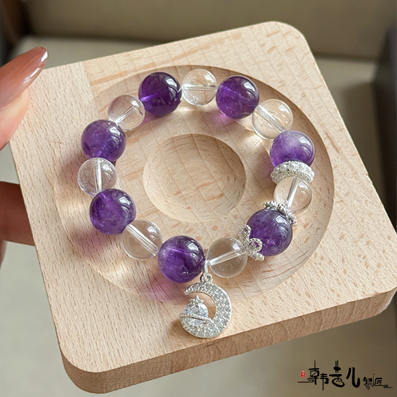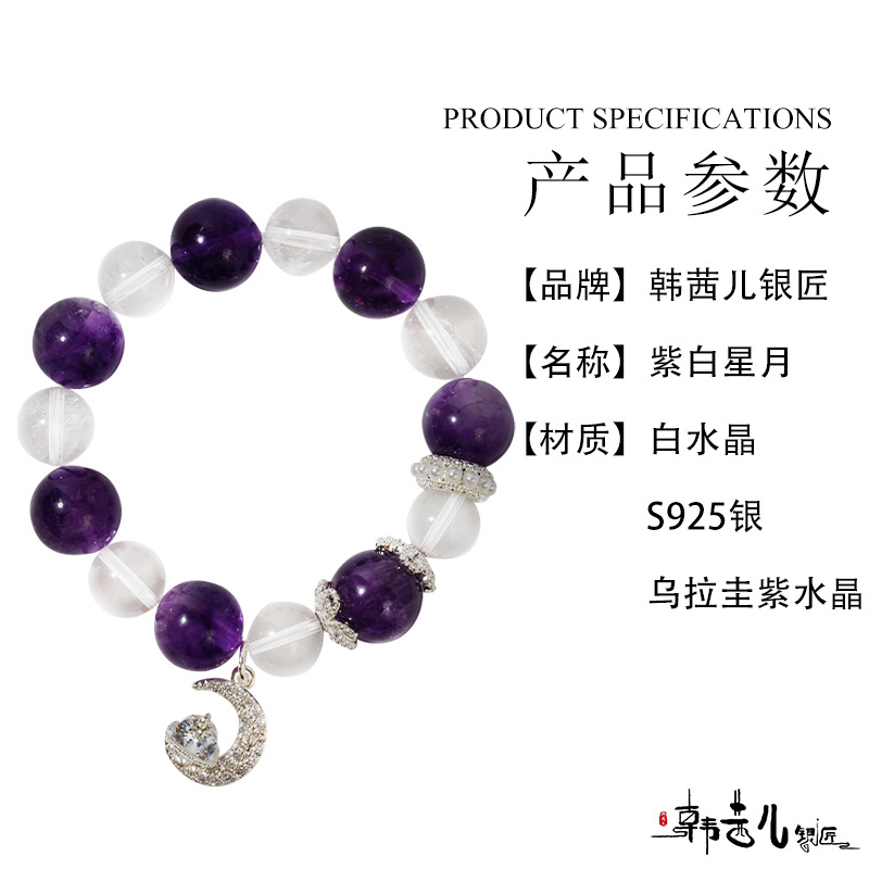 韩茜儿银匠天然白水晶茶晶时尚高级百搭手串手链招财ZB0019