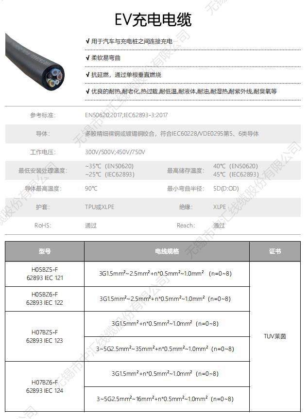 TUV认证H07-F电子线镀锡铜欧标充电枪电缆三芯五芯EV线缆