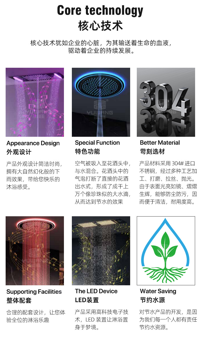 浴旺跨境不锈钢顶喷花洒荣耀400恒温酒店音乐智能情调淋浴套装