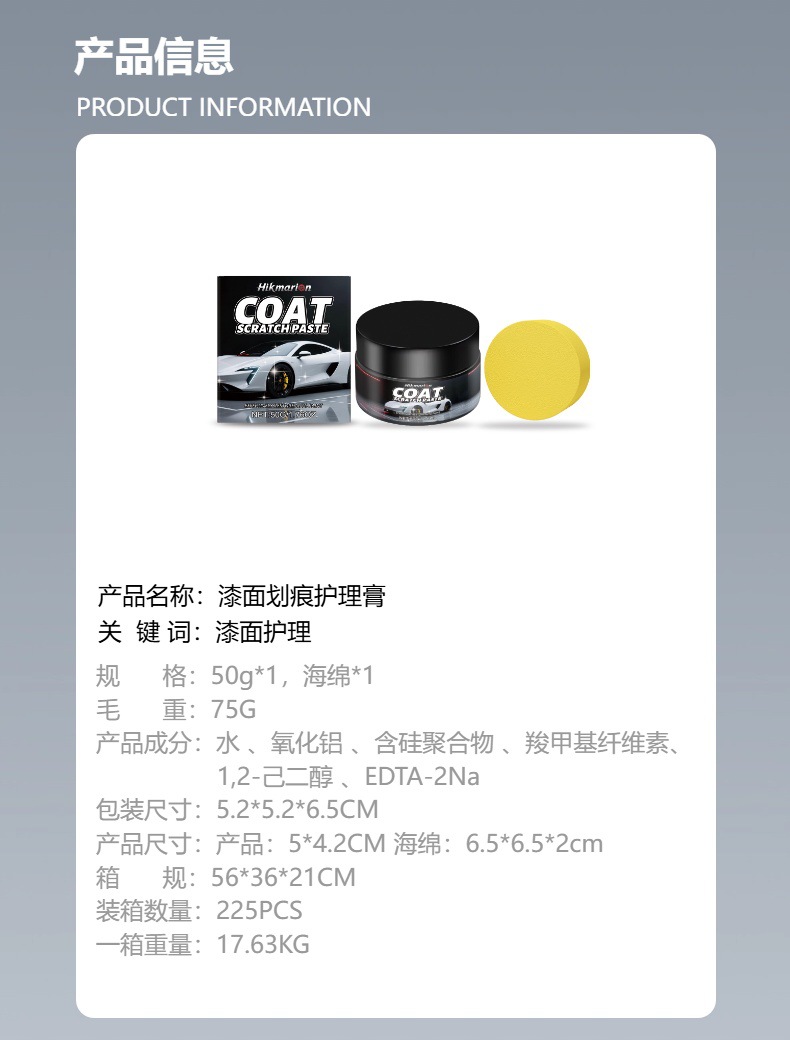 Hikmarion 漆面划痕护理膏 清洁污渍膏体均匀覆盖提升车身光泽度