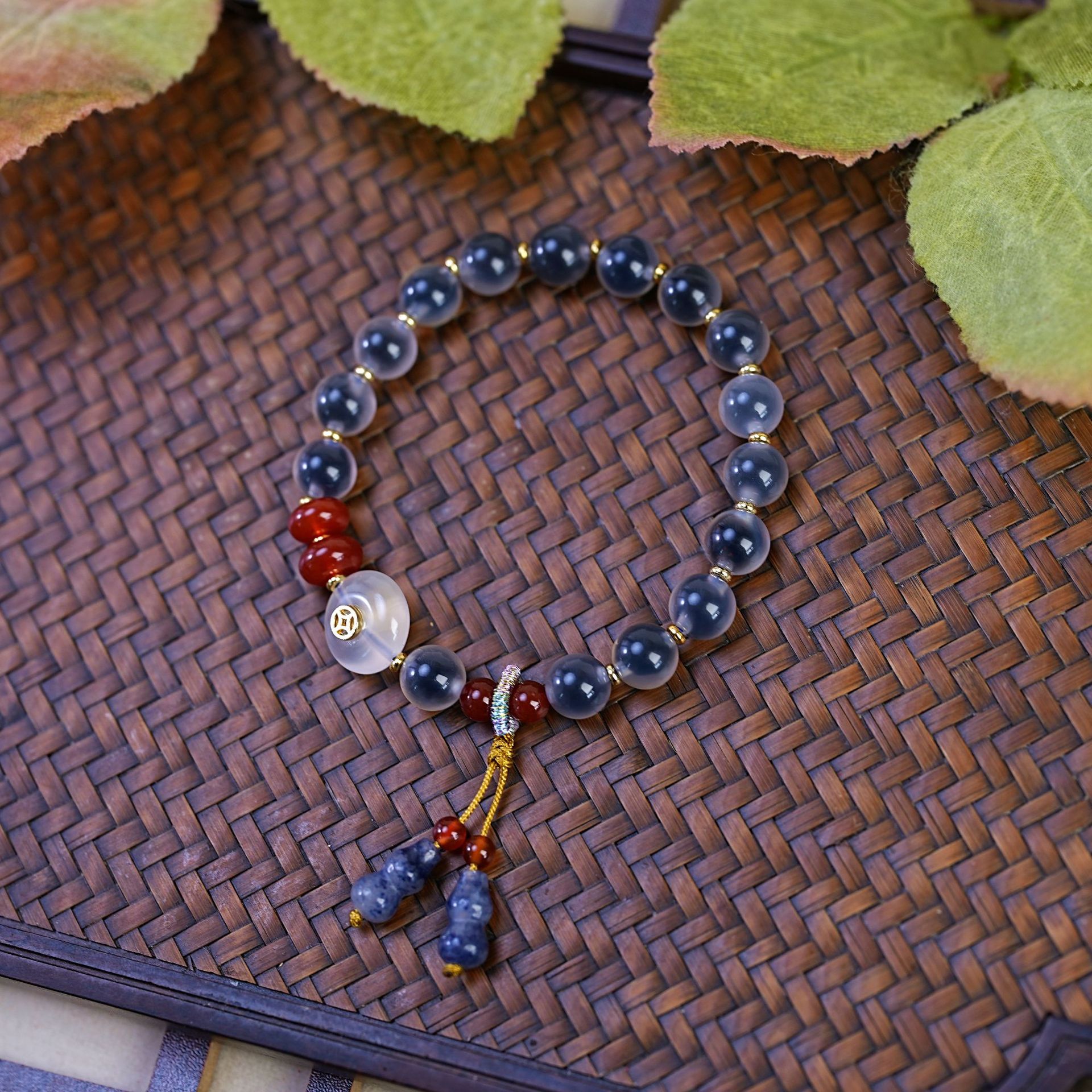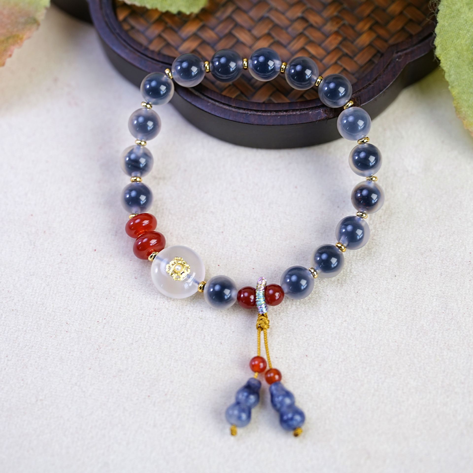 蓝溏心玛瑙手串女盐源平安扣宫廷风吊坠珍珠手链串珠饰品配饰批发