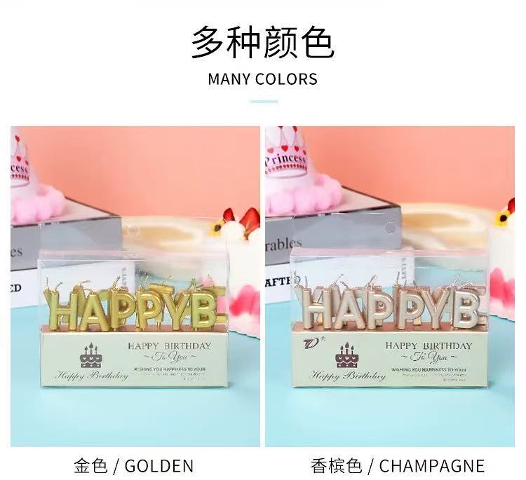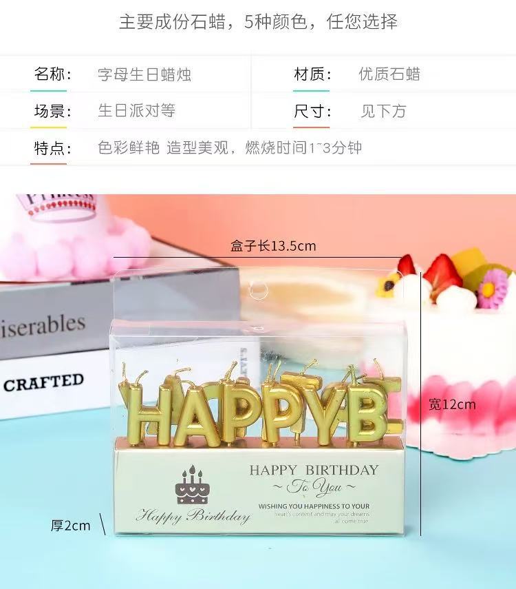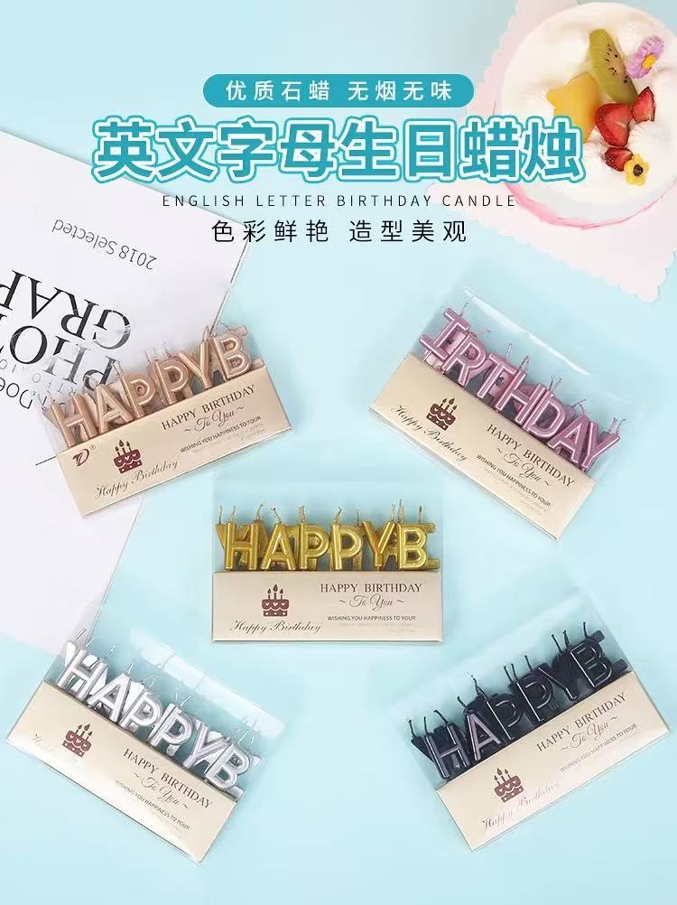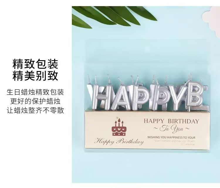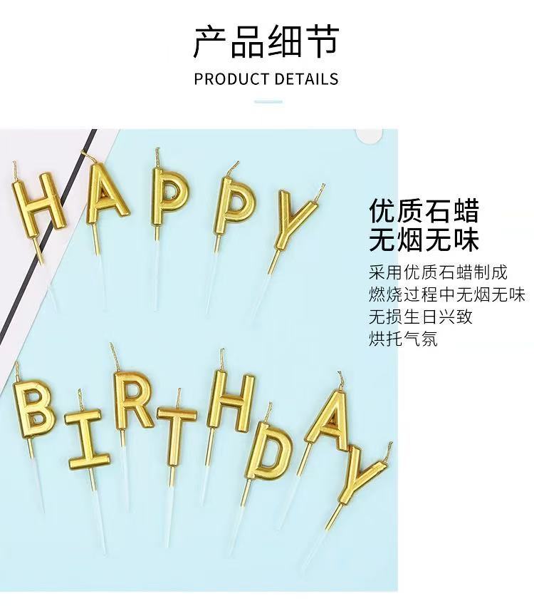 创意生日蛋糕蜡烛金色银色 HAPPY BIRTHDAY字母蜡烛派对蜡烛装饰