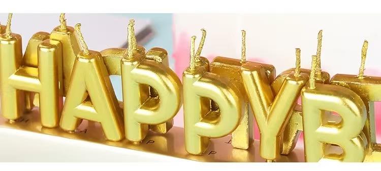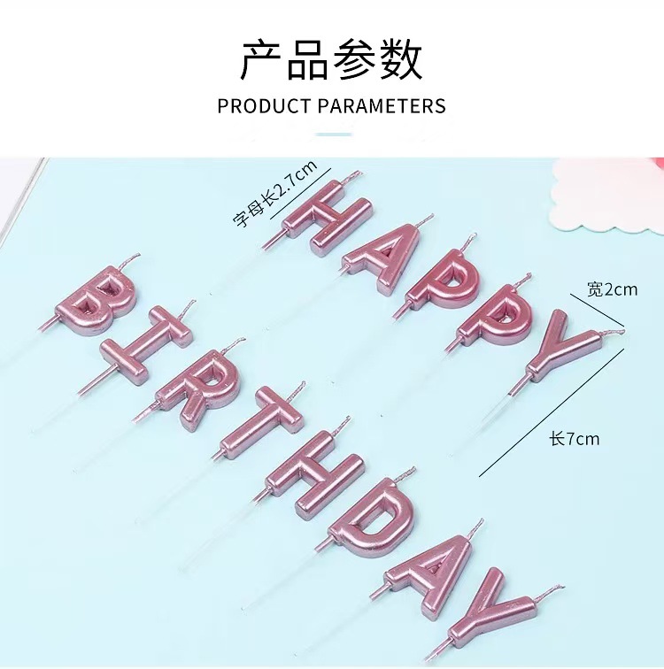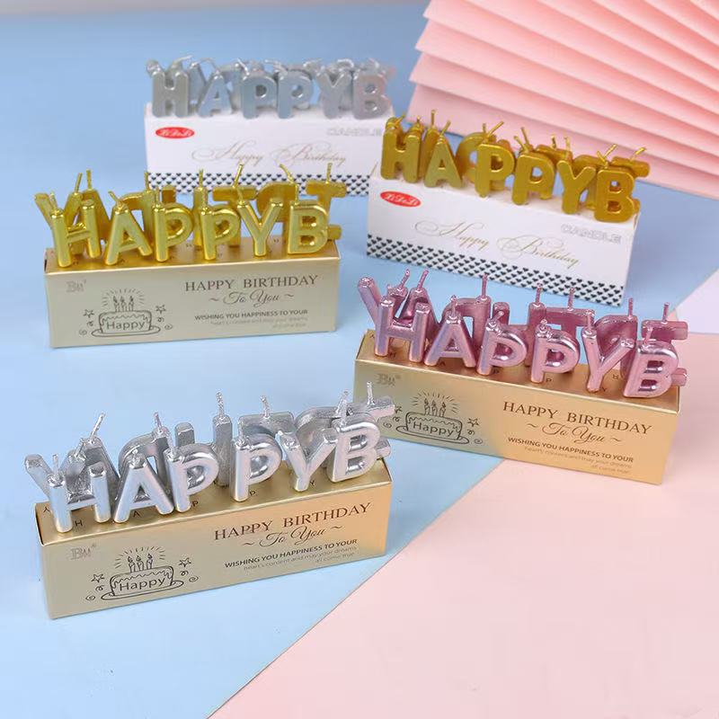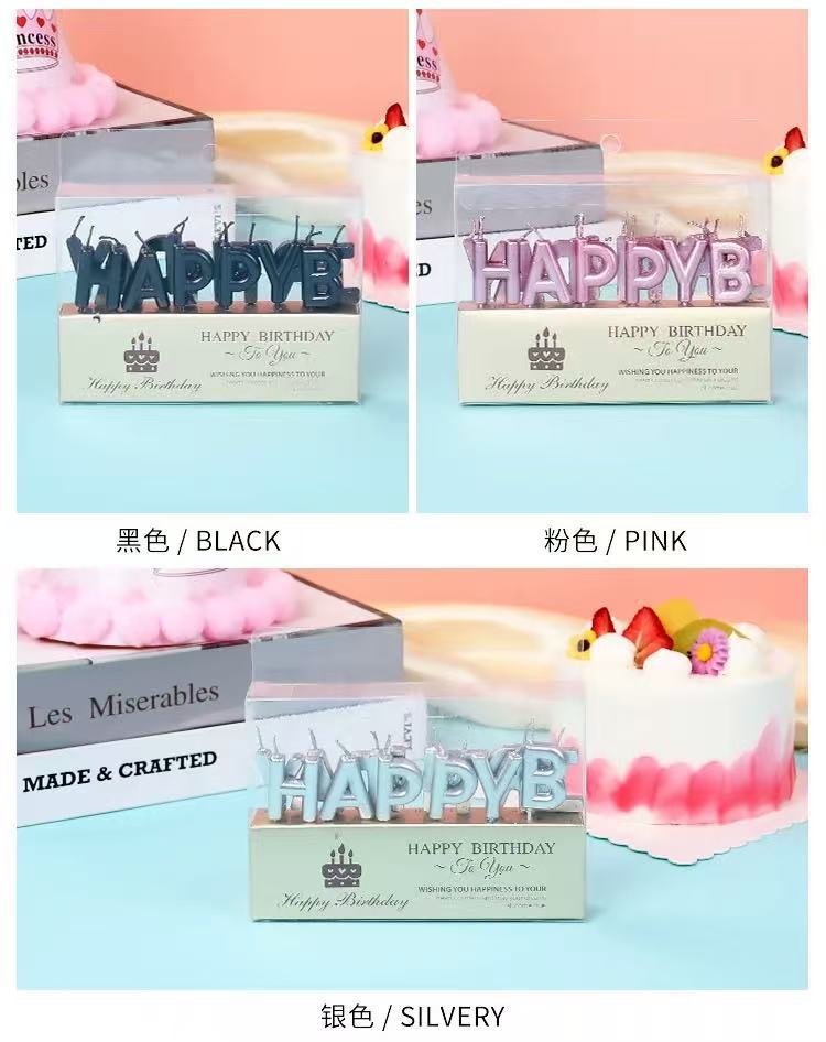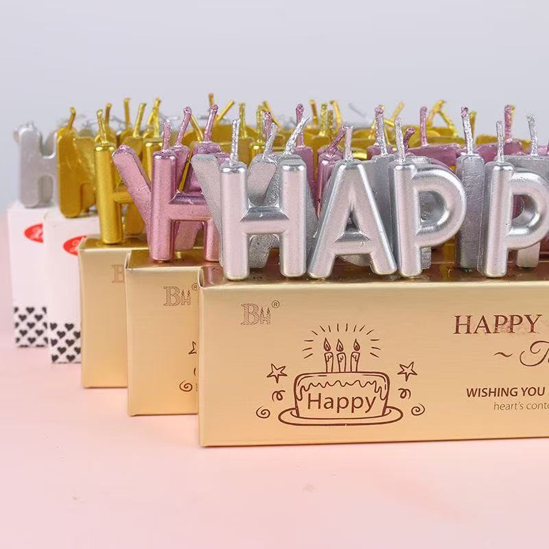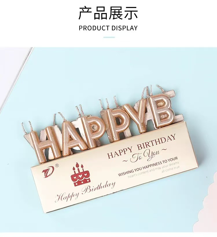 创意生日蛋糕蜡烛金色银色 HAPPY BIRTHDAY字母蜡烛派对蜡烛装饰