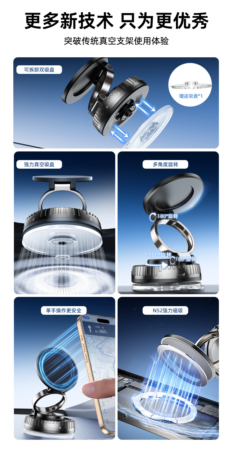 可拆卸吸盘式磁吸车载手机支架多功能车载支架汽车导航支架强吸力