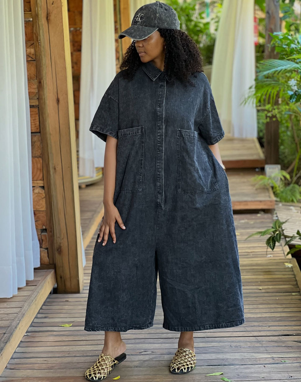 关键词:欧美女式连体裤,亚马逊跨境女装,短袖宽松连身裤,单排扣牛仔裤