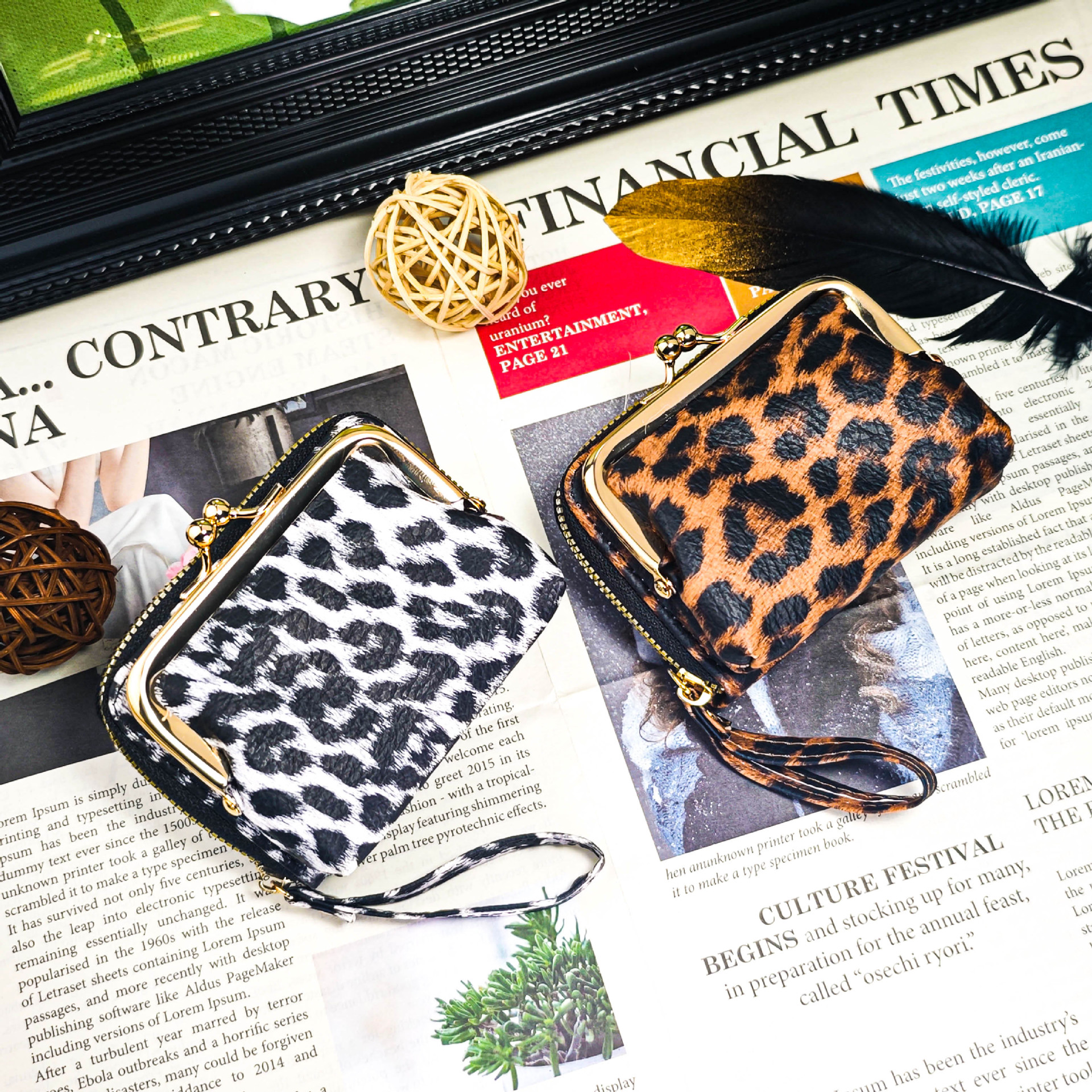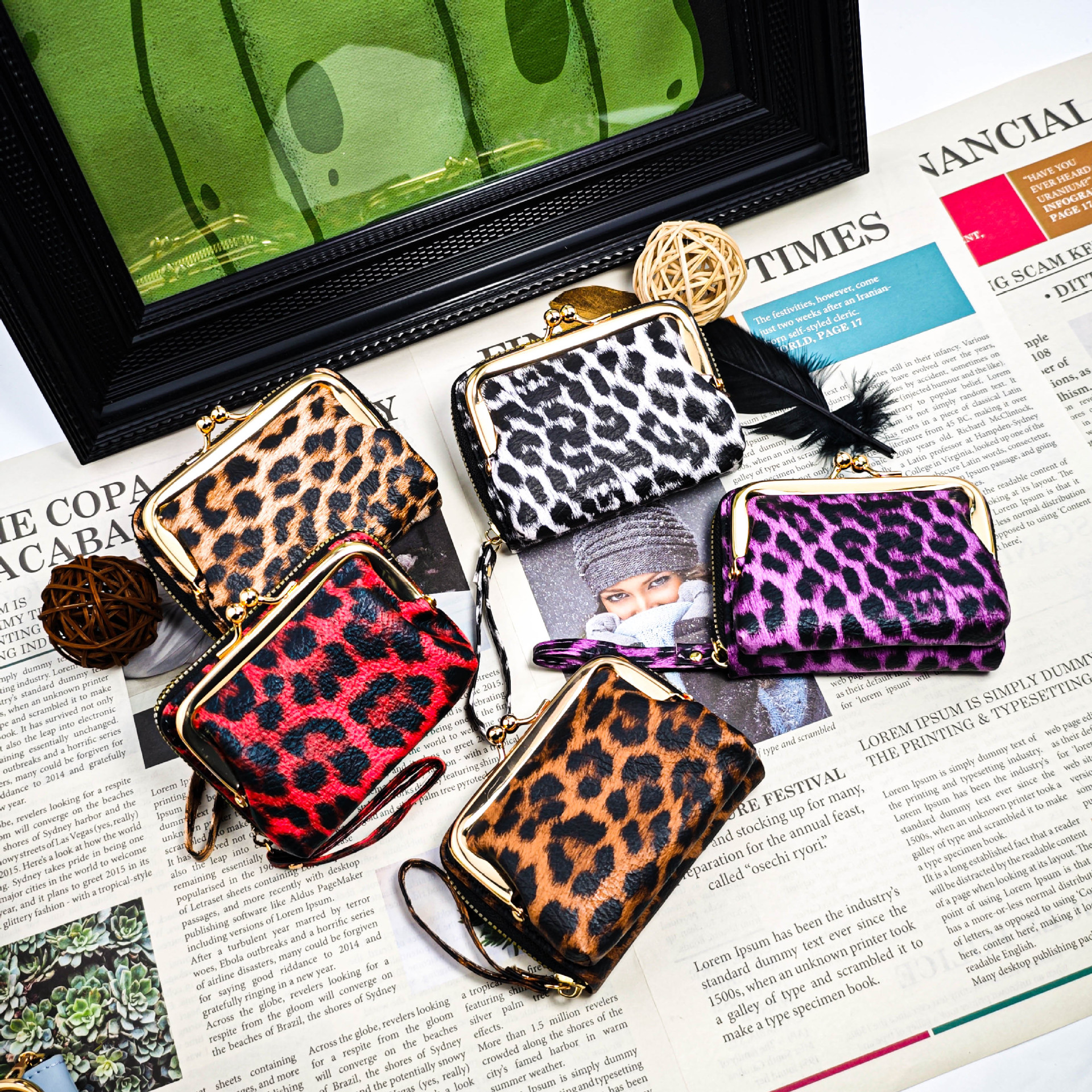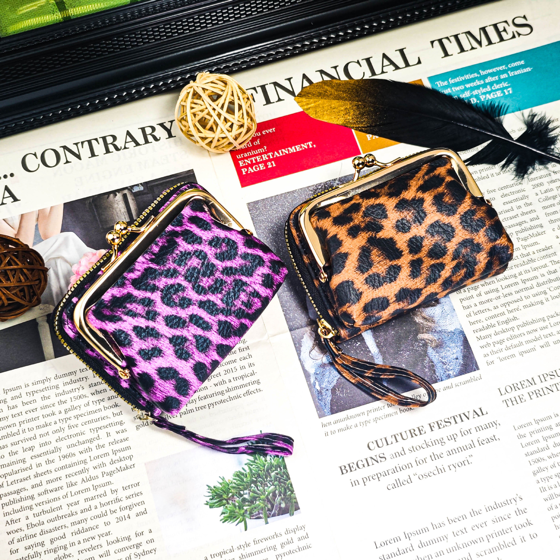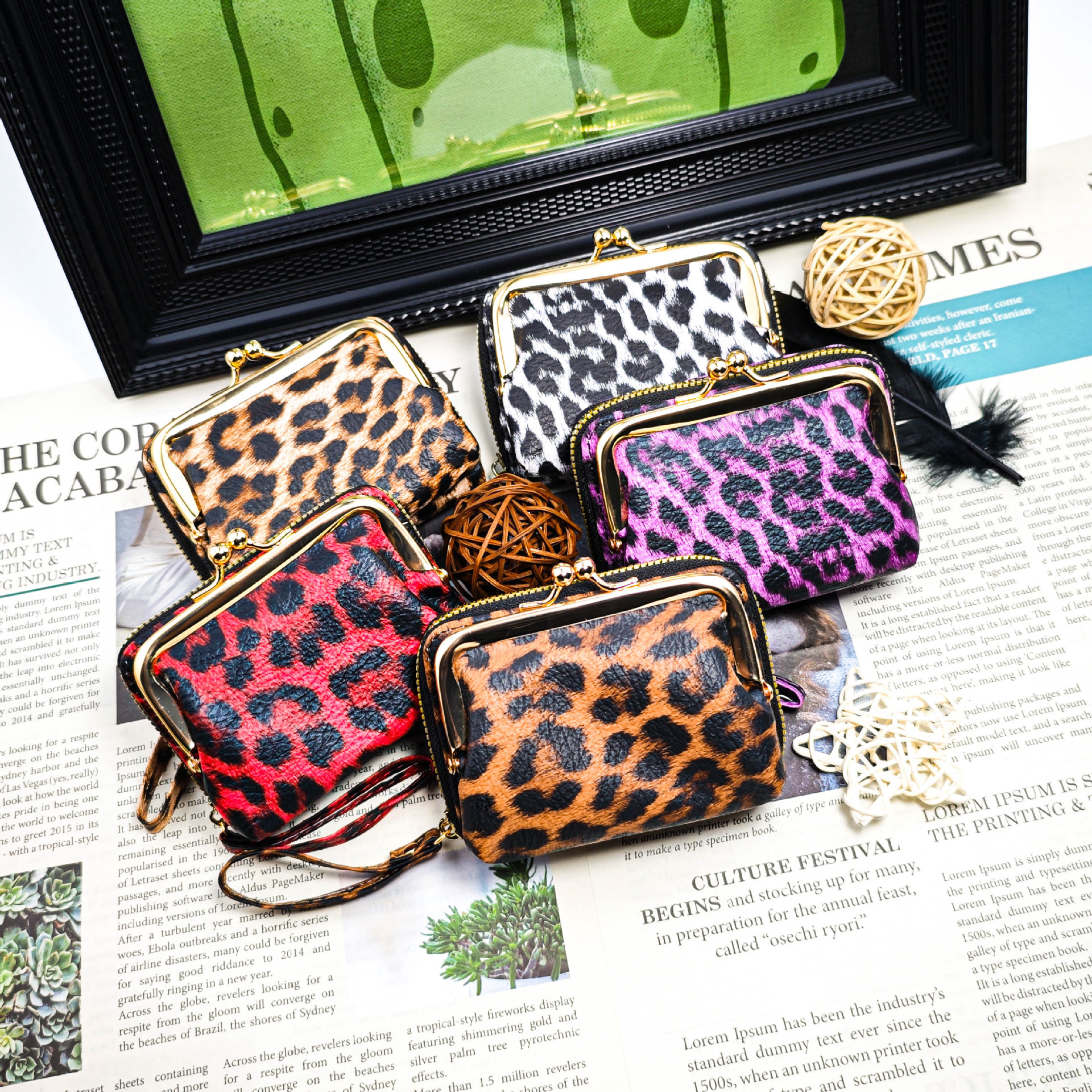 女士钱包豹纹硬币小零钱包 搭扣布艺零钱袋 复古迷你硬币包 批发