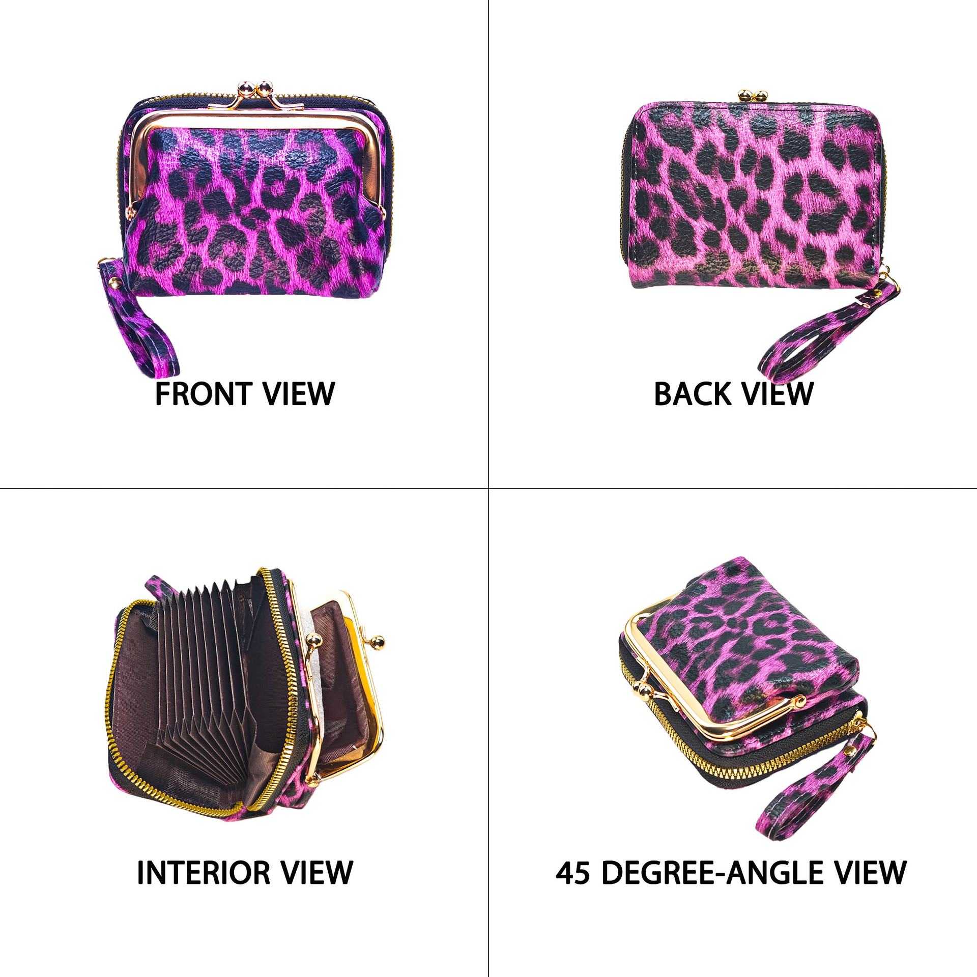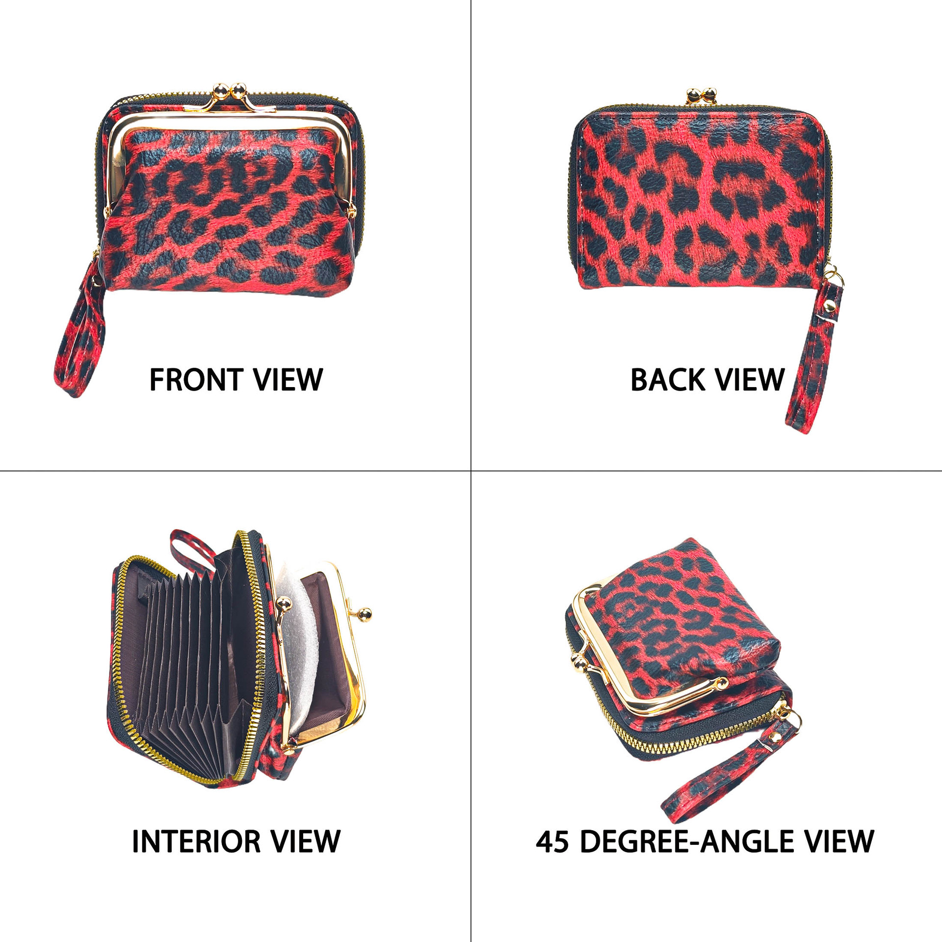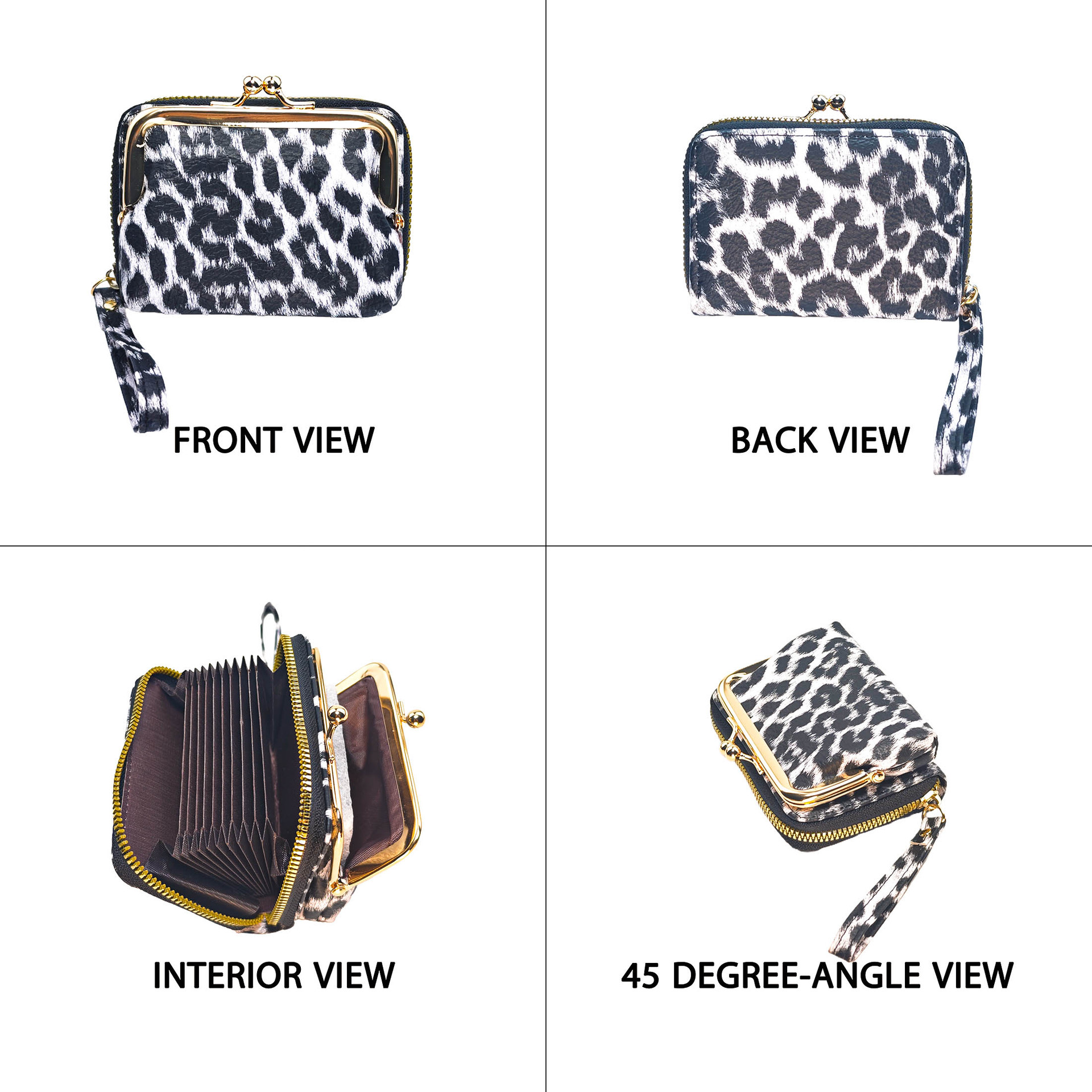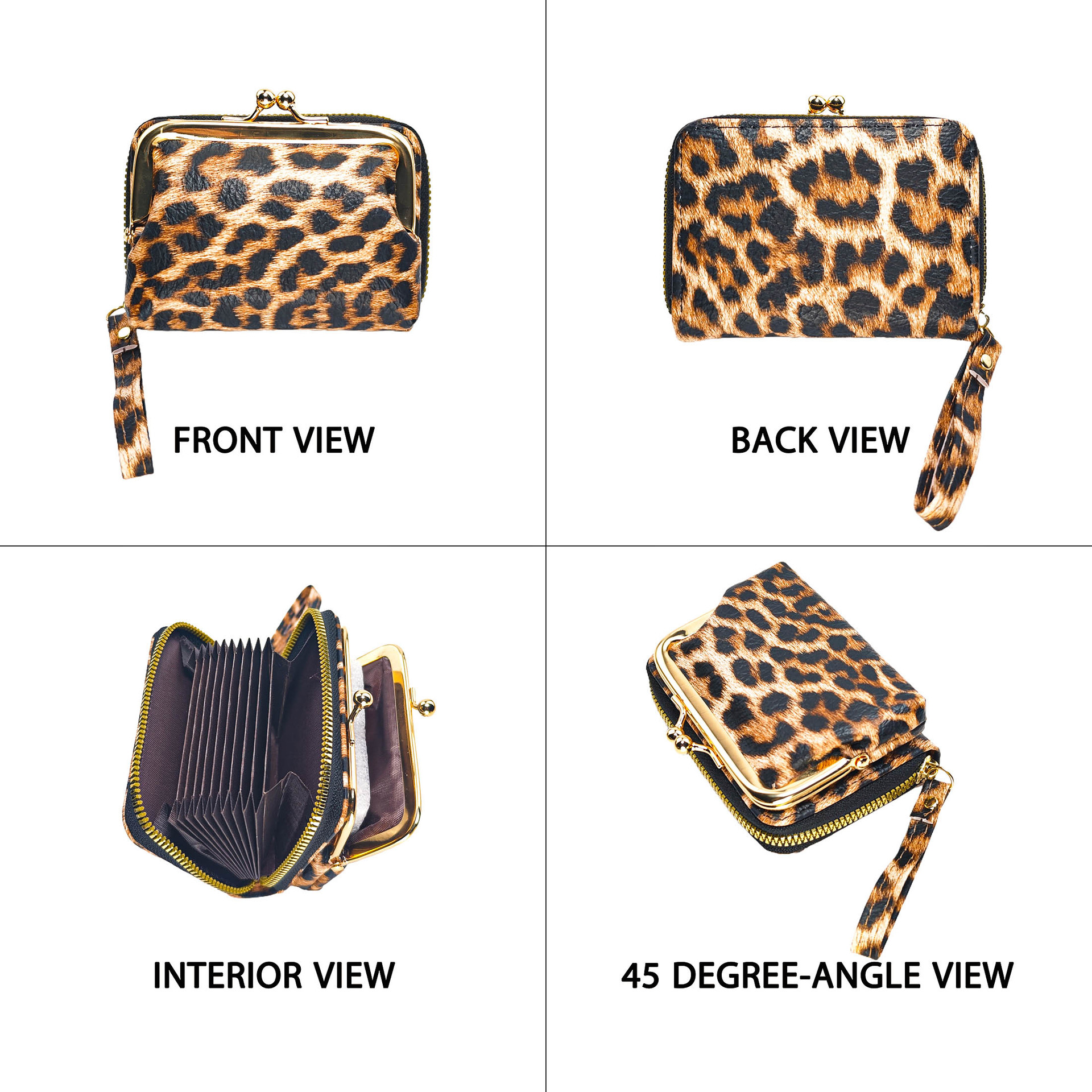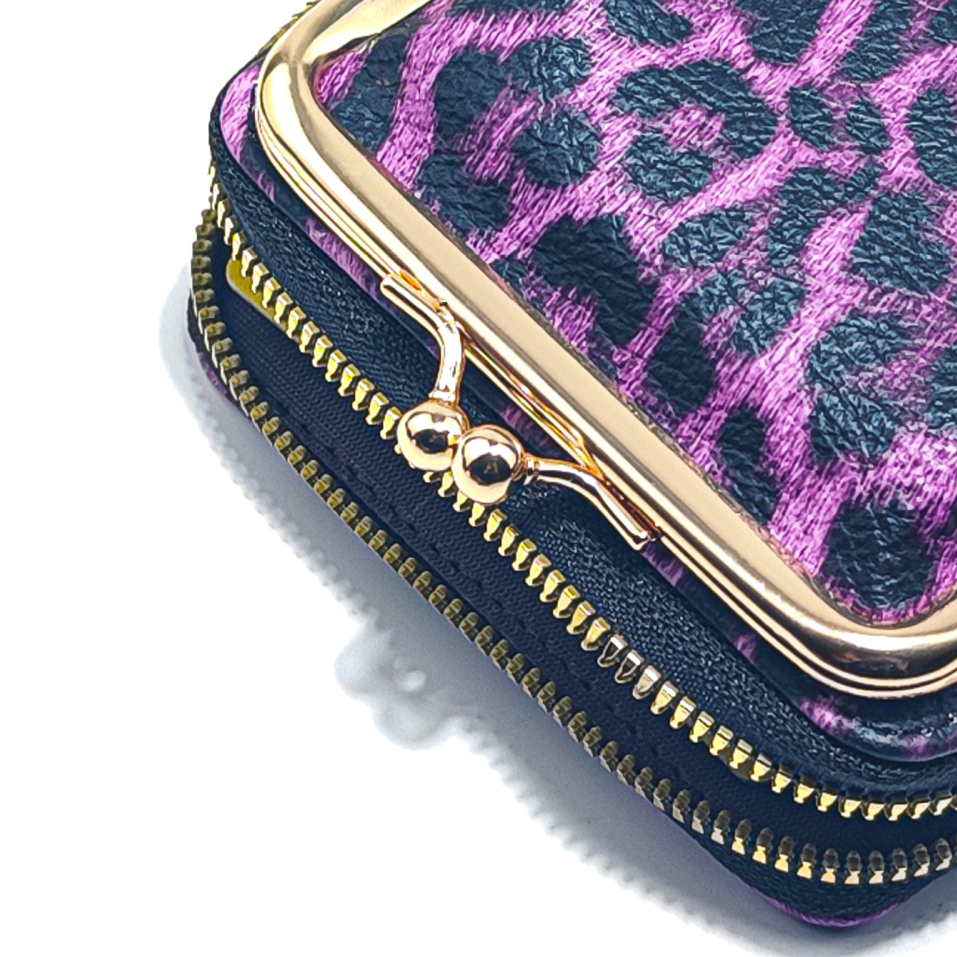 女士钱包豹纹硬币小零钱包 搭扣布艺零钱袋 复古迷你硬币包 批发