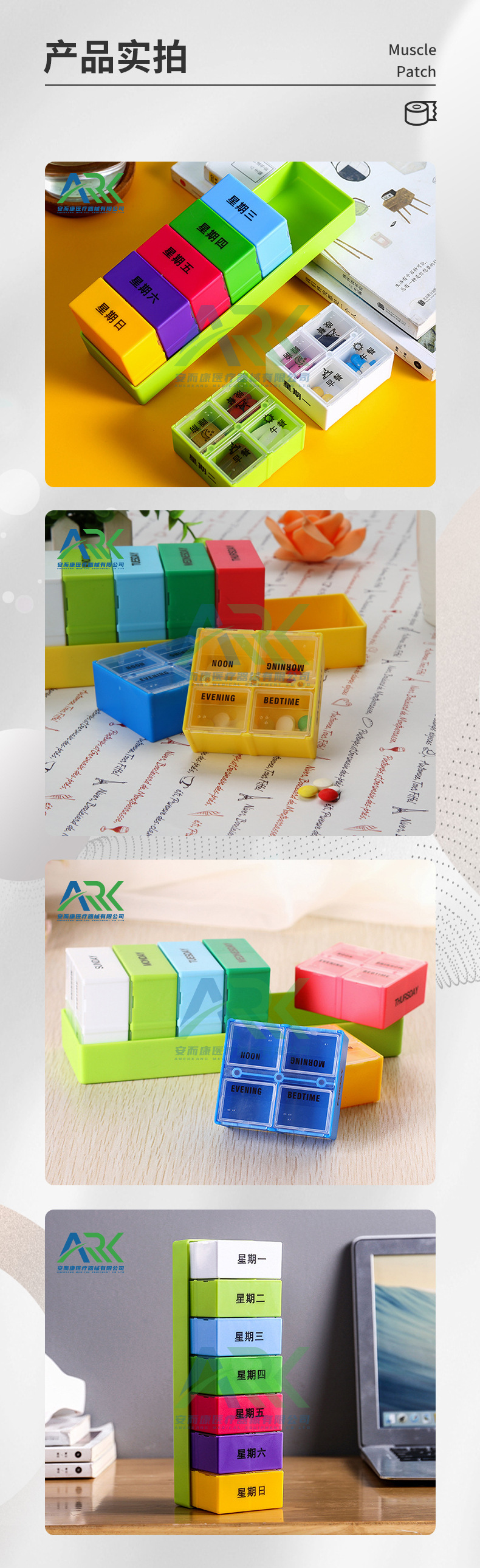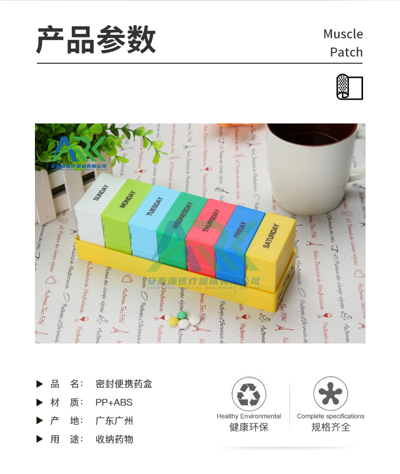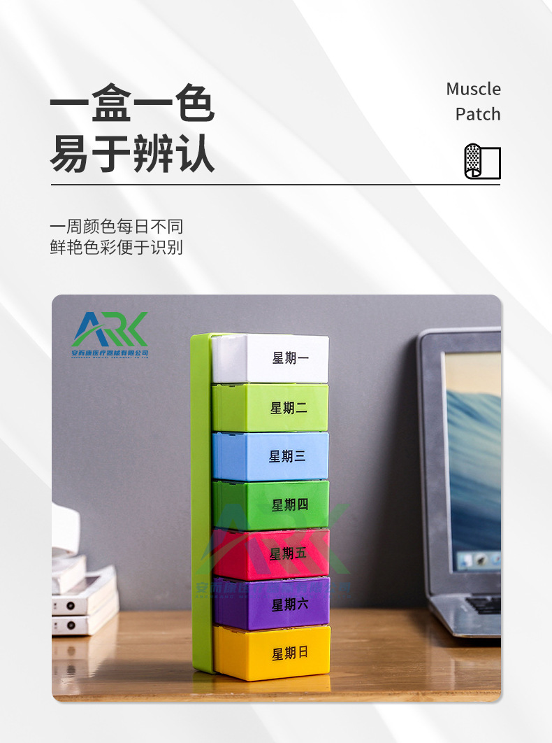 亚马逊七彩一周7天28格Pillbox可拆分大容量便携密封药盒密封便携