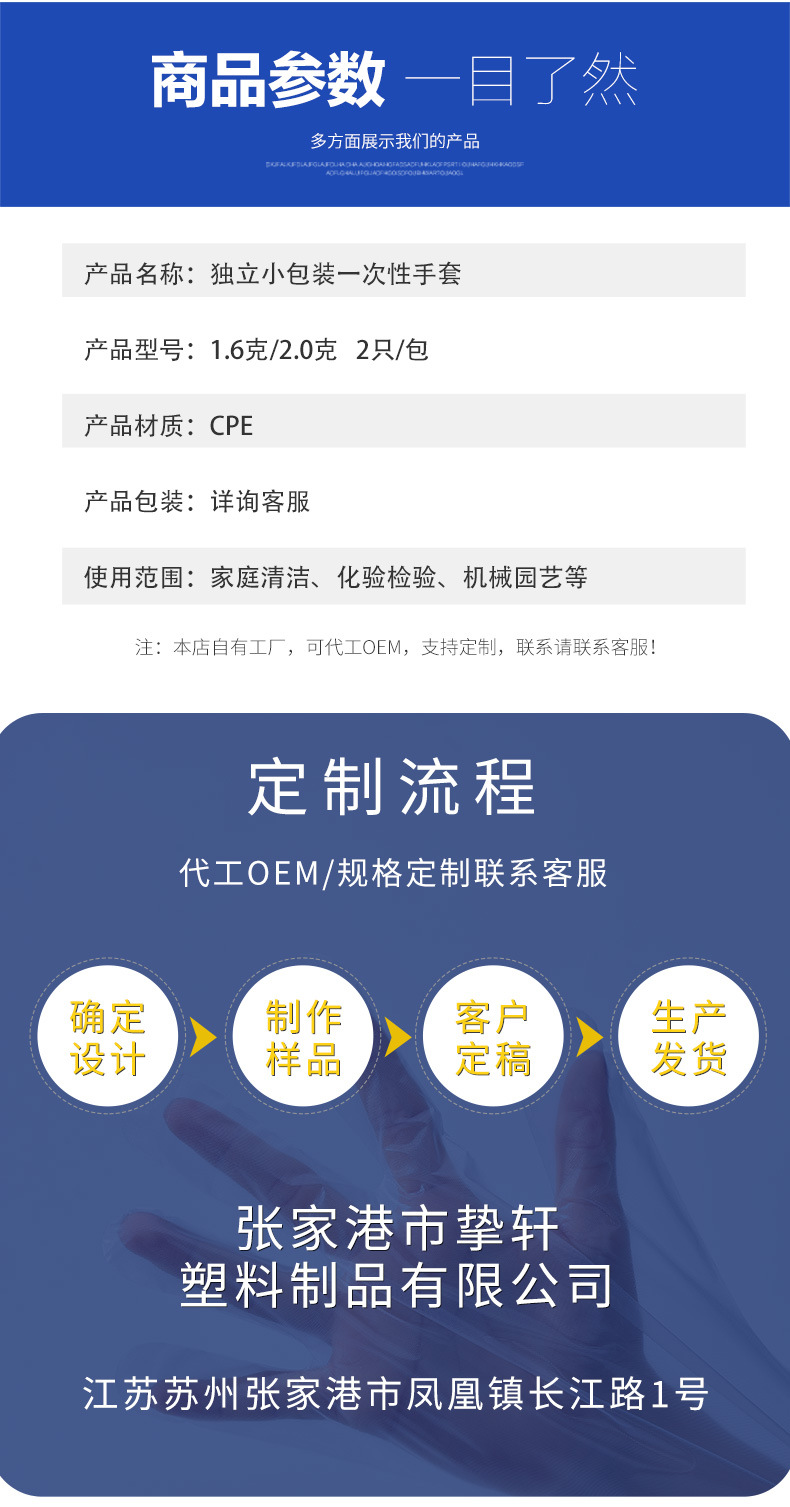 一次性独立小包装cpe手套 透明食品级加厚餐饮龙虾外卖一次性手套