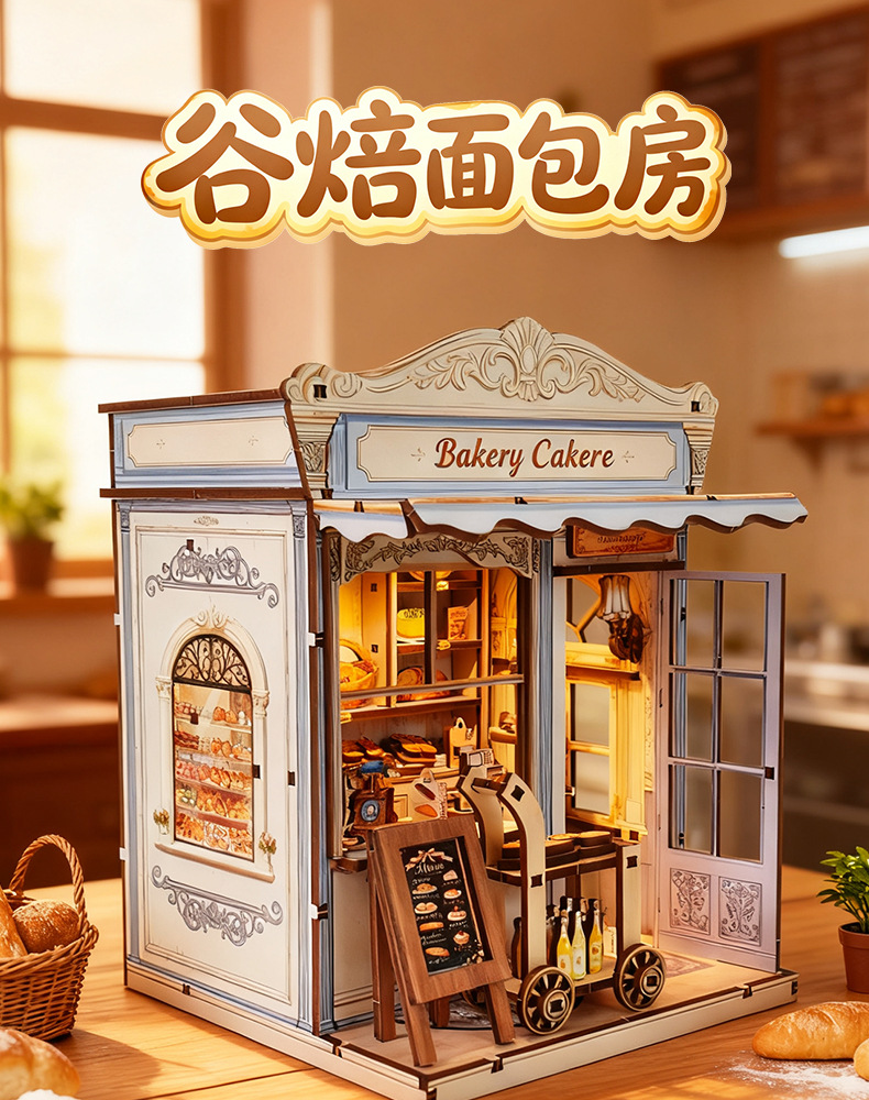 新品谷焙面包房小屋创意建筑模型屋diy拼装积木房子益智场景拼图