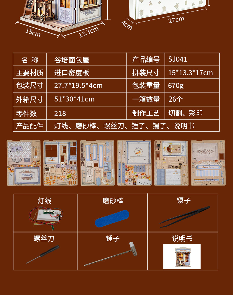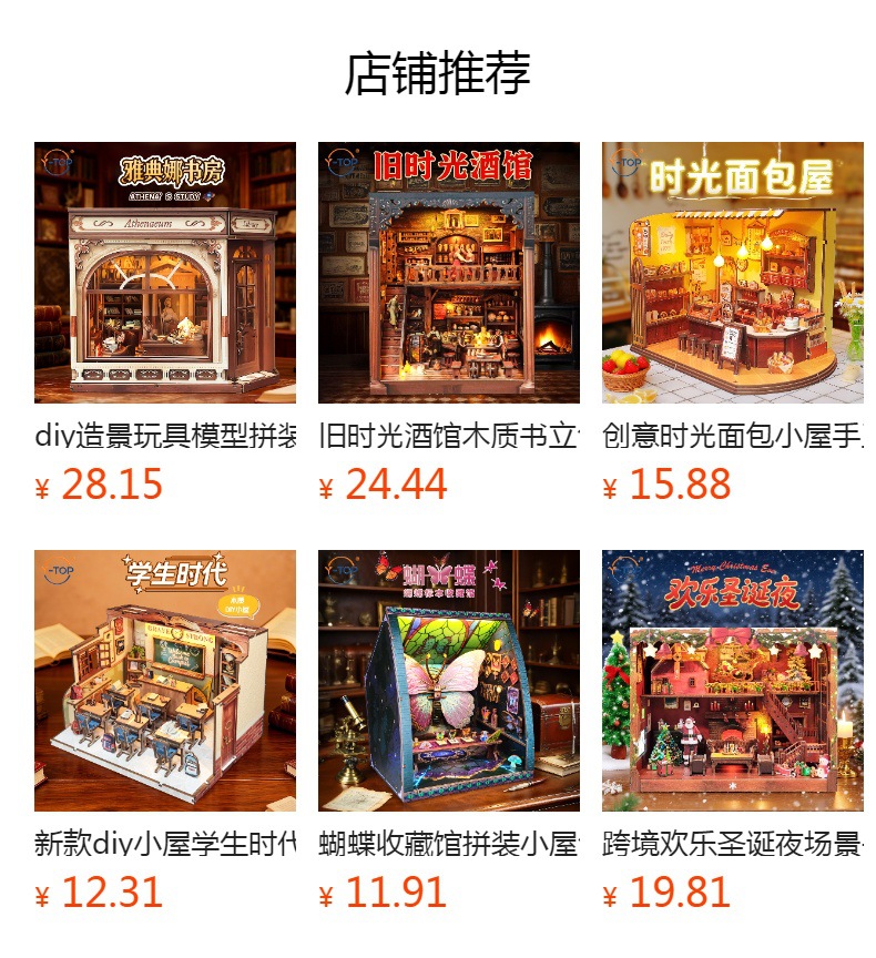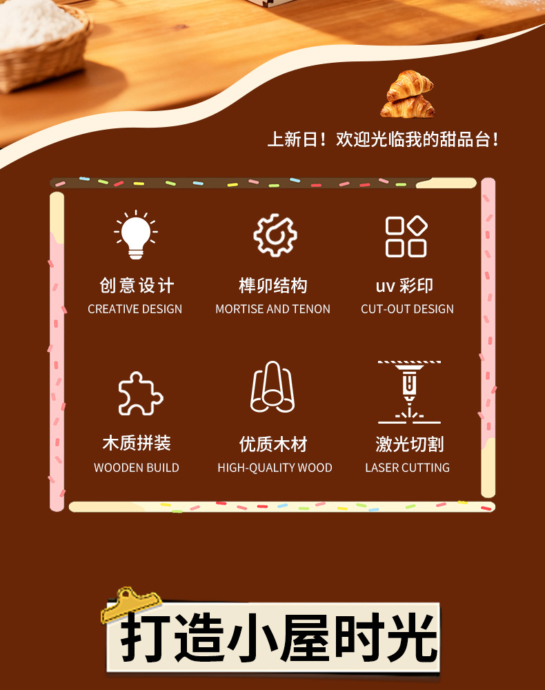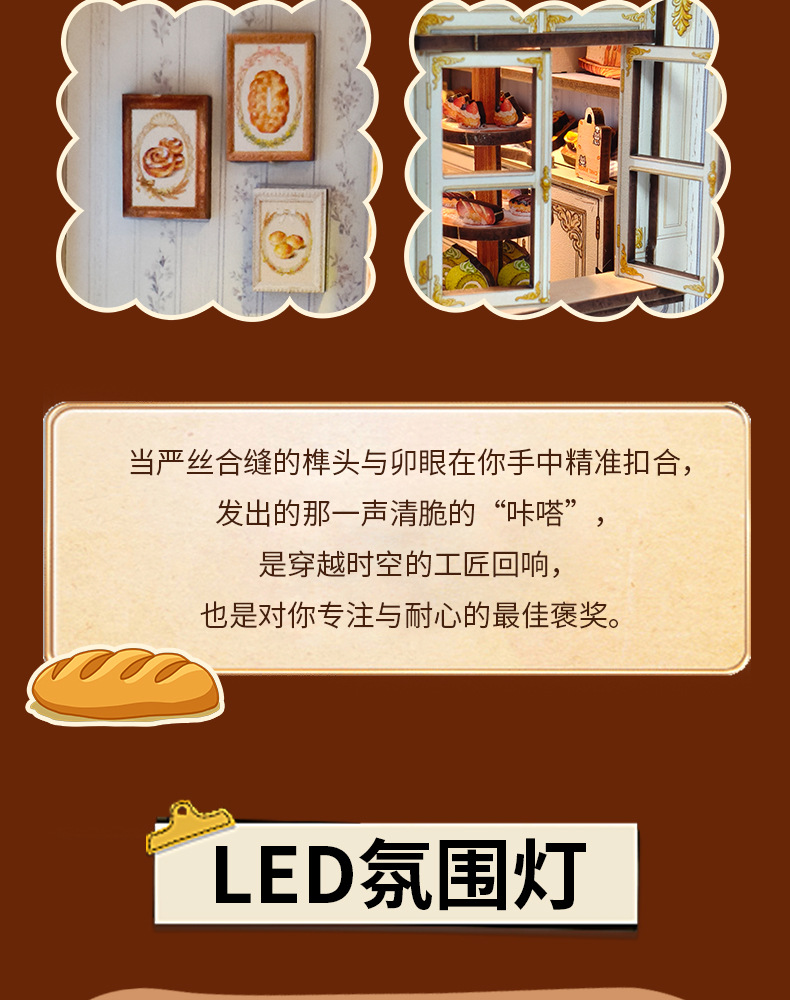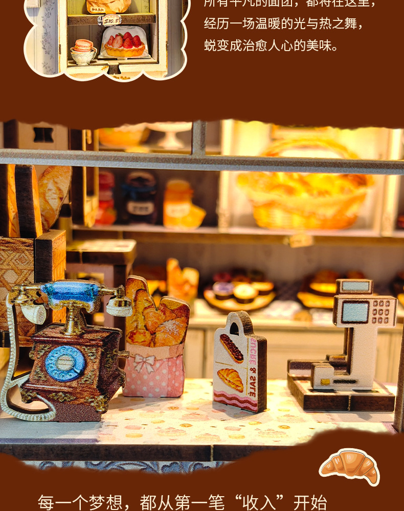 推荐理由:新品谷焙面包房小屋创意建筑模型屋diy拼装积木房子益智场景拼图