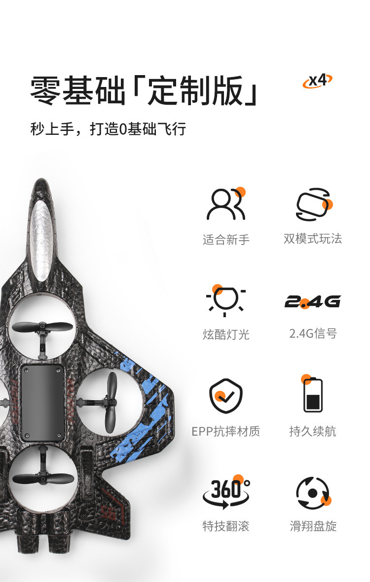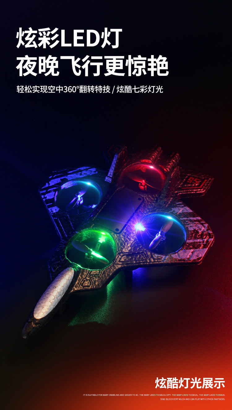 跨境热销遥控飞机特技无人机炫彩灯光充电耐摔泡沫战斗机抖音同款