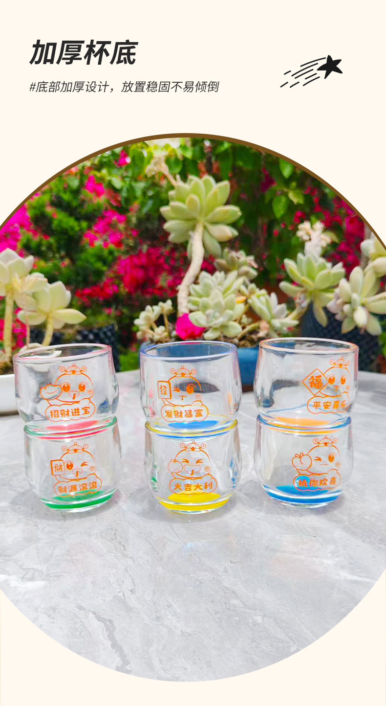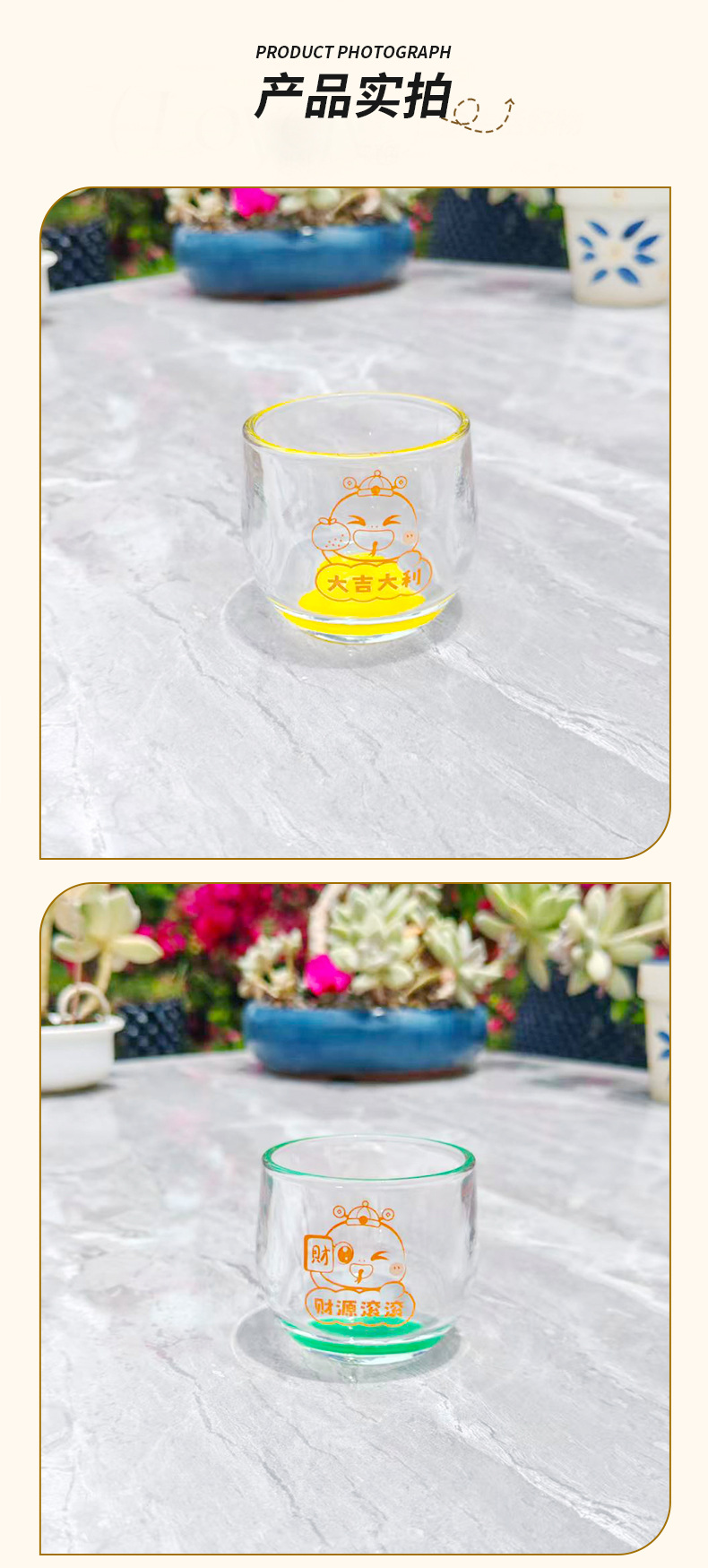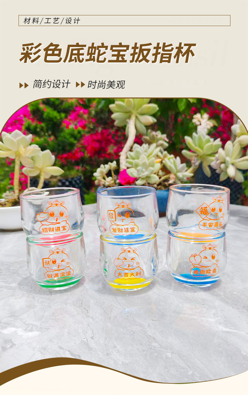 加厚玻璃杯家用创意高颜值扳指杯彩色底桔色蛇宝图案玻璃水杯