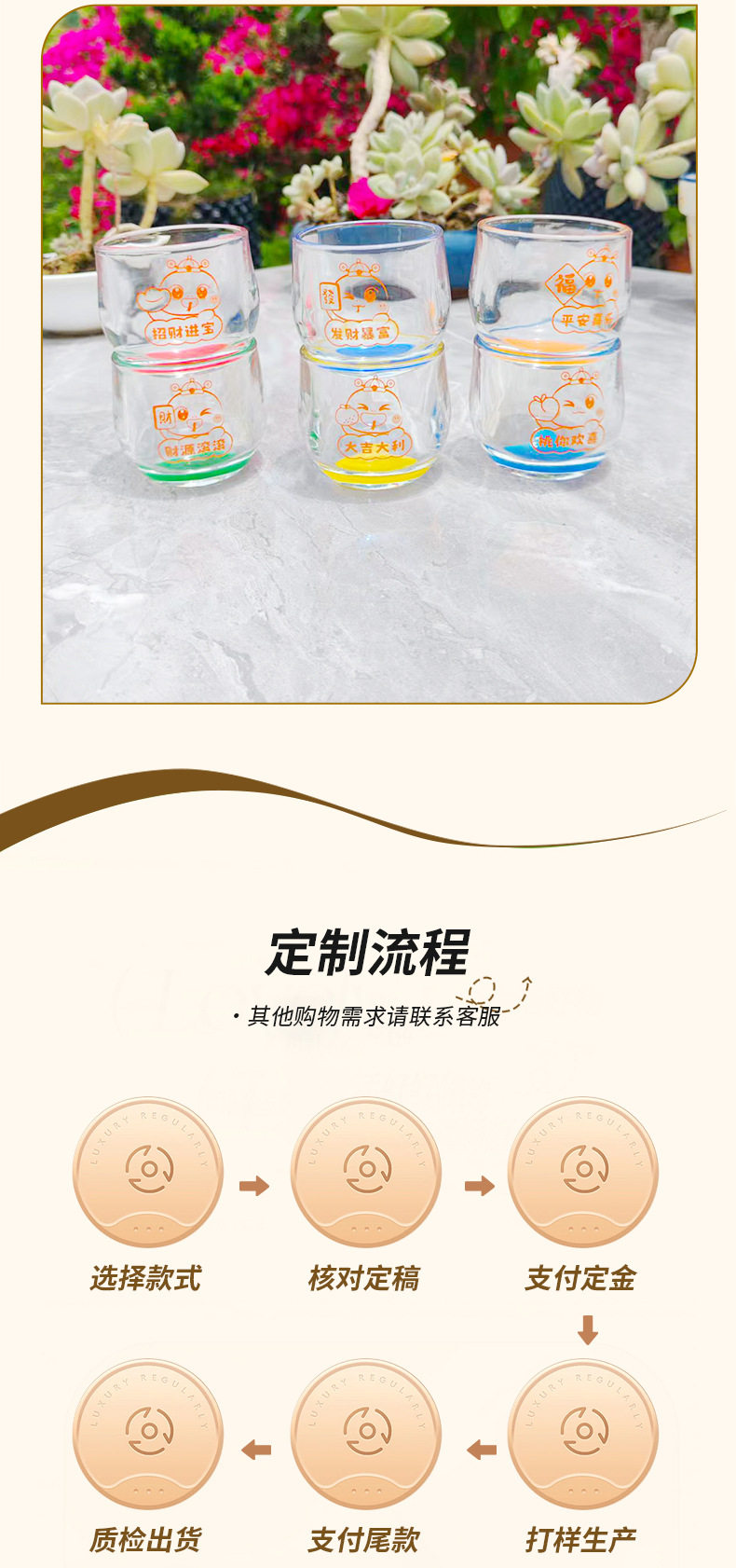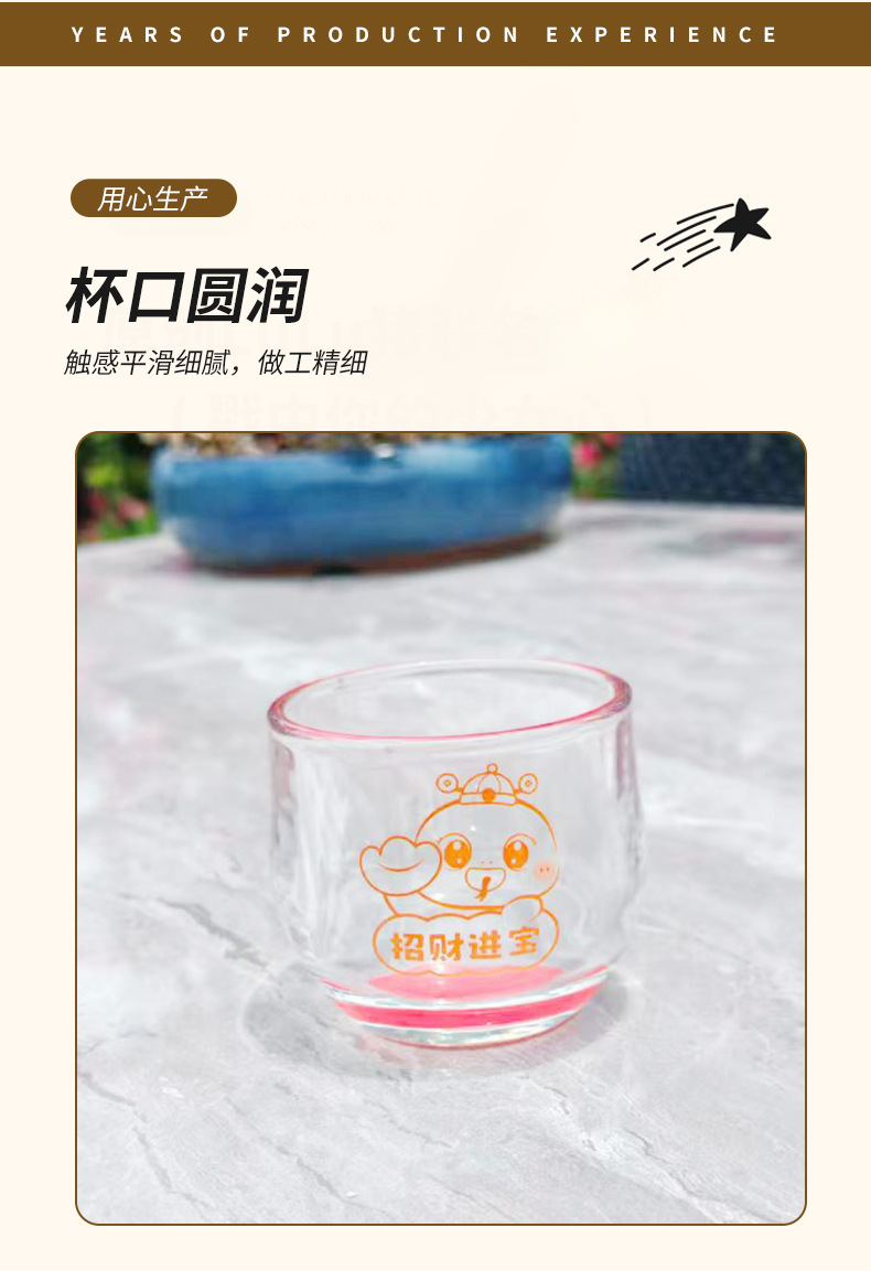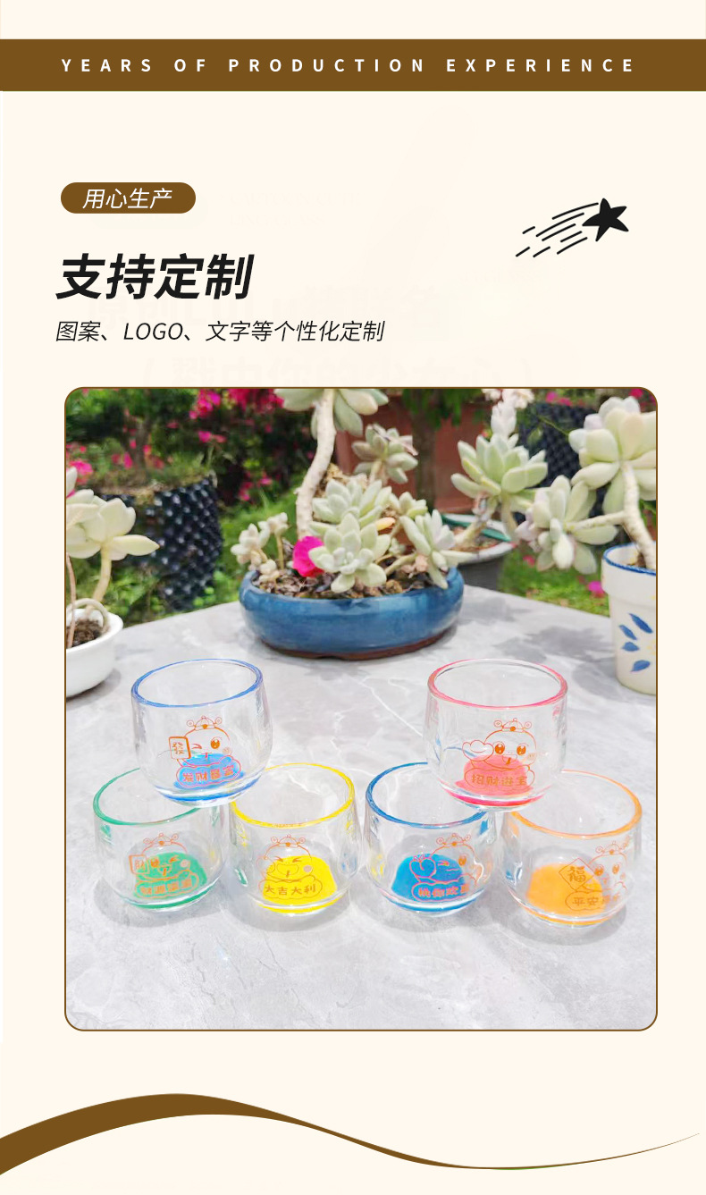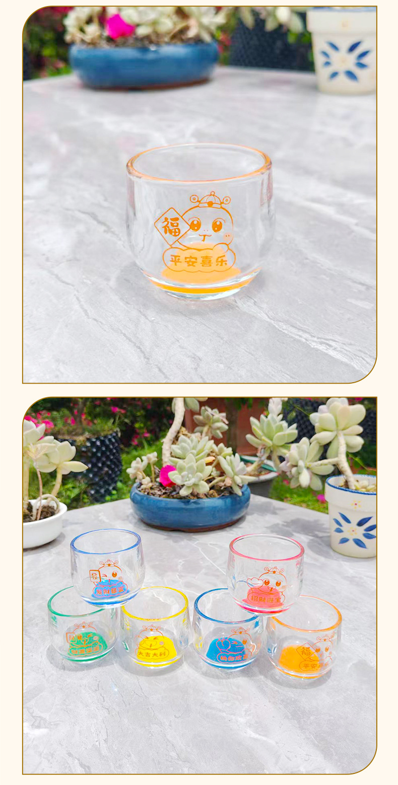 加厚玻璃杯家用创意高颜值扳指杯彩色底桔色蛇宝图案玻璃水杯