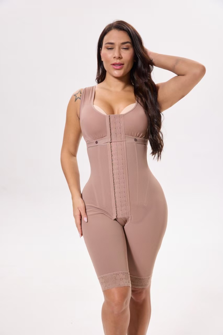 跨境欧美7根钢骨排扣束身衣产后开裆塑身衣收腹提臀束身连体衣女