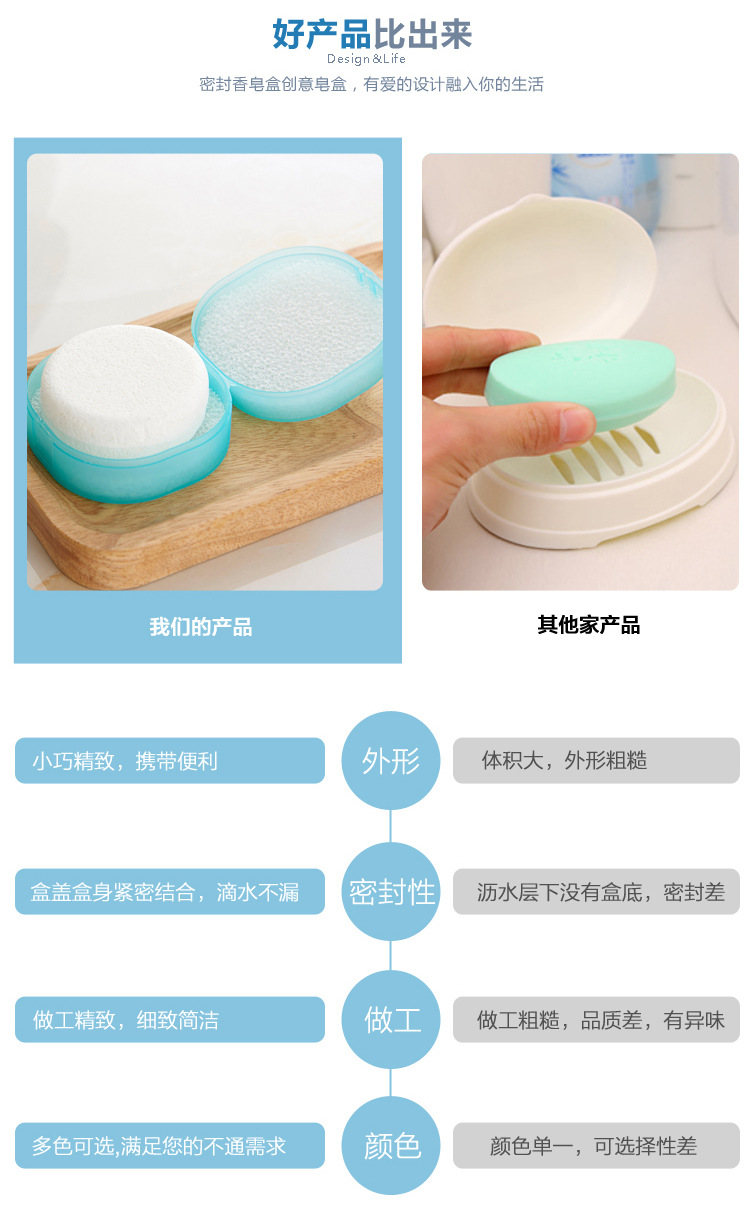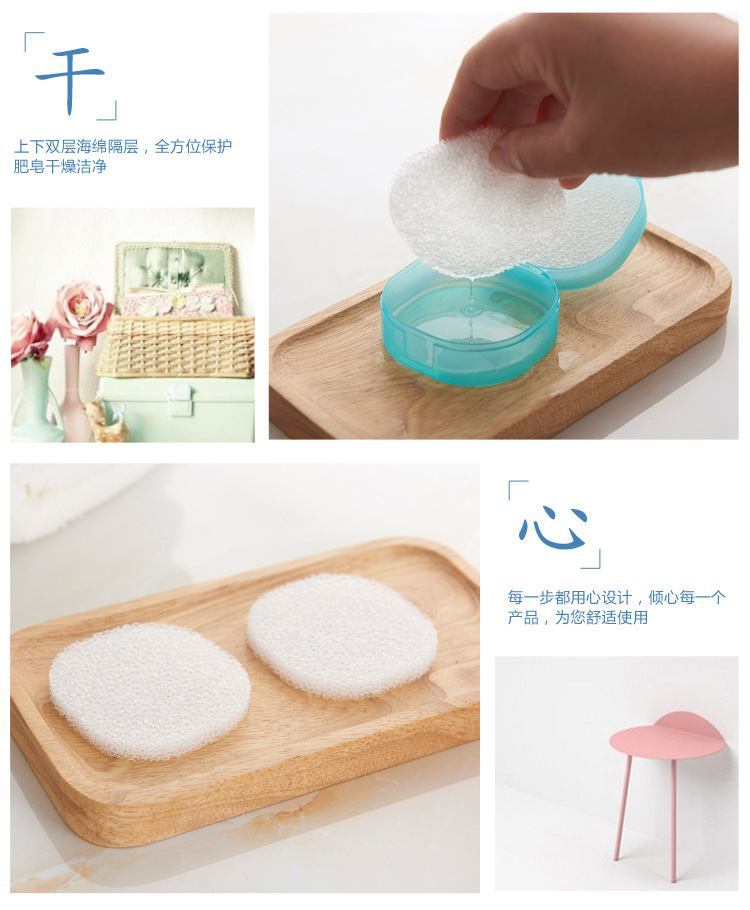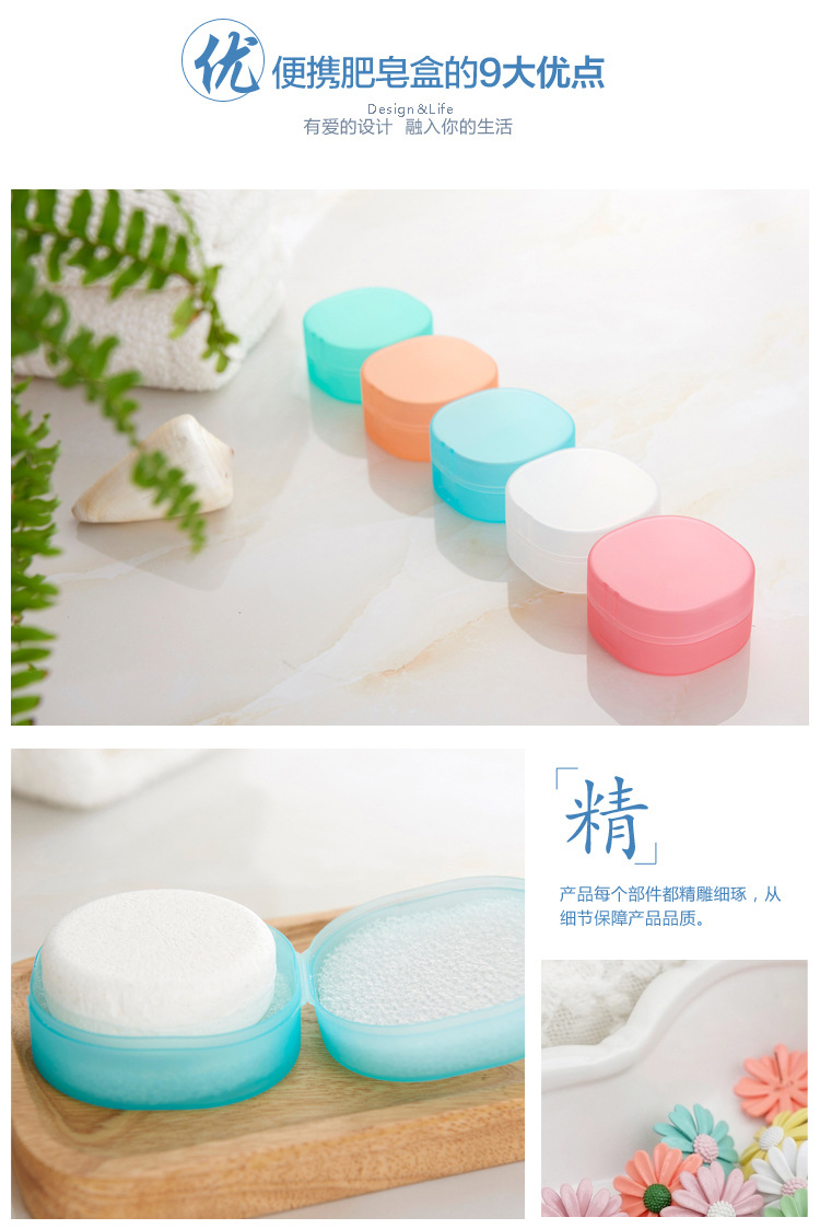 带盖Q版时尚沥水旅行皂盒 糖果5色连体圆形海绵皂盒 可印logo批发