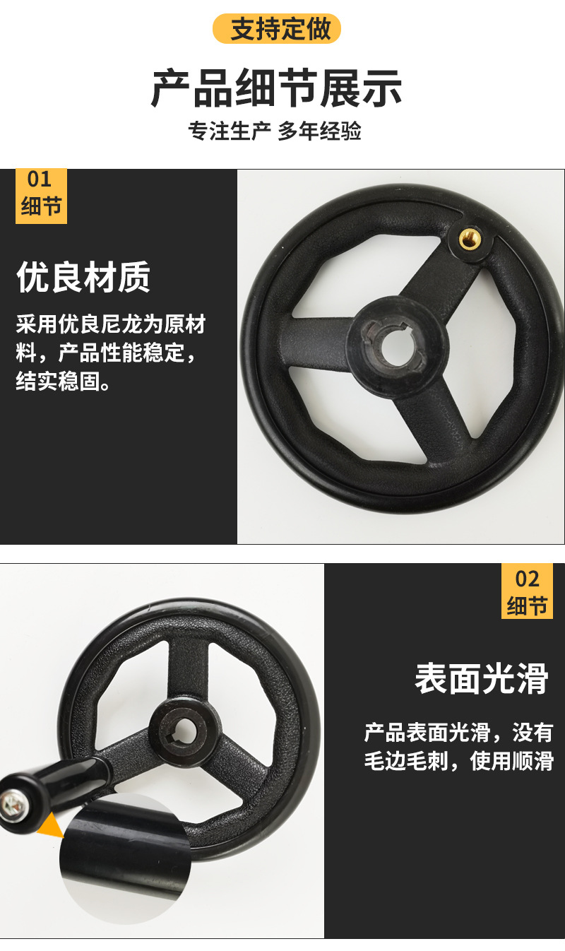 塑料圆轮缘手轮 包装机械用塑钢手轮 三根筋手轮磨床铣床尼龙手轮