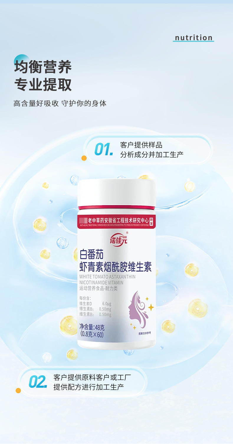 定 制白番茄虾青素烟酰胺维生素压片糖果 烟酰胺多种维生素咀嚼片