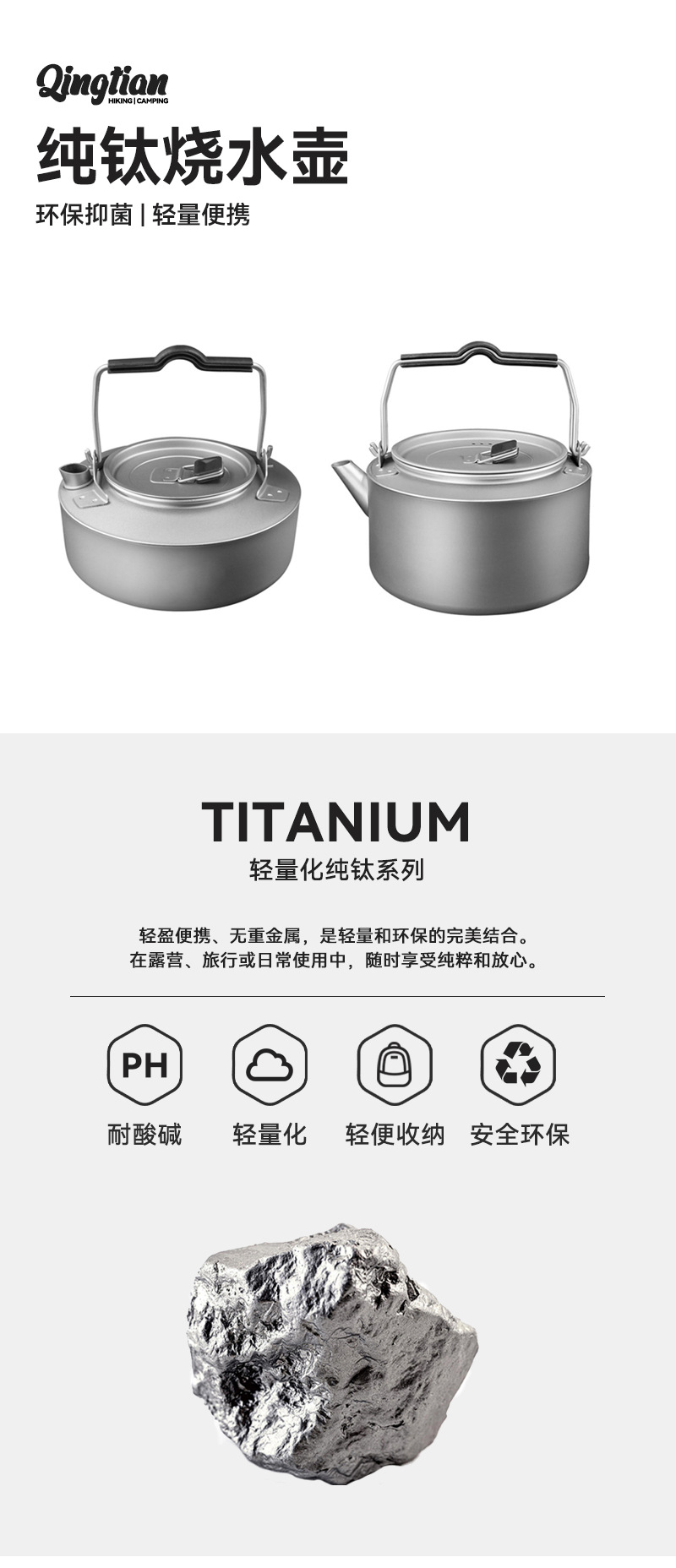 纯钛水壶轻量便携折叠加厚耐用食品级户外露营家用烧水壶跨境批发