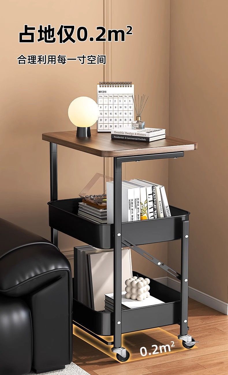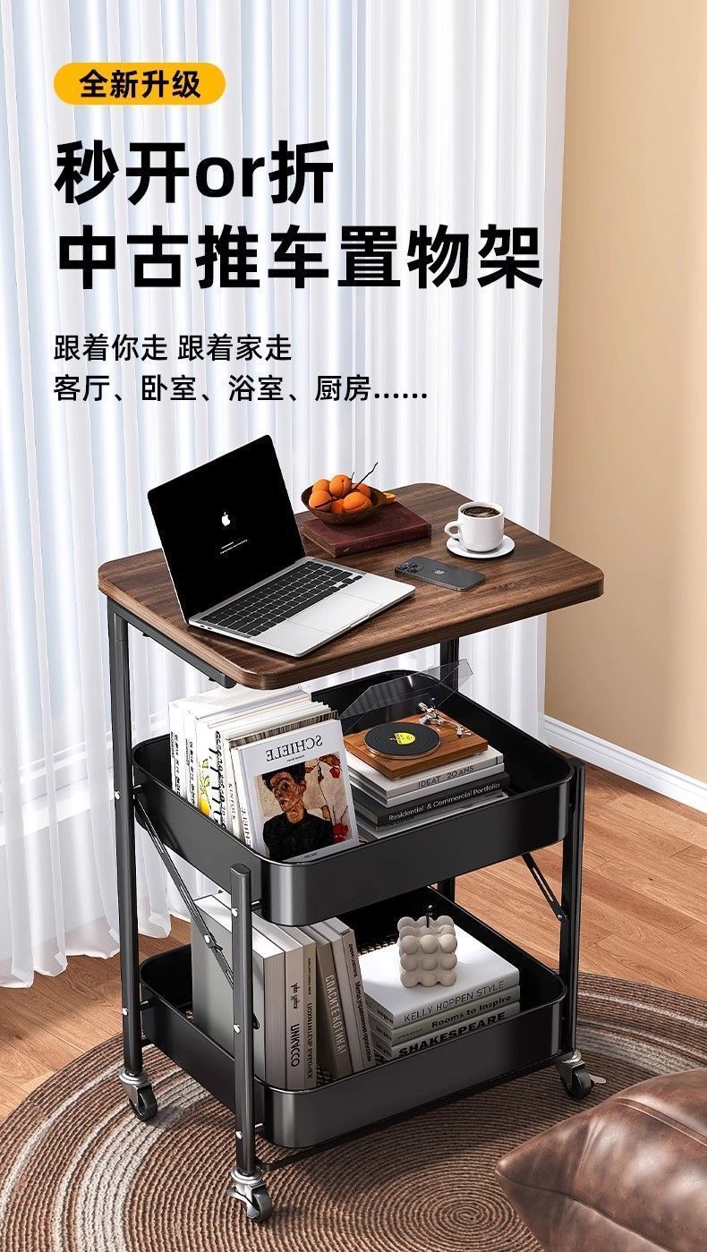 可移动小推车边几沙发储物架简易餐桌台床头柜复古家居收纳置物架