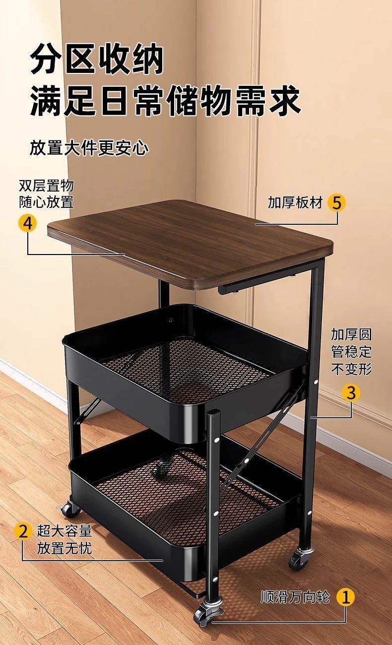 零食小推车置物架客厅分层架落地收纳架床边柜储物架移动茶几桌子