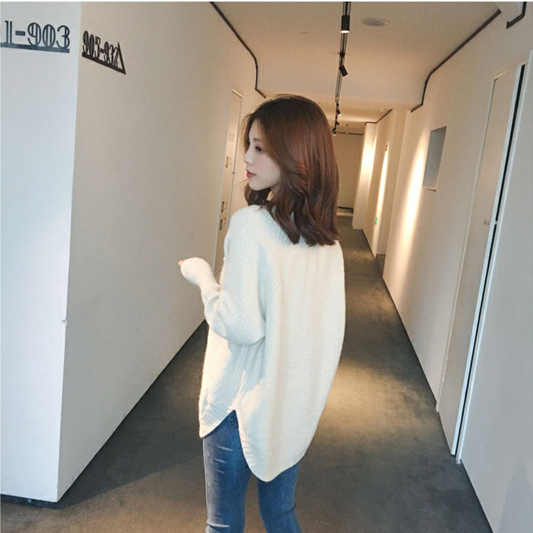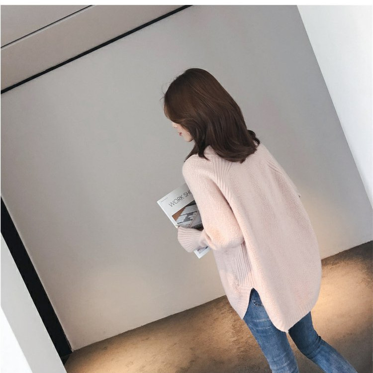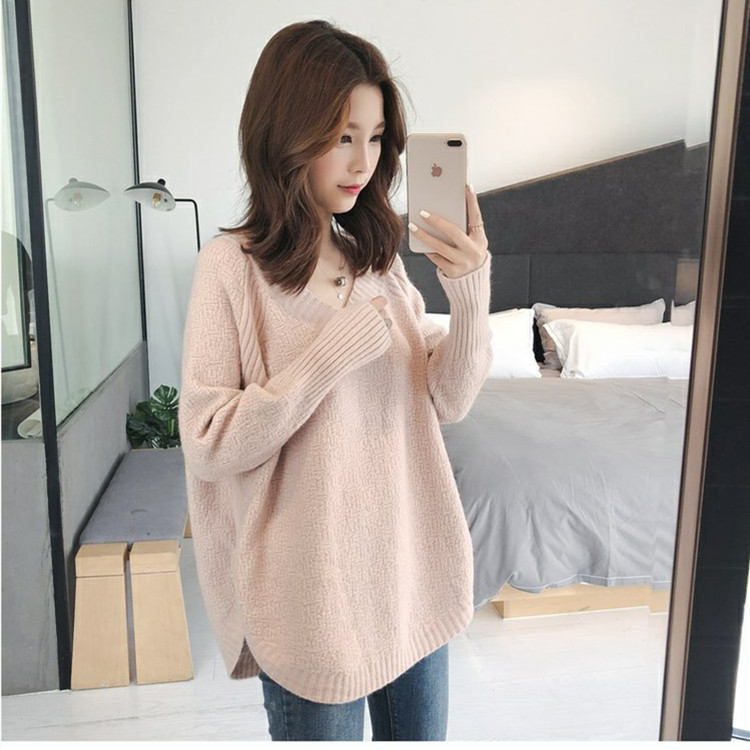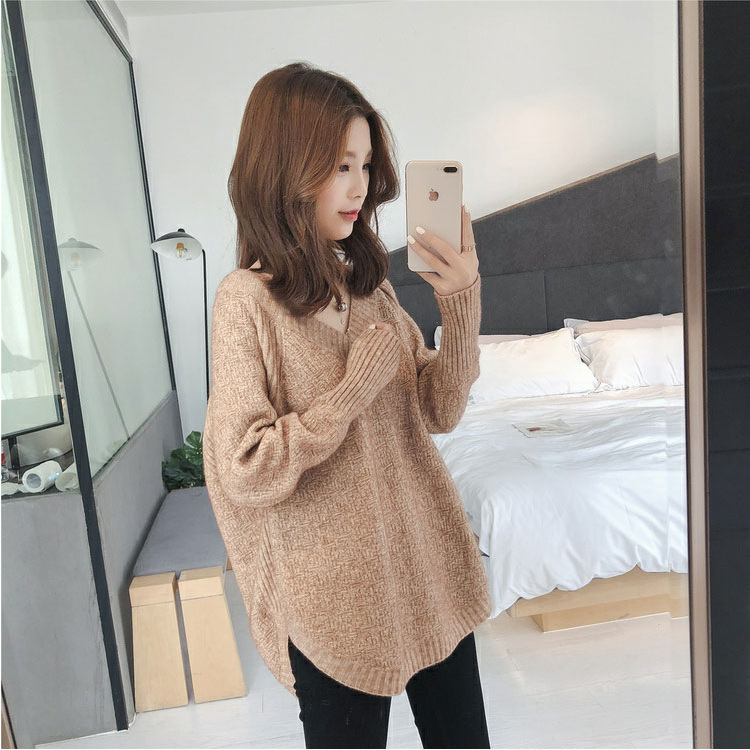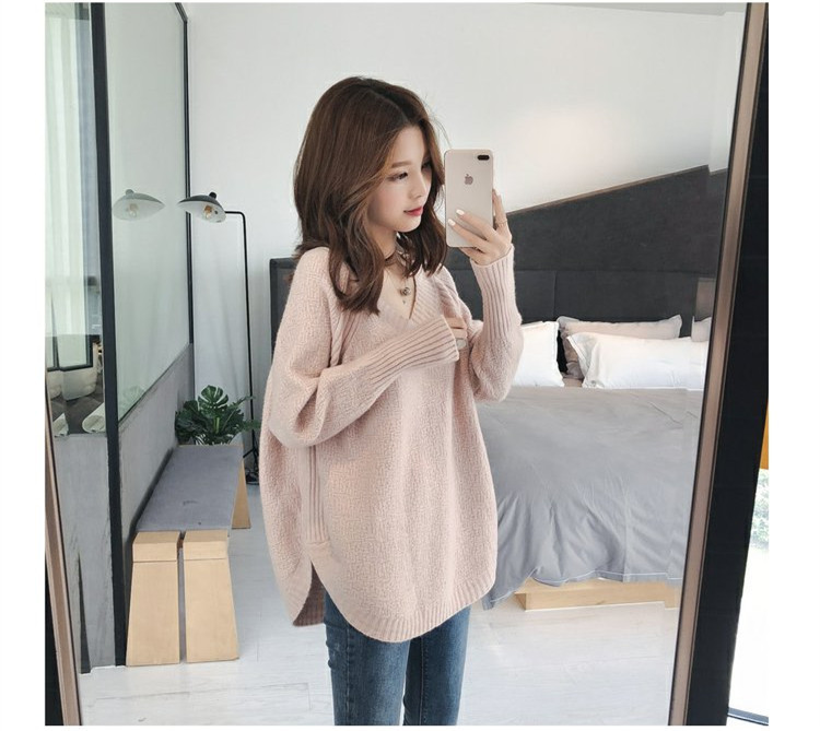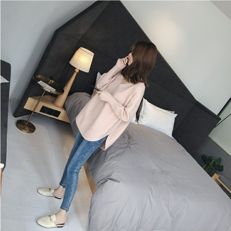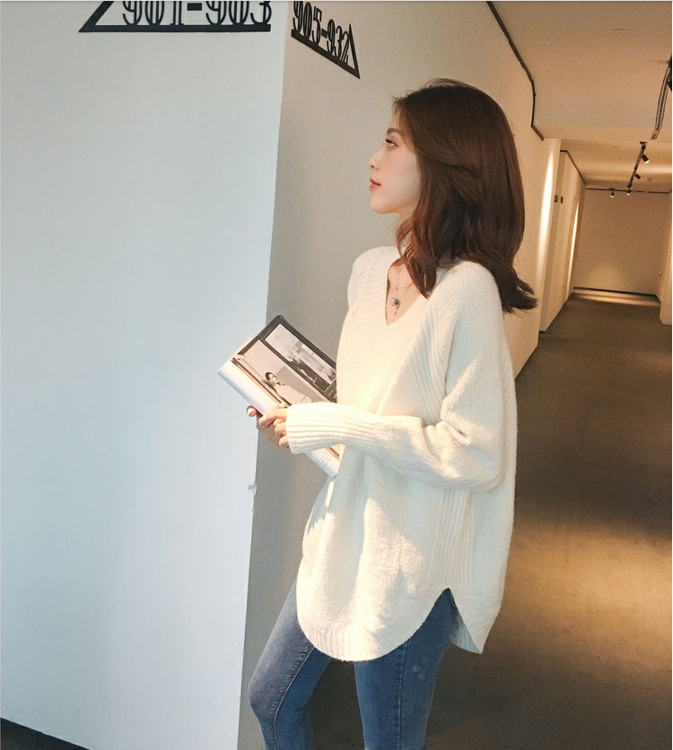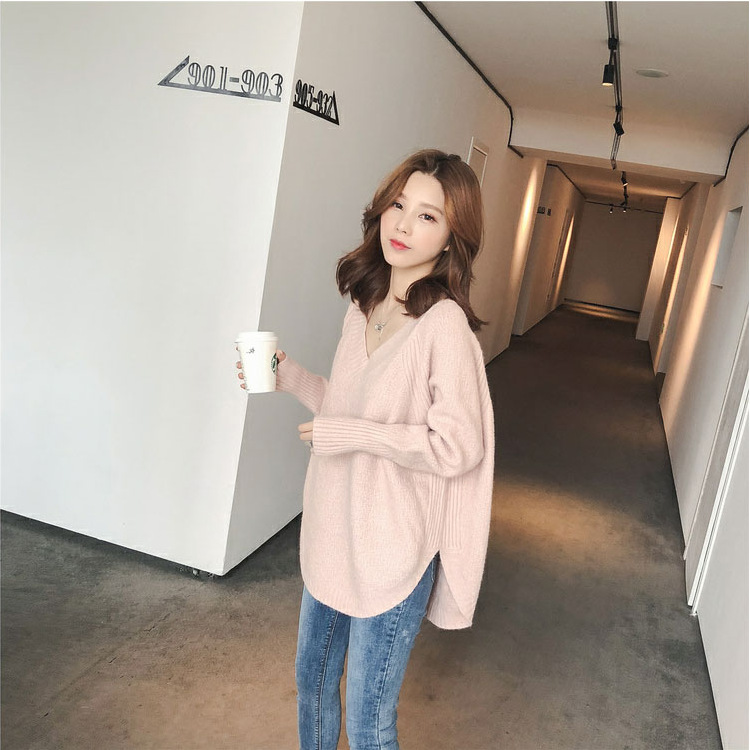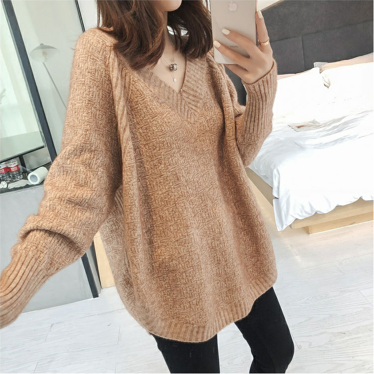 网红V领慵懒风休闲套头毛衣女2024秋冬宽松打底衫韩版学院针织衫