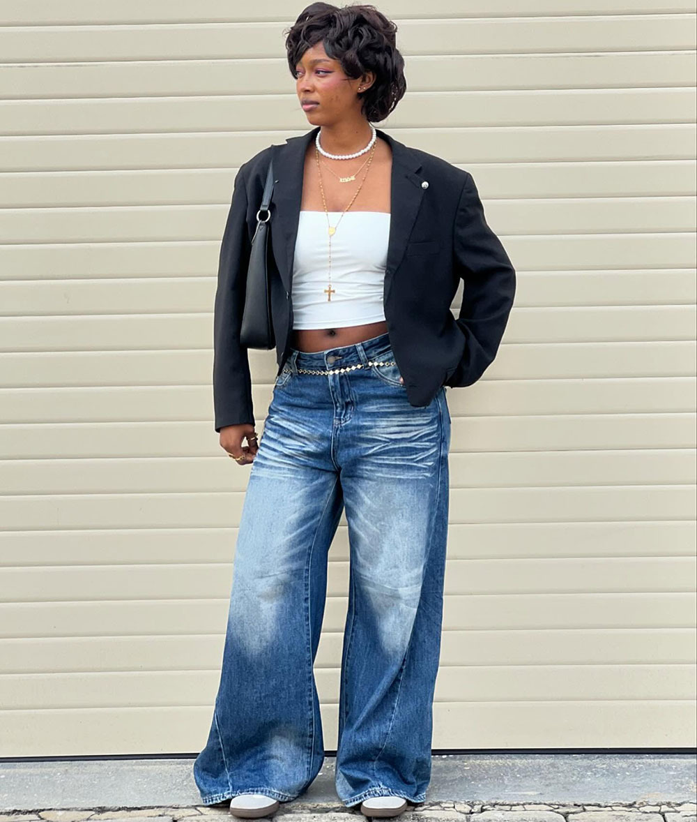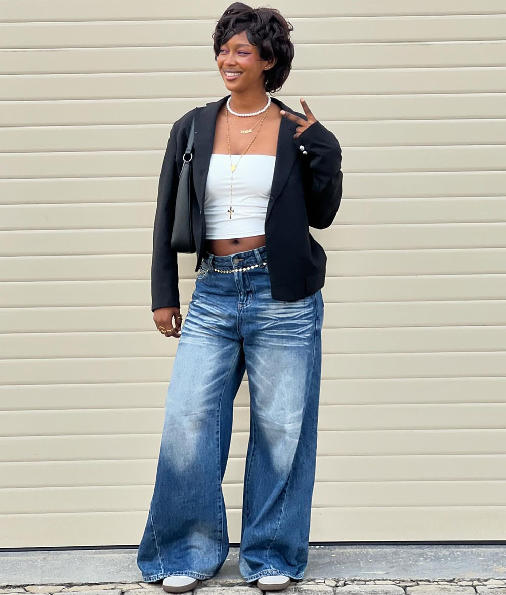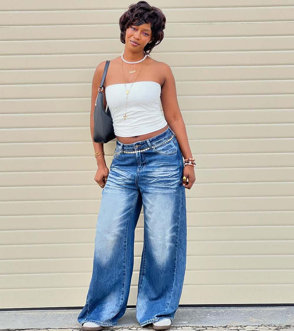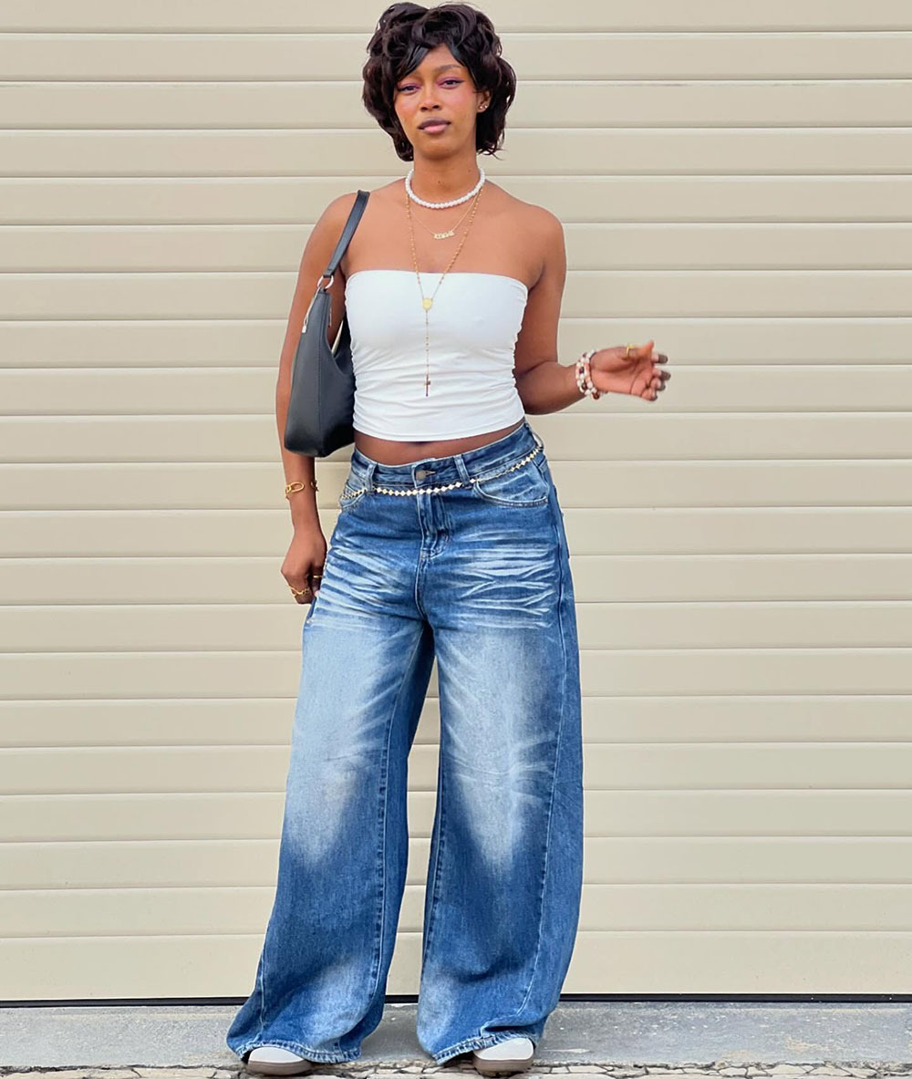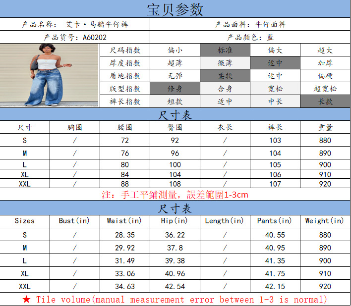 欧美女式休闲牛仔裤亚马逊跨境女装街头时尚马骝水洗阔腿休闲长裤