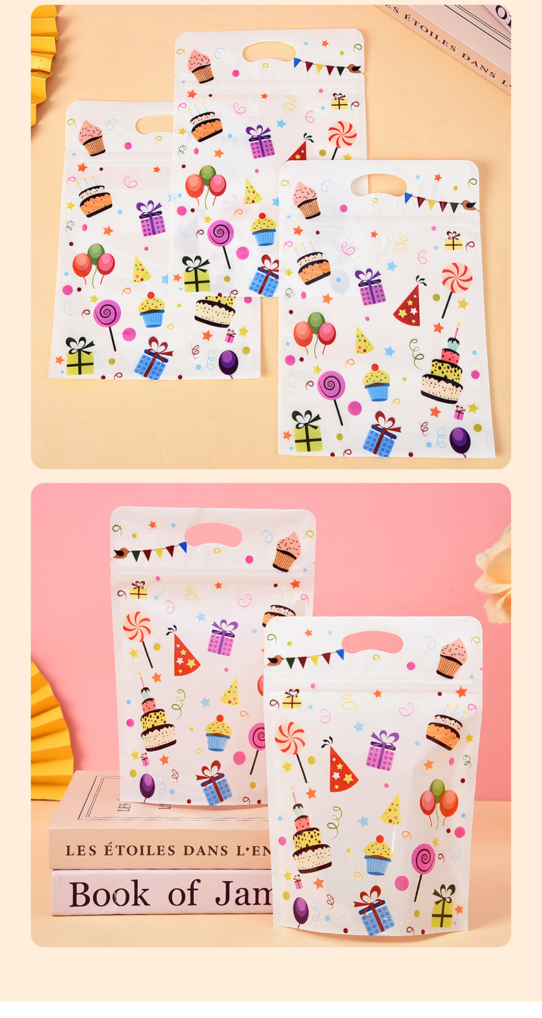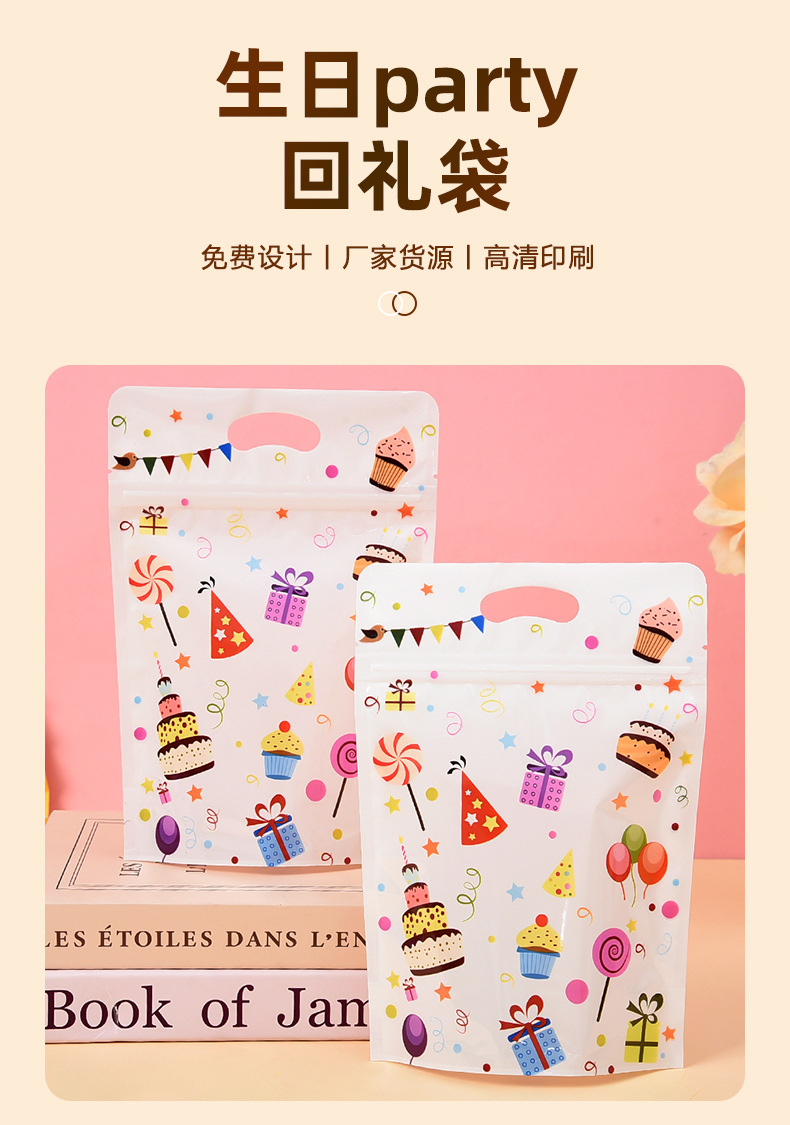 生日派对卡通礼品袋烘焙食品包装自立袋曲奇饼干自封袋