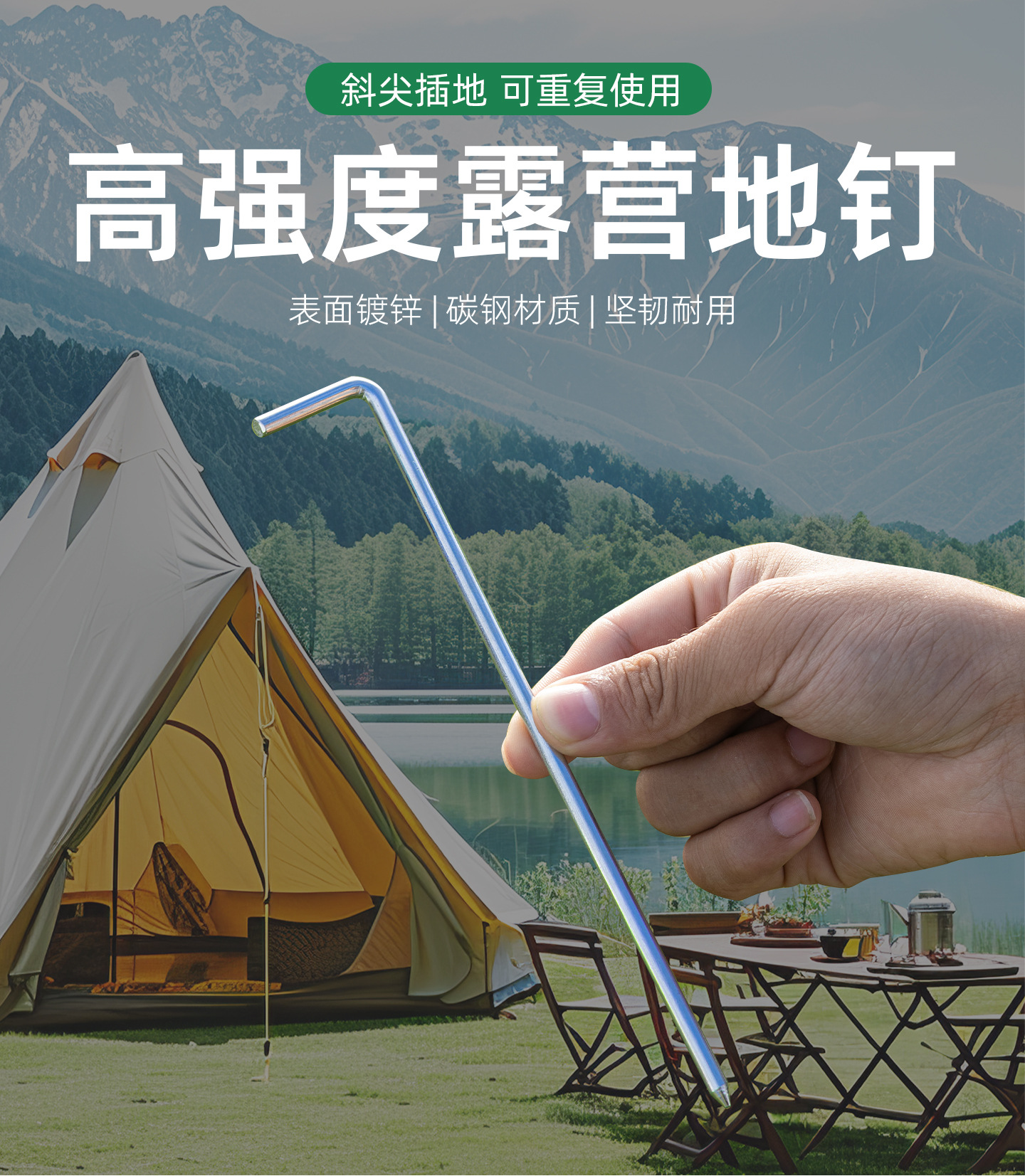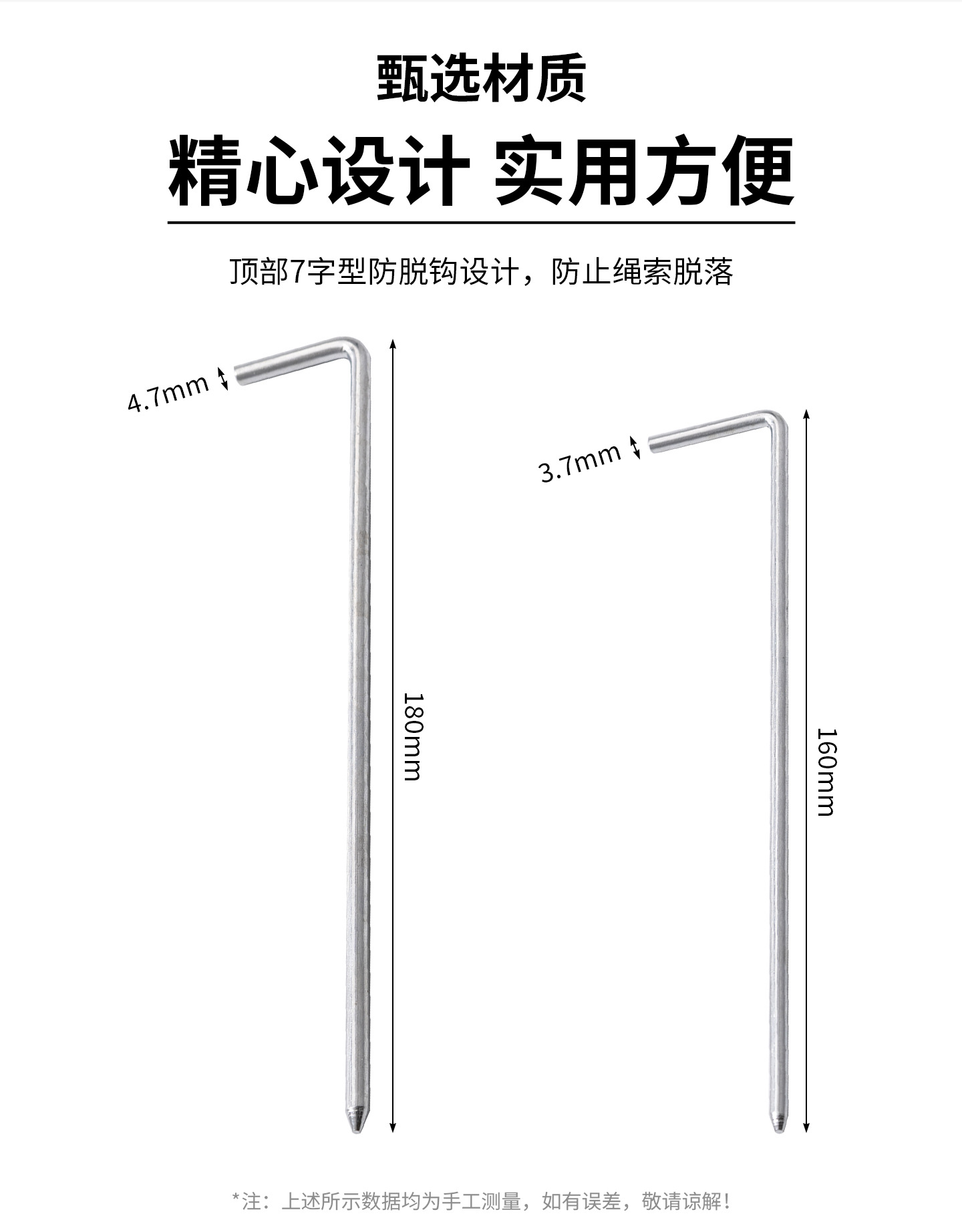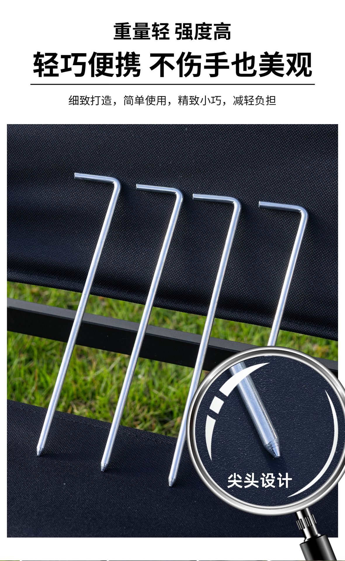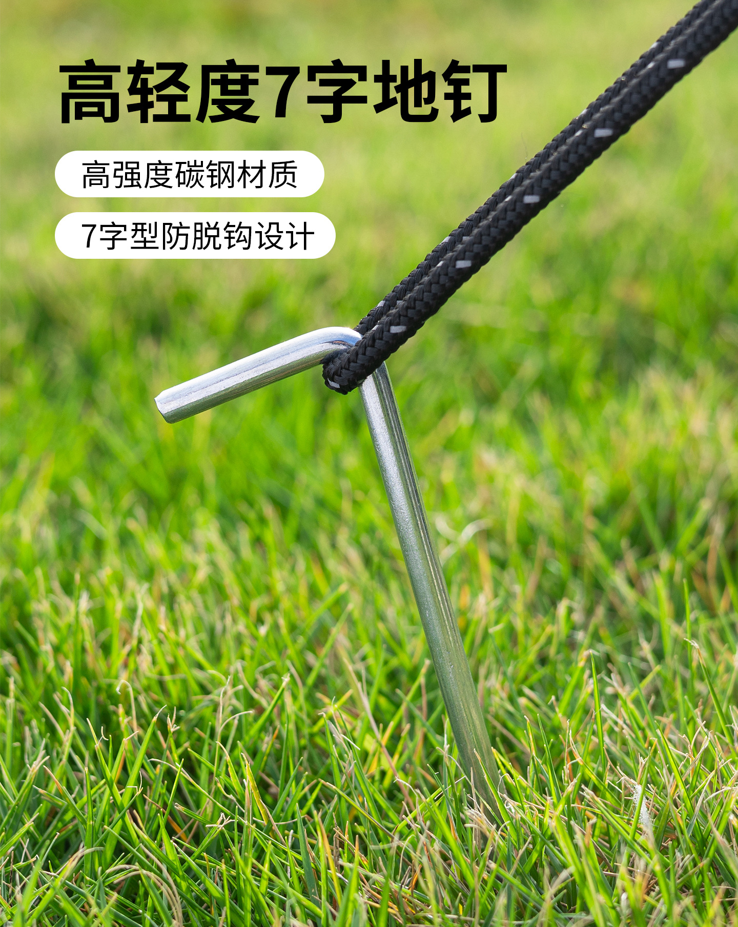 7字型户外天幕尖钉地钉露营帐篷专用配件防风草坪固定钉厂家批发