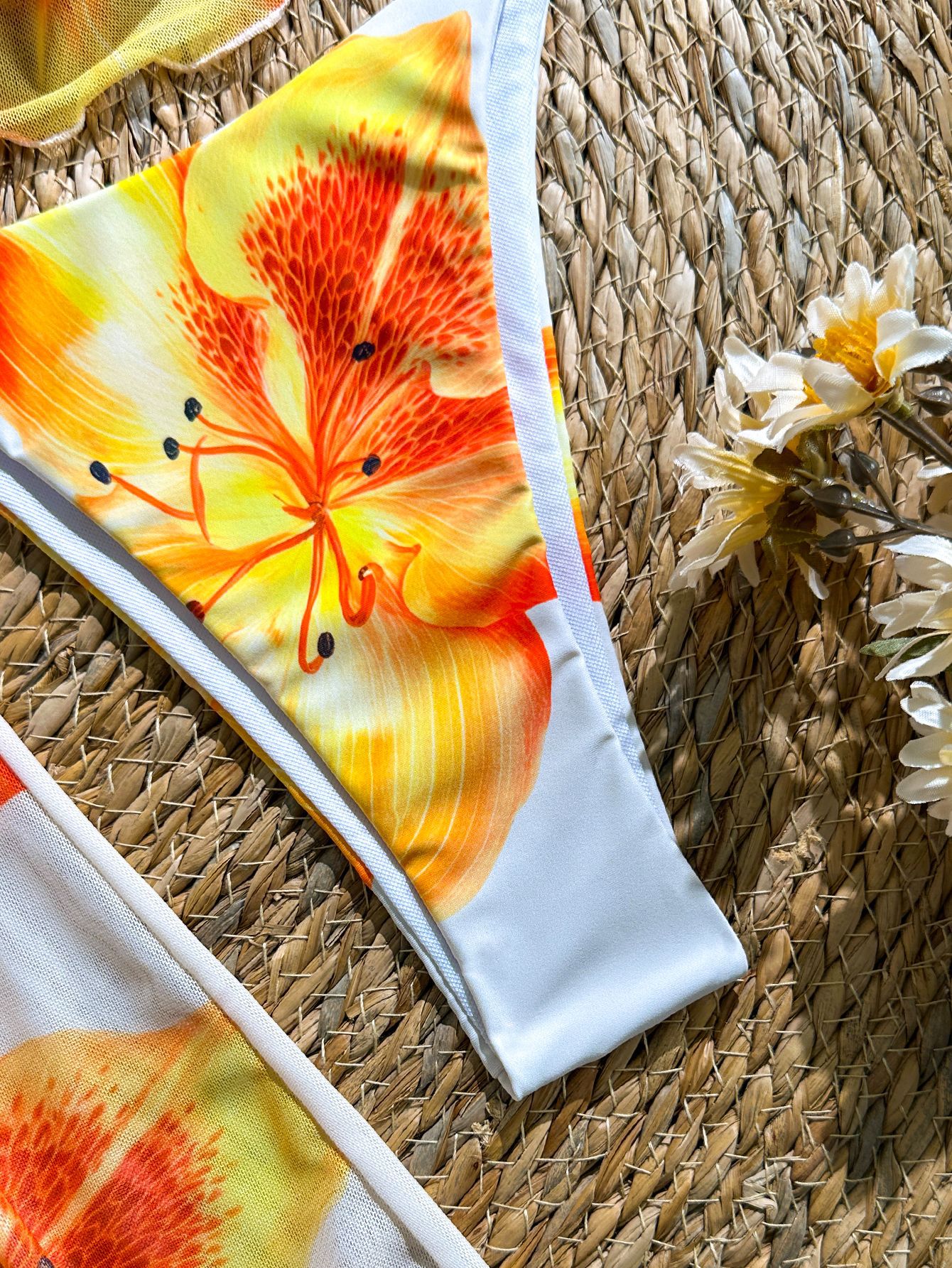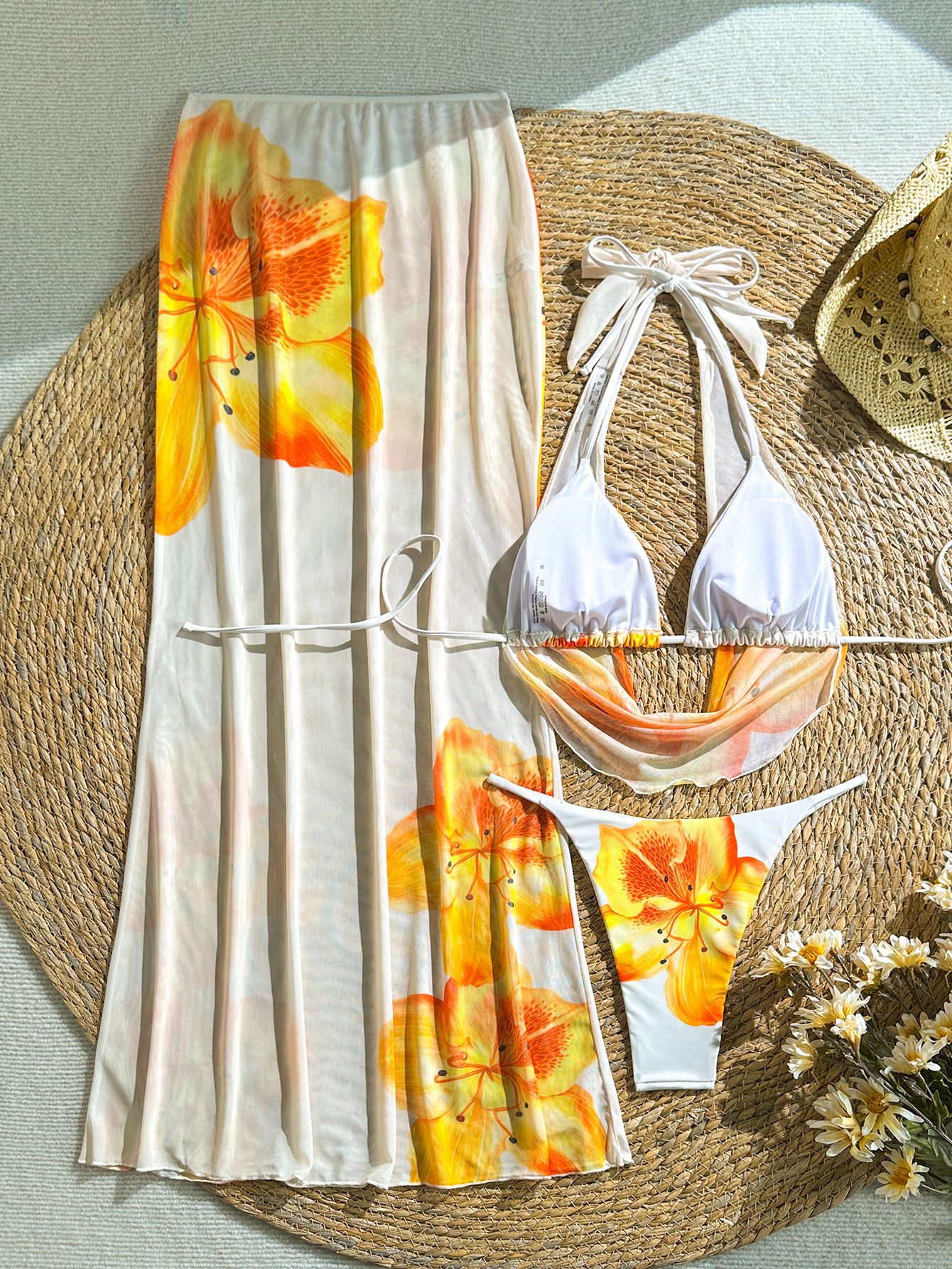 2026欧美外贸定版印花三角杯性感速干罩衫长裙比基尼三件套泳衣女