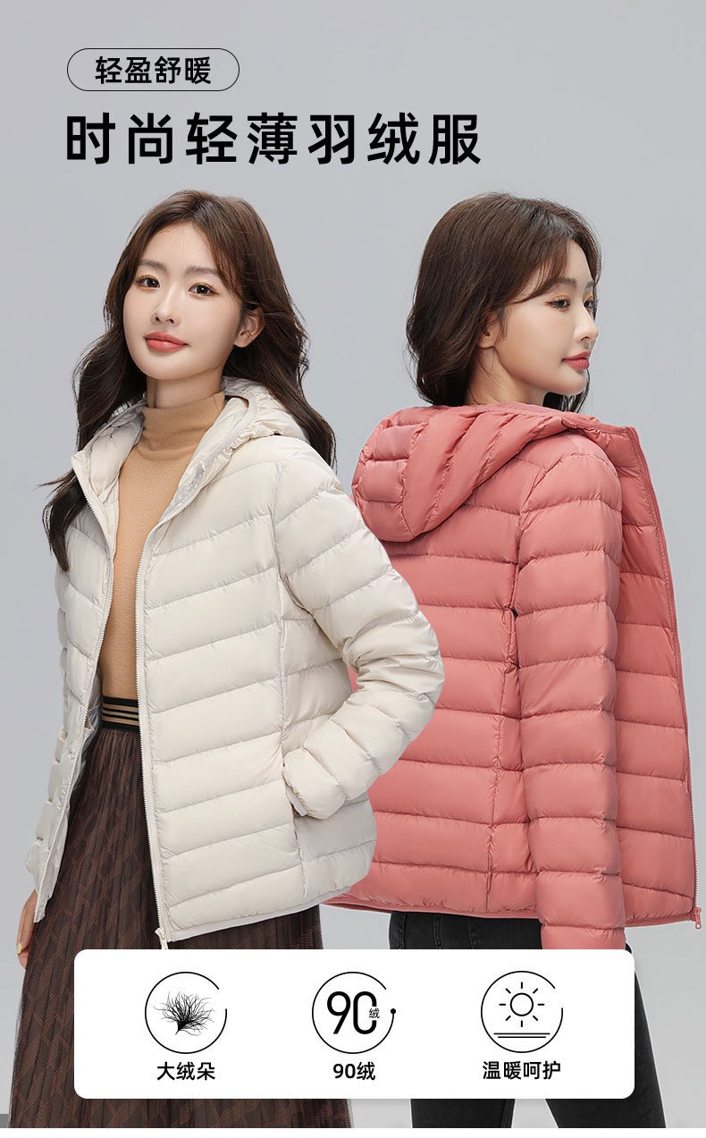 推荐理由:新韩式秋冬女连帽羽绒服90绒新国标轻薄保暖大码短款外套简约百搭