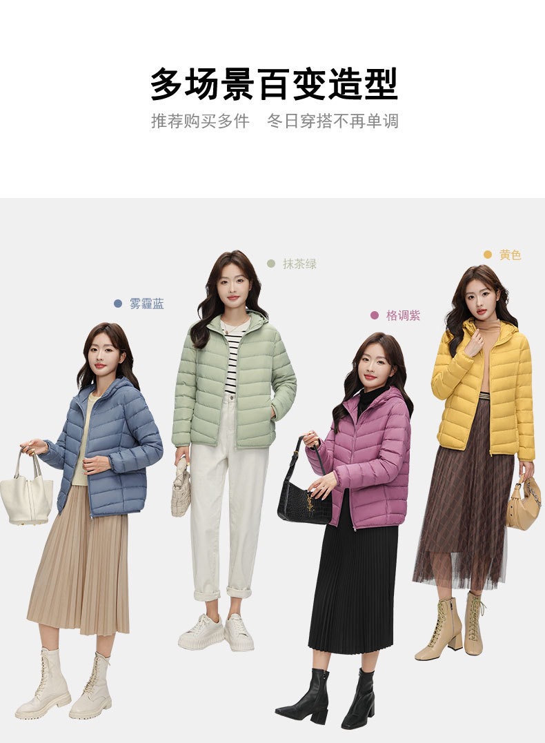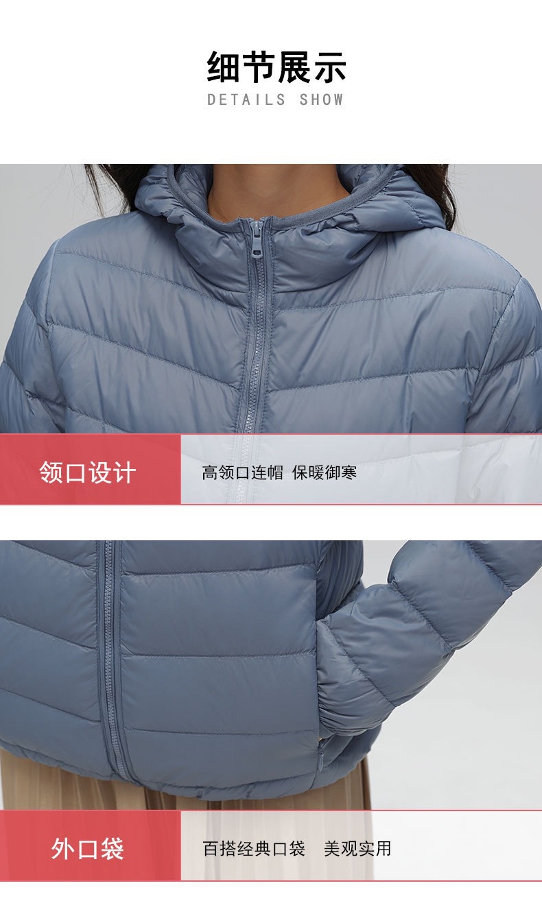 关键词:女连帽羽绒服,女轻薄连帽羽绒服