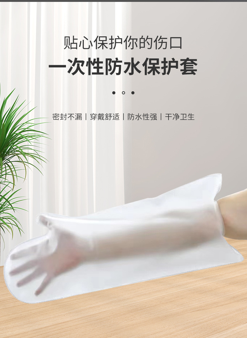 1.本产品为一次性使用的PU防水套,具体使用次数与客户的使用习惯和伸入口的松紧度有关;