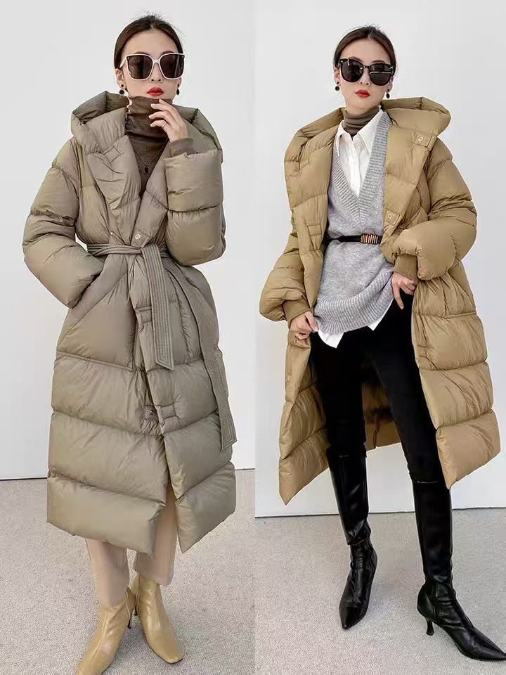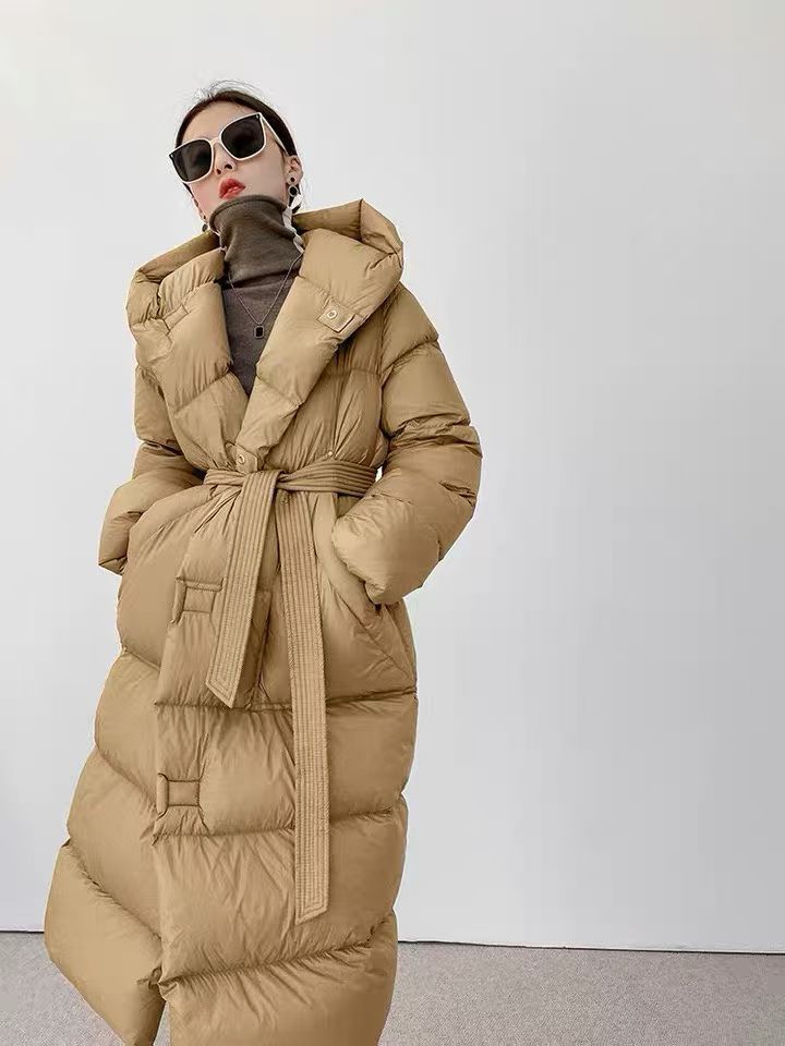 推荐理由:秋冬加厚韩版腰带长款90白鸭羽绒服女外套潮简约高端流行保暖面包