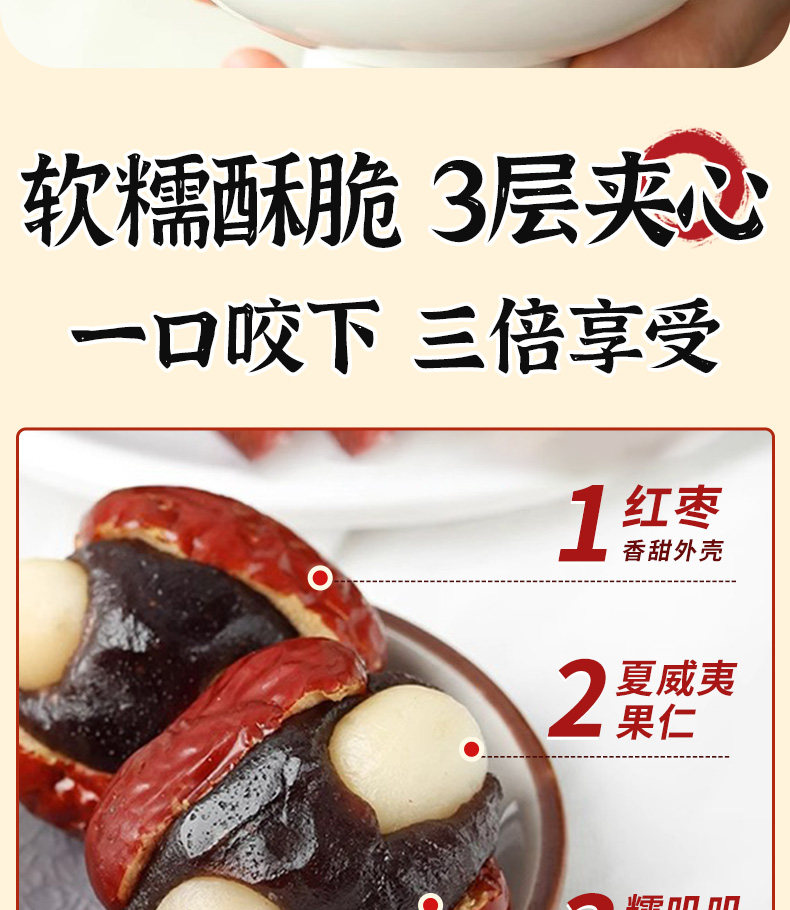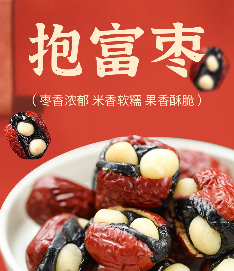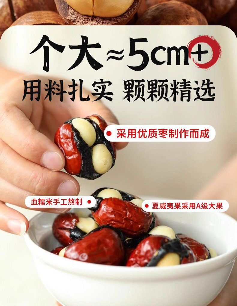 抱富暴富枣纯手制作红枣夹血糯米报抱抱枣子零食健康夏威夷果