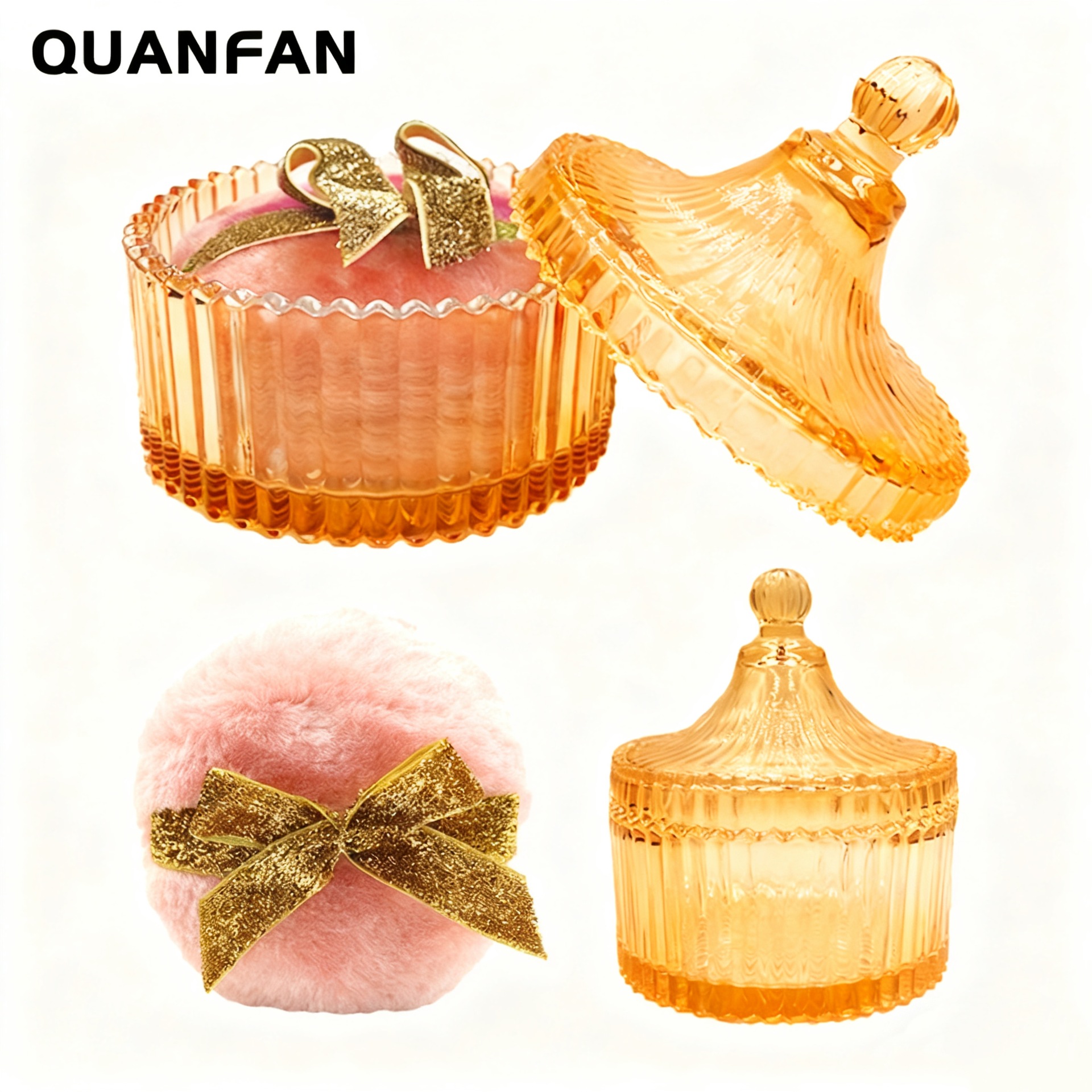 琥珀色玻璃立绒长毛超纤维毛绒蝴蝶结婴儿爽身高光散粉扑化妆工具