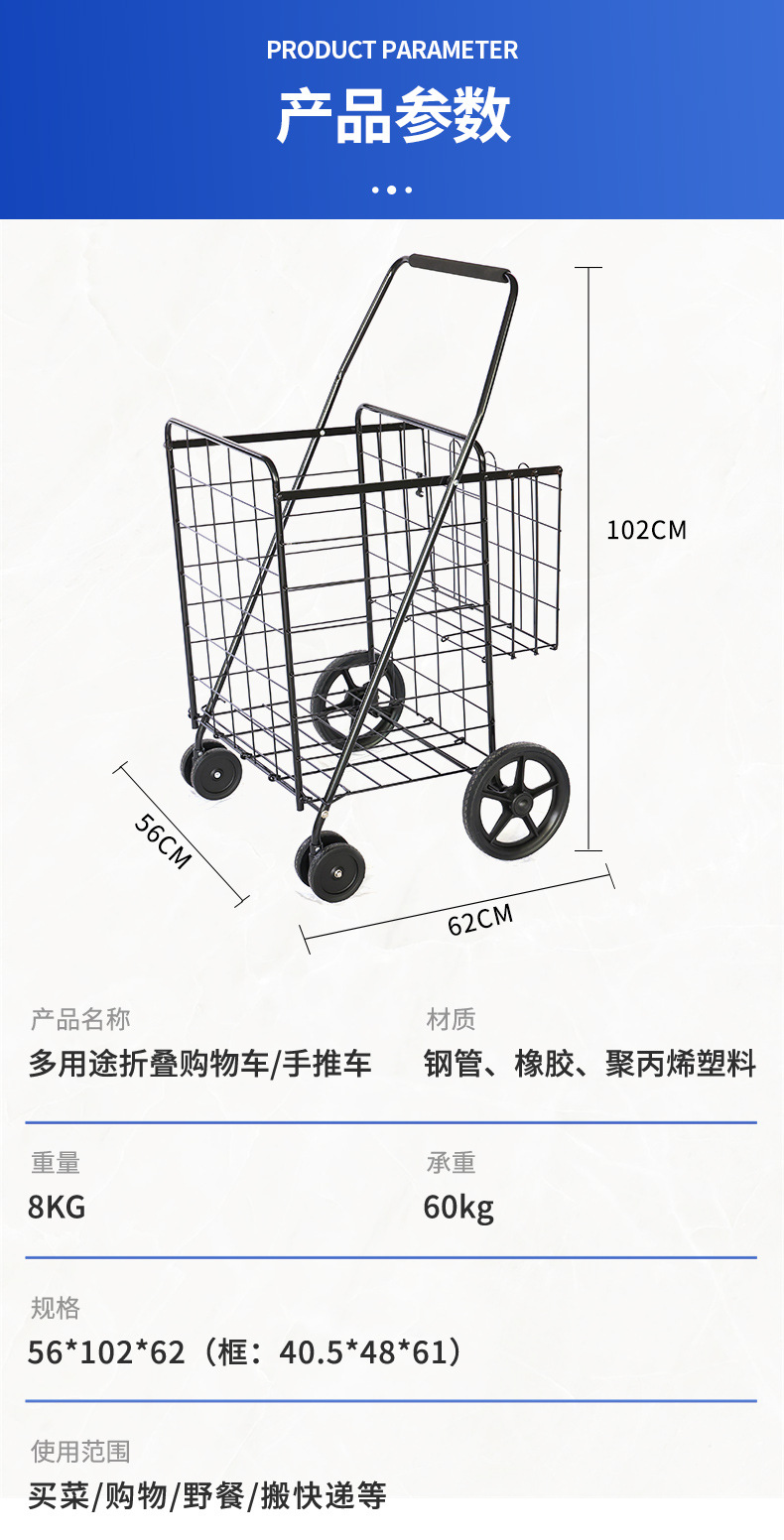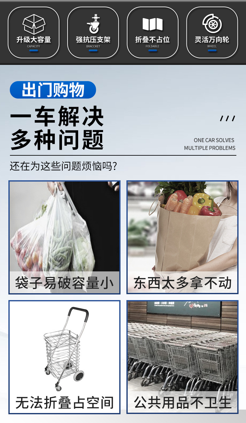 家用折叠购物车便携老人购物买菜小拉车大容量摆摊理货搬运推拖车