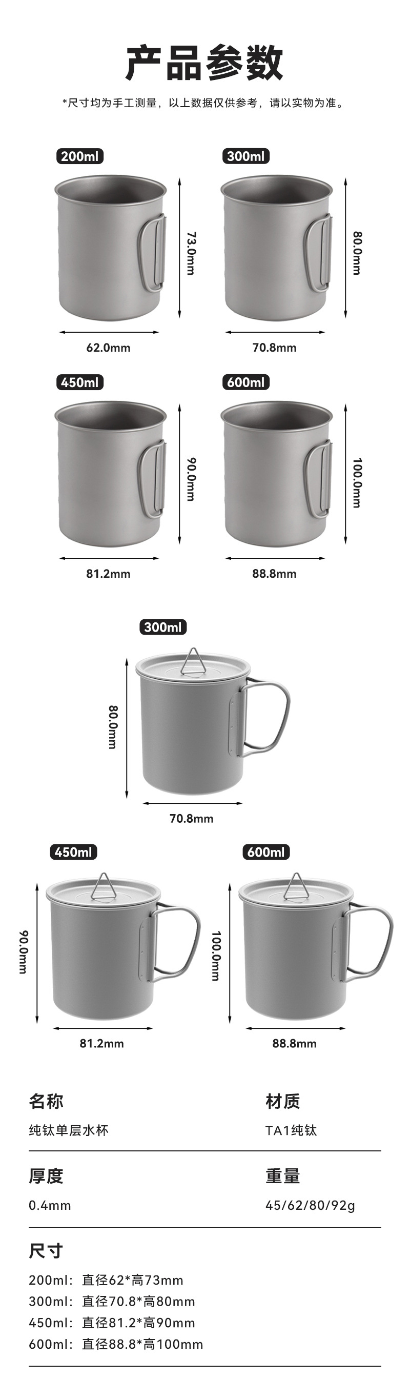 纯钛马克杯轻量环保折叠便携加厚户外露营旅行家用钛水杯跨境批发