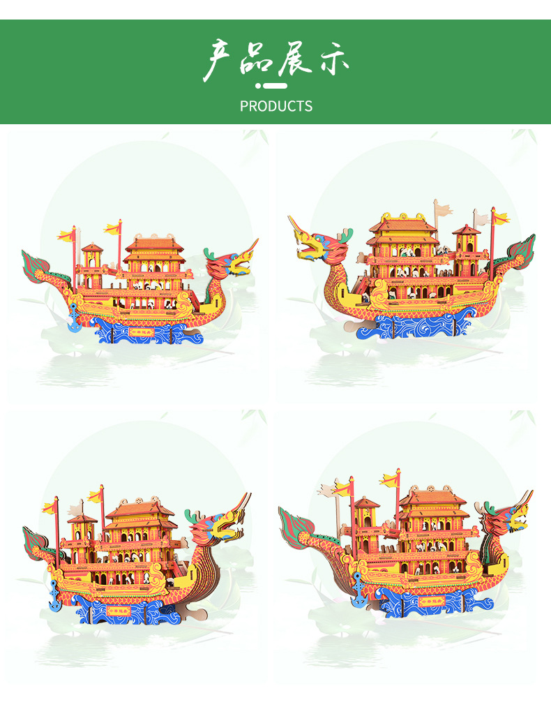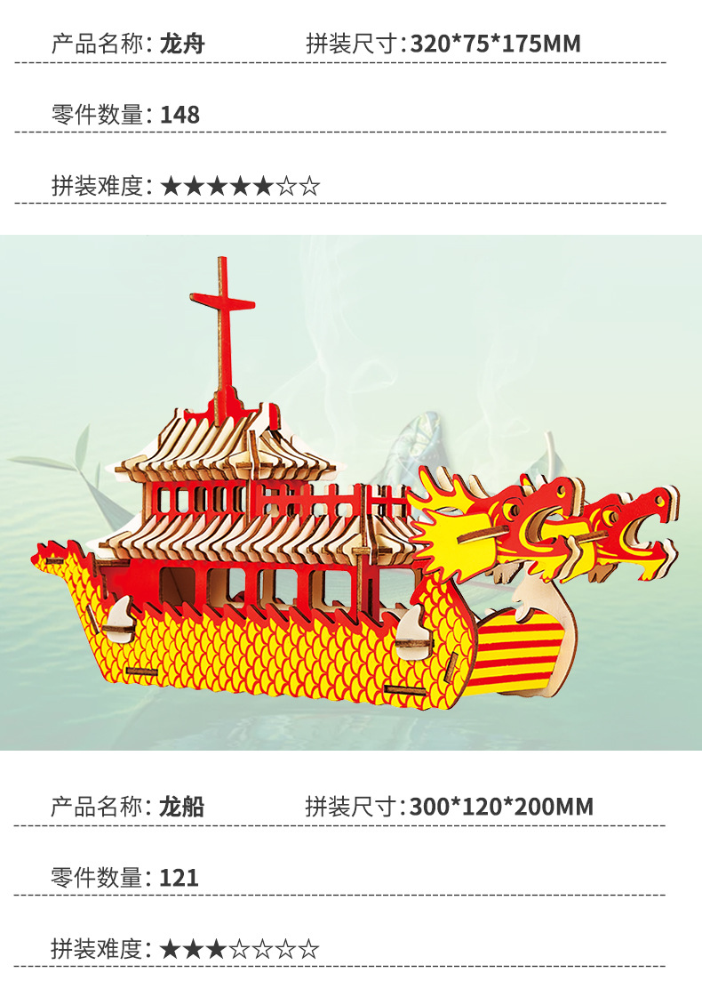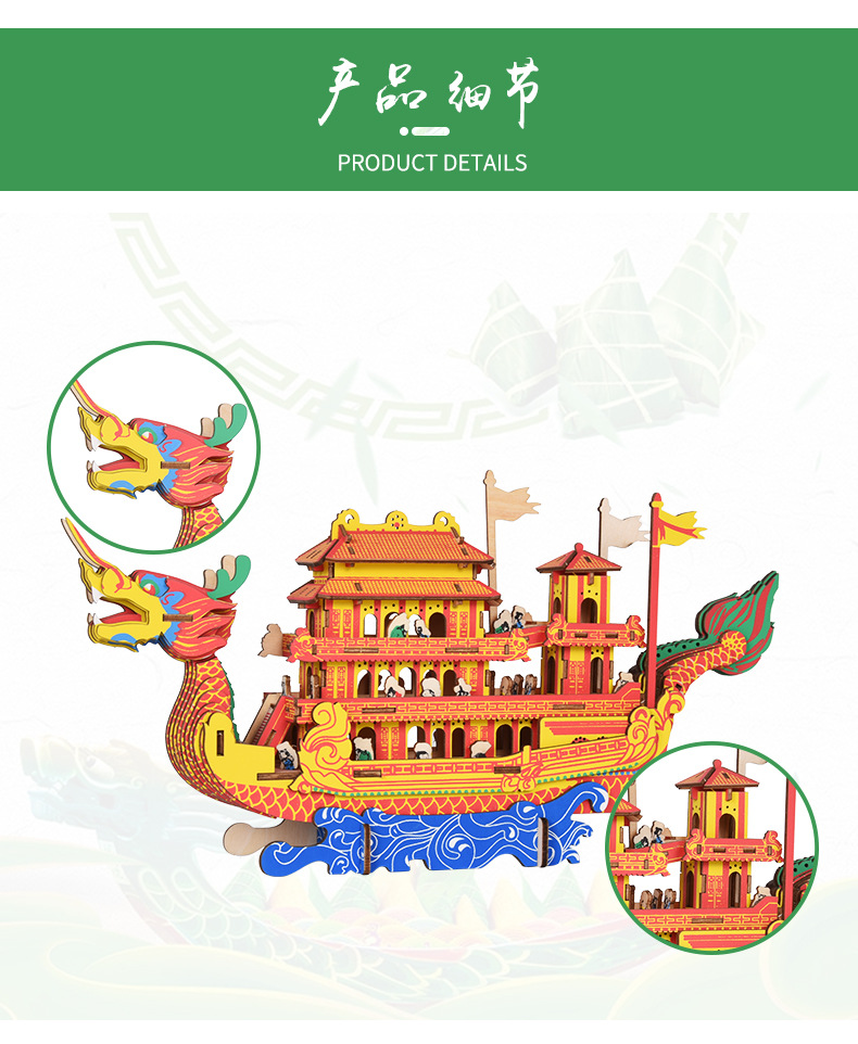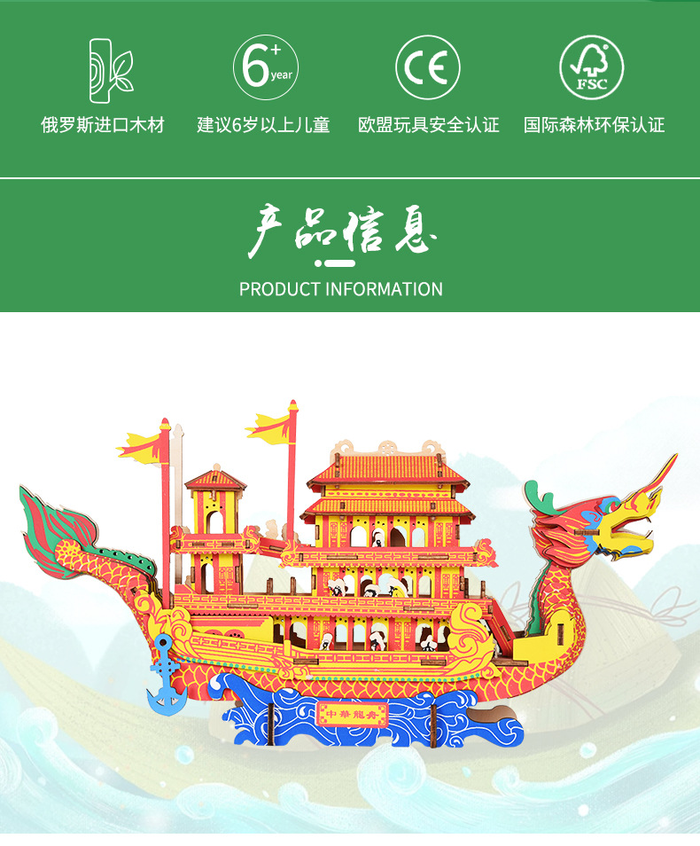 [ 商业 ] 宏泰端午节礼品3d木质立体拼图龙舟儿童玩具摆摊地摊货源玩具批发