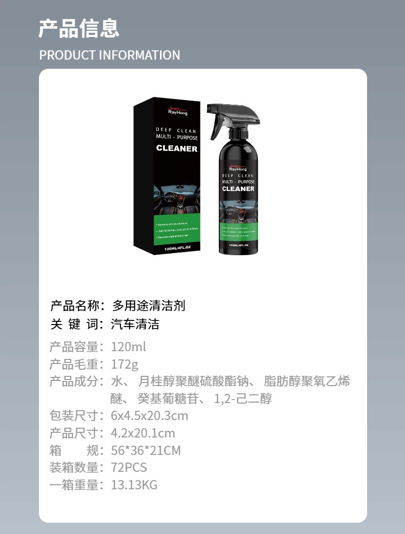 RAYHONG 多用途清洁剂 汽车车内饰皮革塑料多用途污渍便捷清洁剂