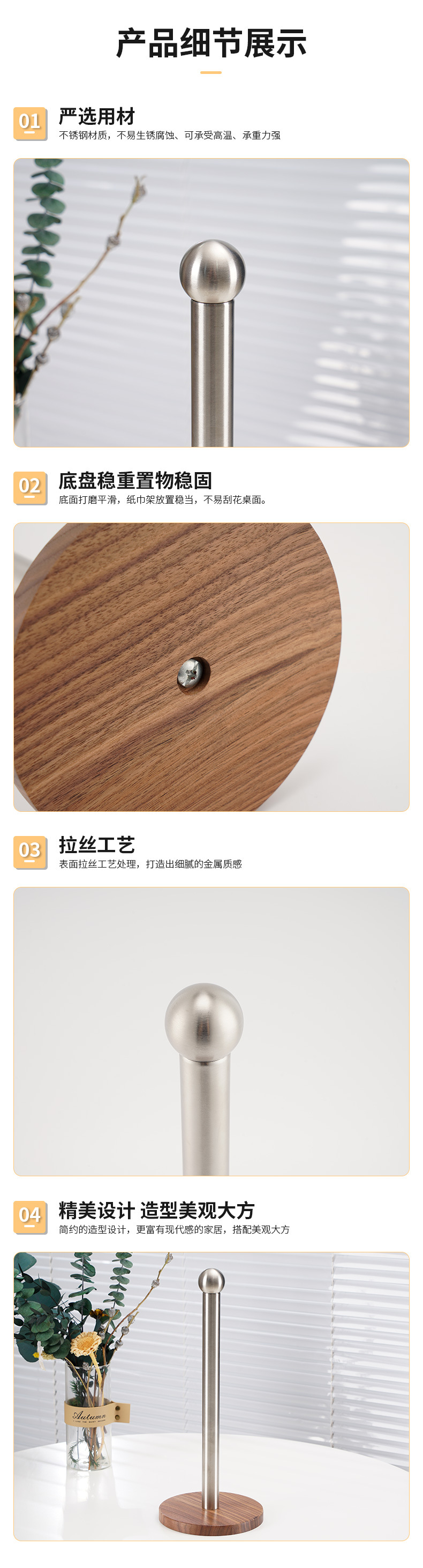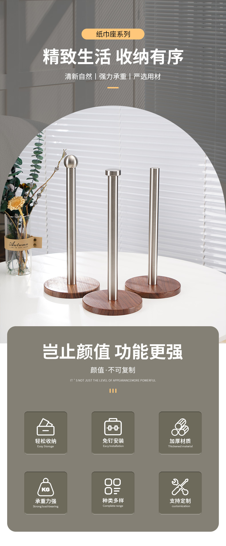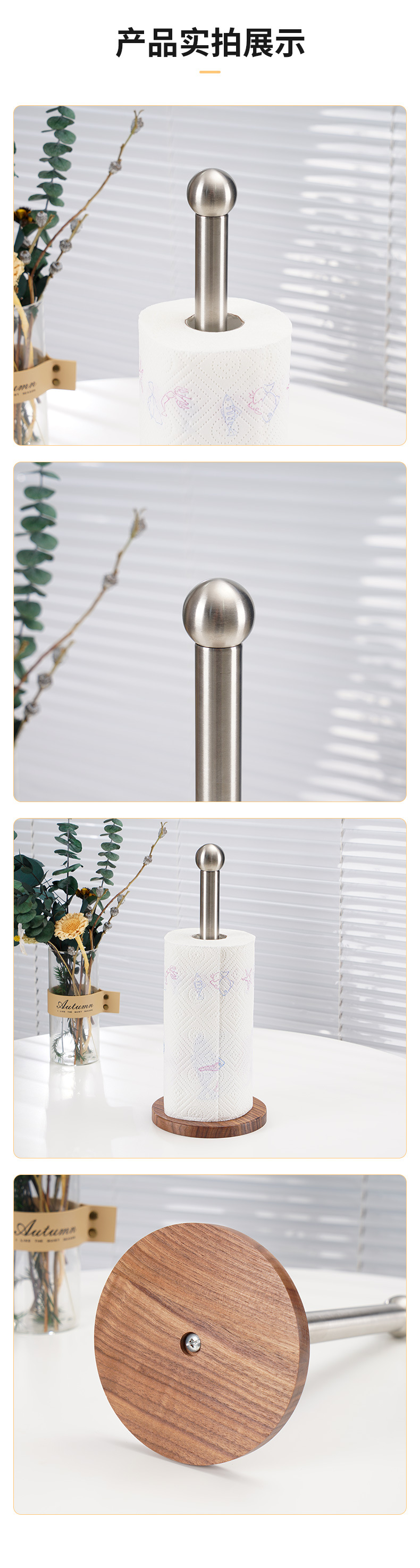 跨境专供免打孔纸巾架餐厅卷纸架不锈钢桌面纸巾座厨房立式纸巾架
