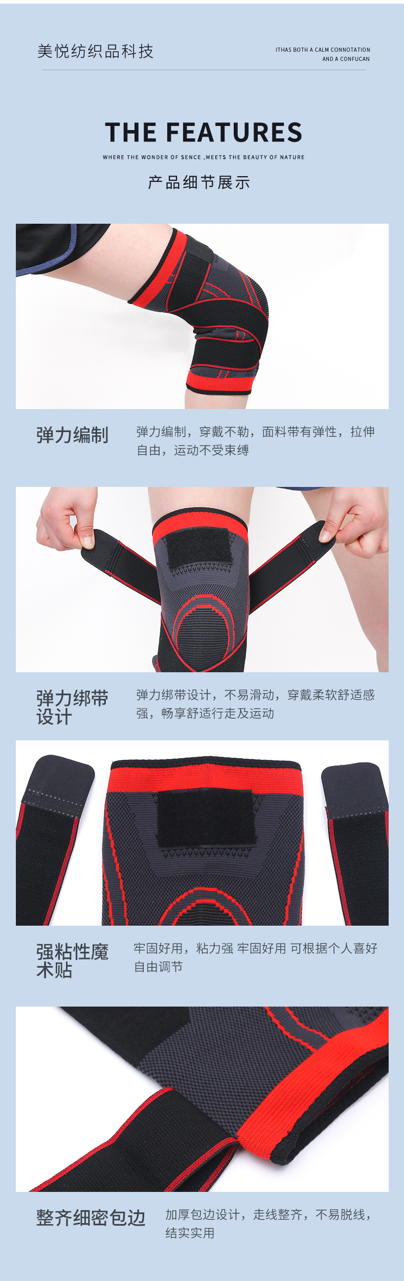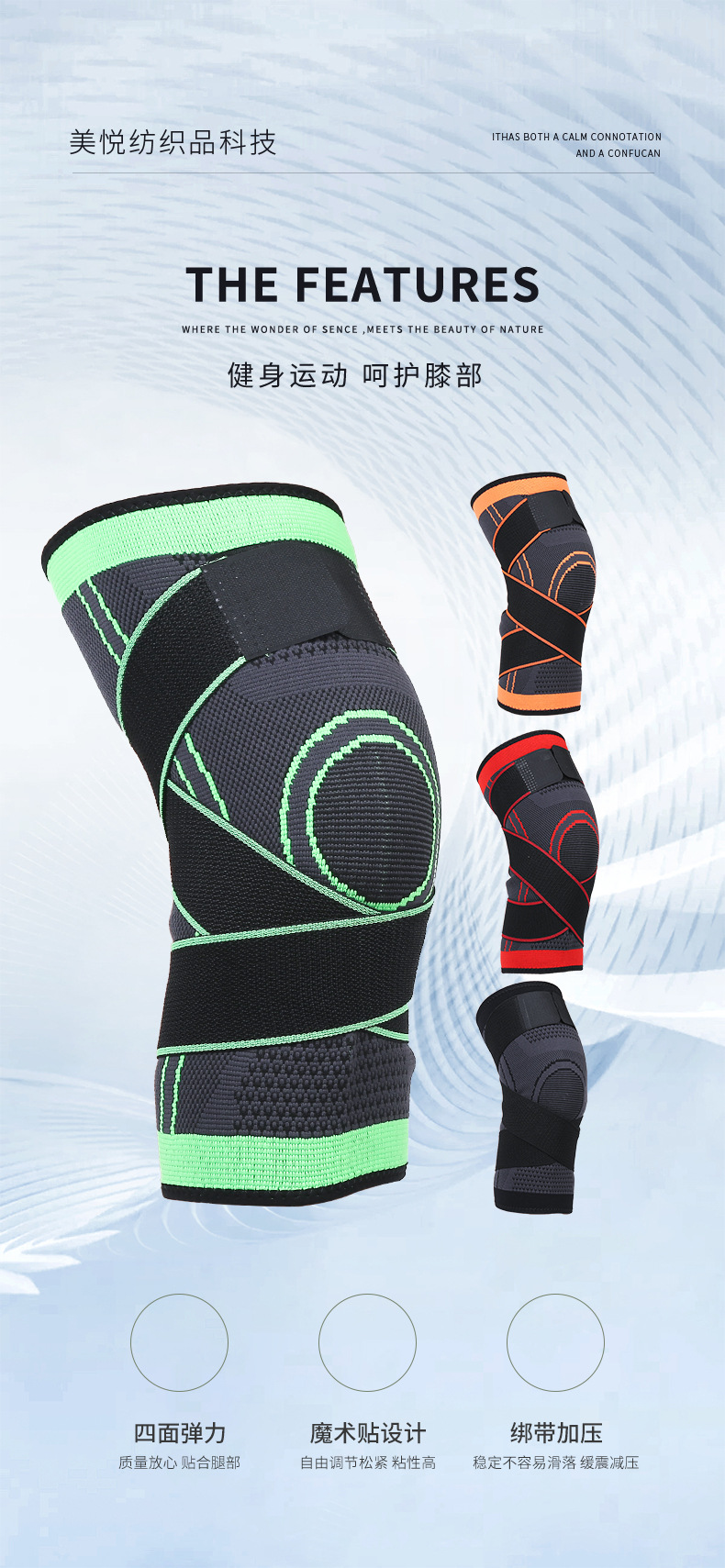 针织加压绑带护膝骑行登山运动吸汗透气尼龙绑带护膝护具