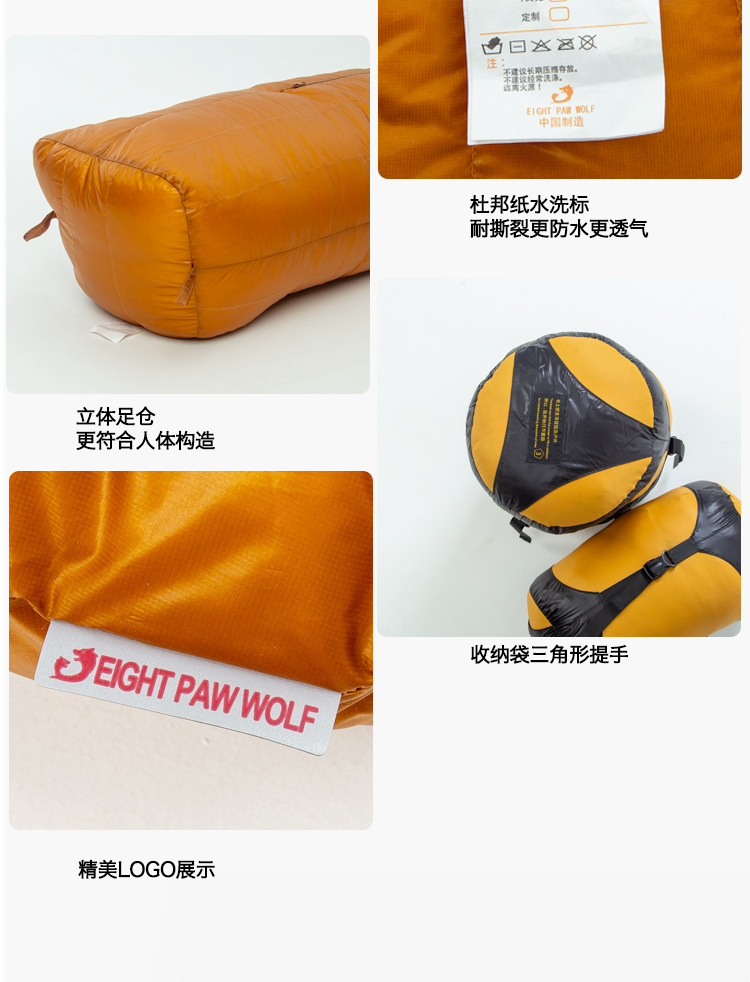 [ 商业 ] EIGHT PAW WOLF 野营睡袋800蓬10D羽绒超轻睡袋加厚木乃伊睡袋