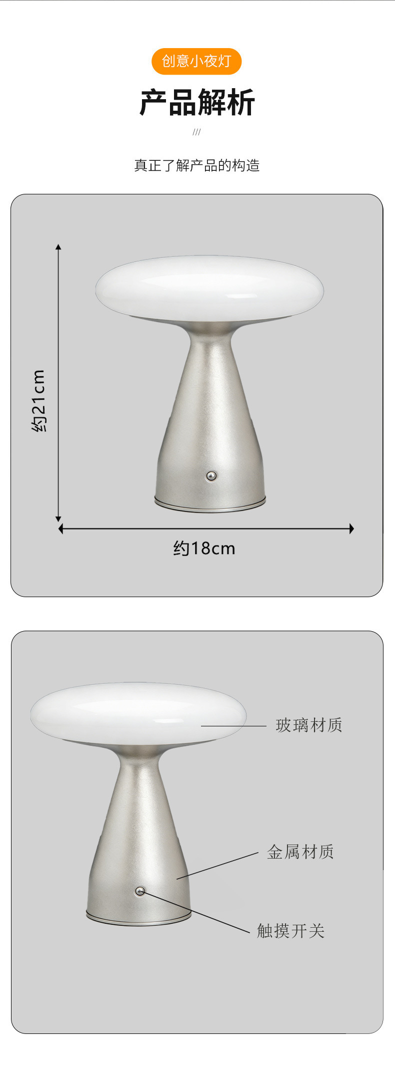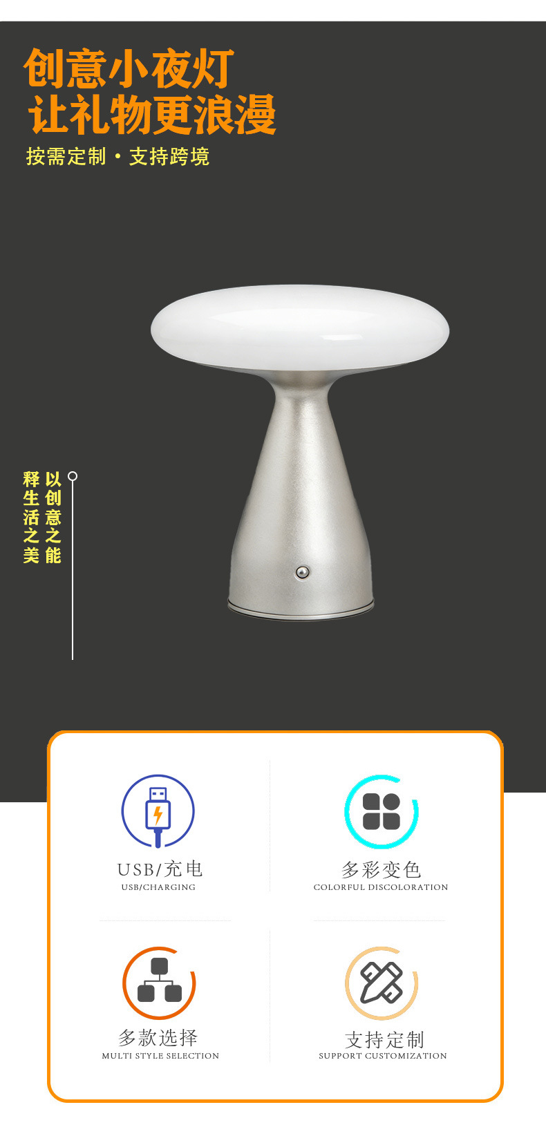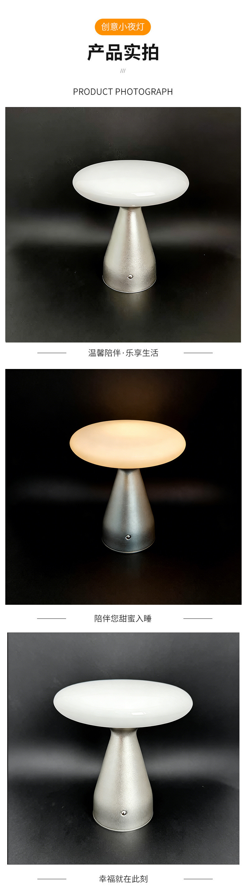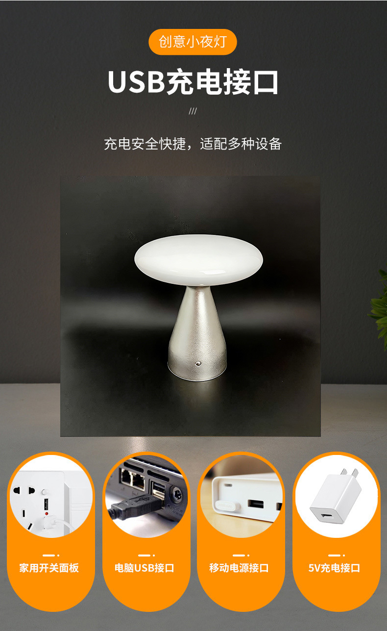 北欧中古ins风卧室床头创意蘑菇台灯客厅书房氛围充电触摸小夜灯