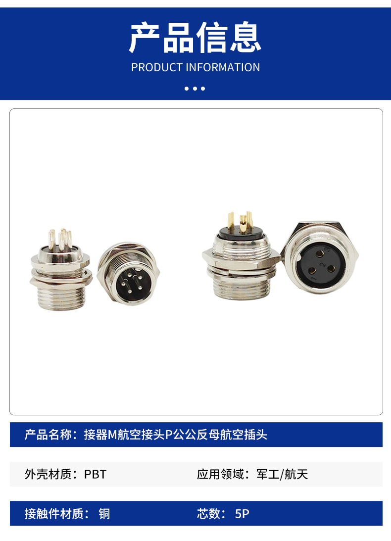 厂家定 制连接器M12 航空接头 5P公 公反母航空插头 插座 机械设