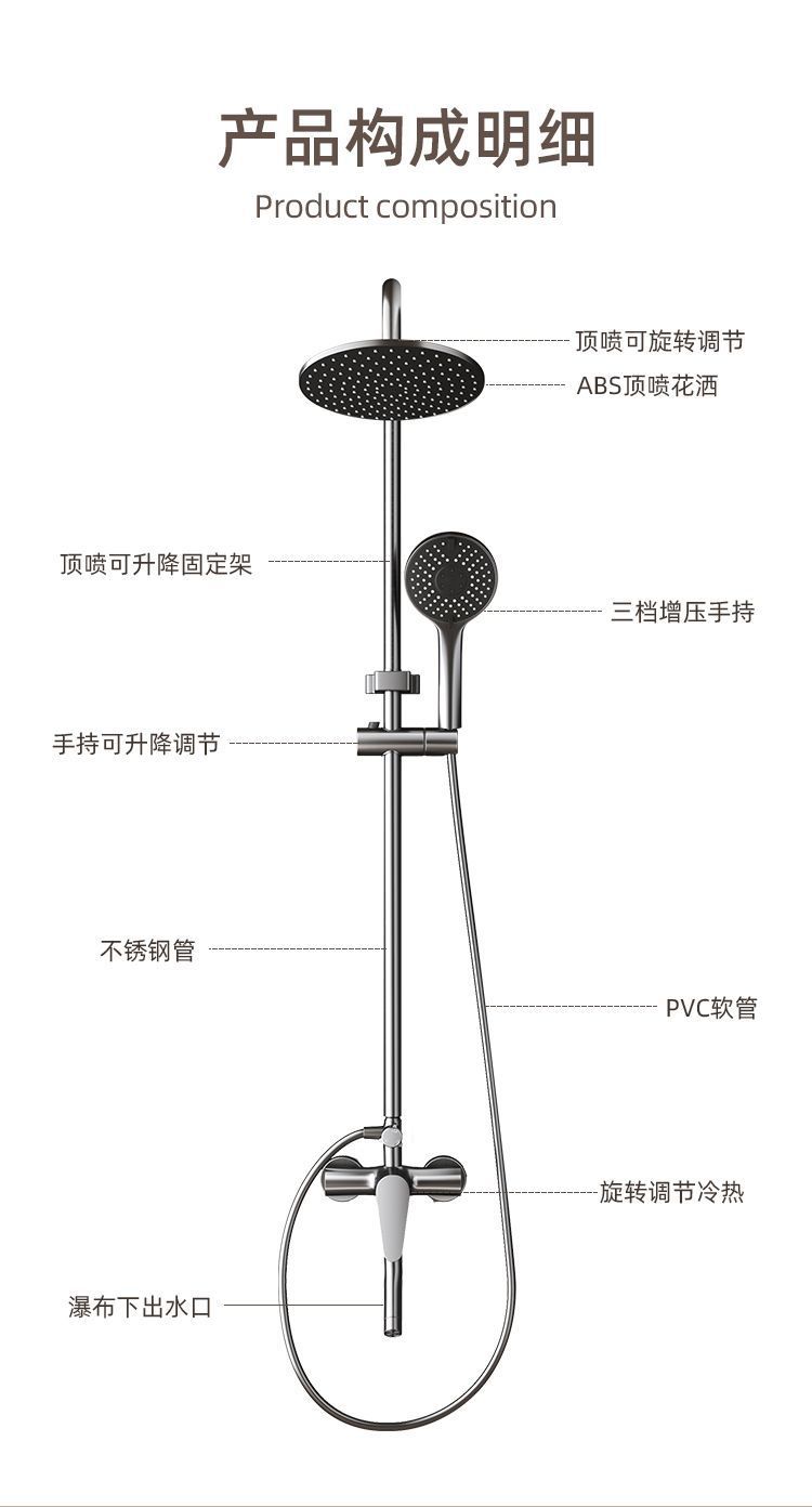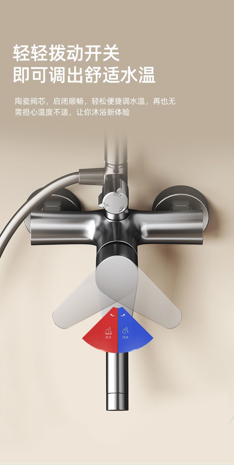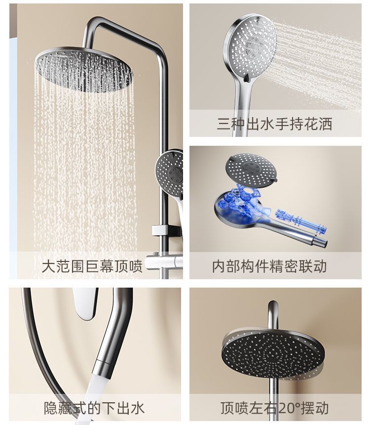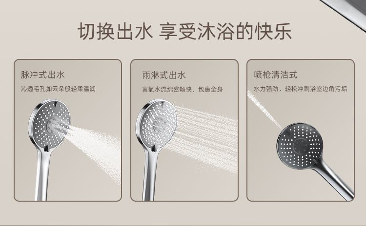 关键词:九牧全铜冷热淋浴三档洗澡花洒套装三联混水阀淋雨增压枪灰卫生间