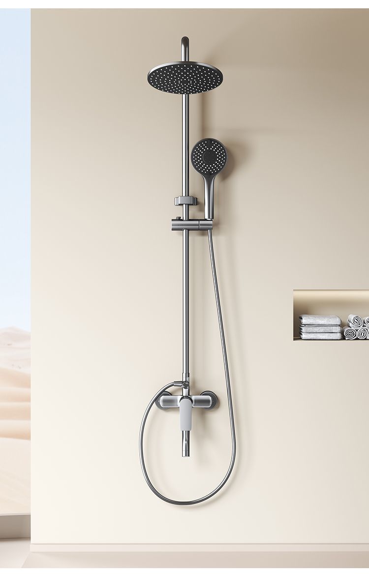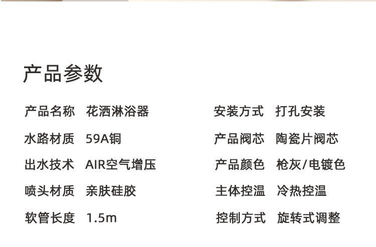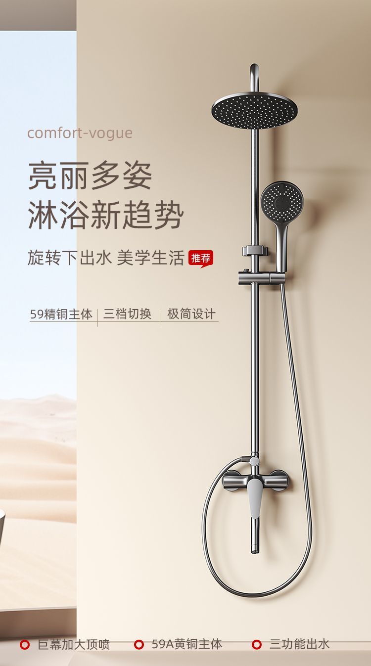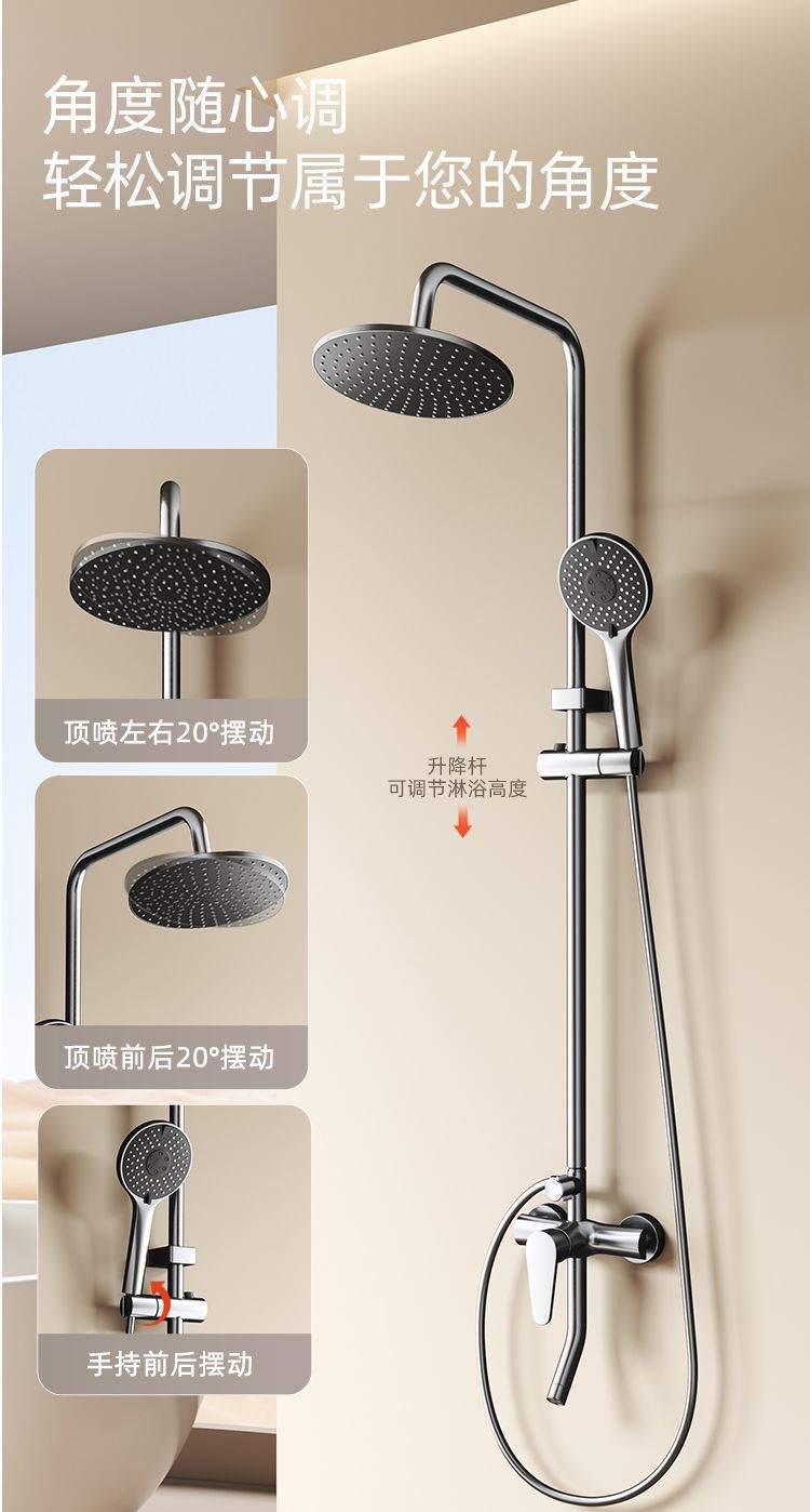 关键词:九牧全铜冷热淋浴三档洗澡花洒套装三联混水阀淋雨增压枪灰卫生间