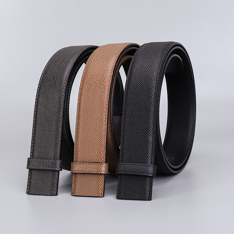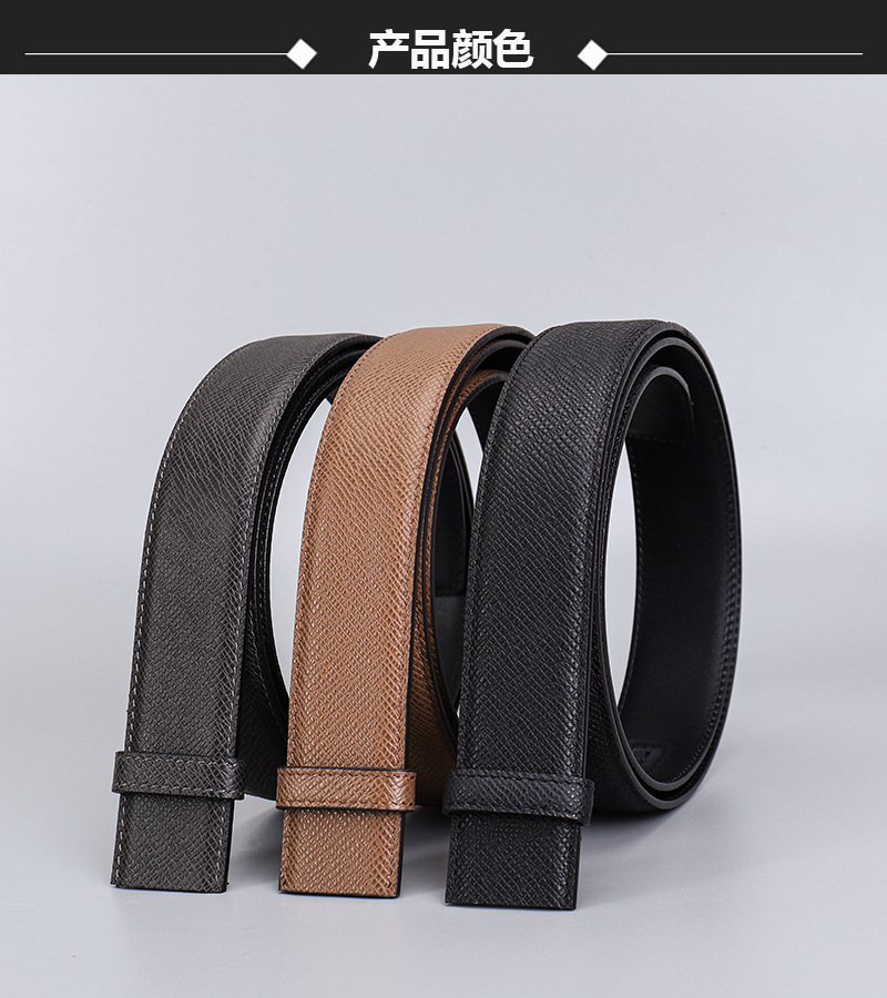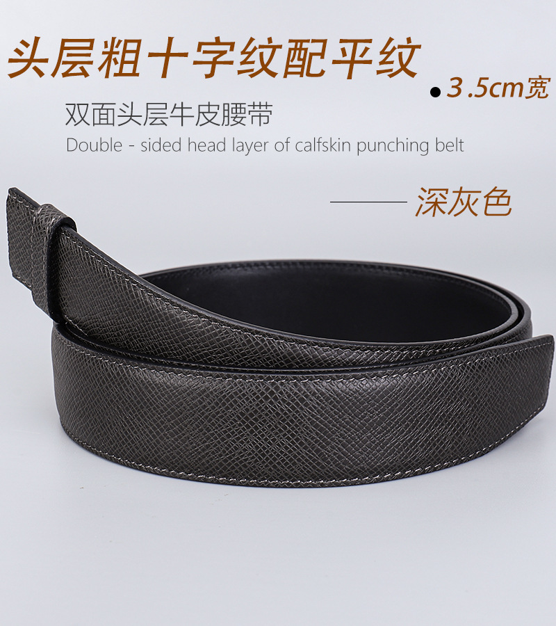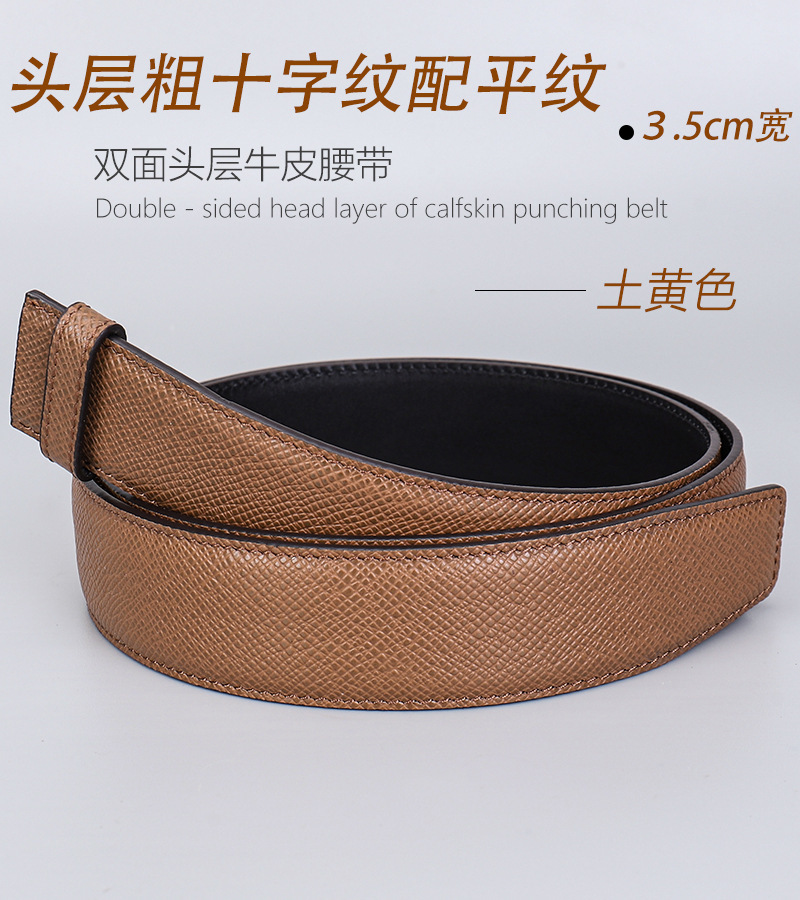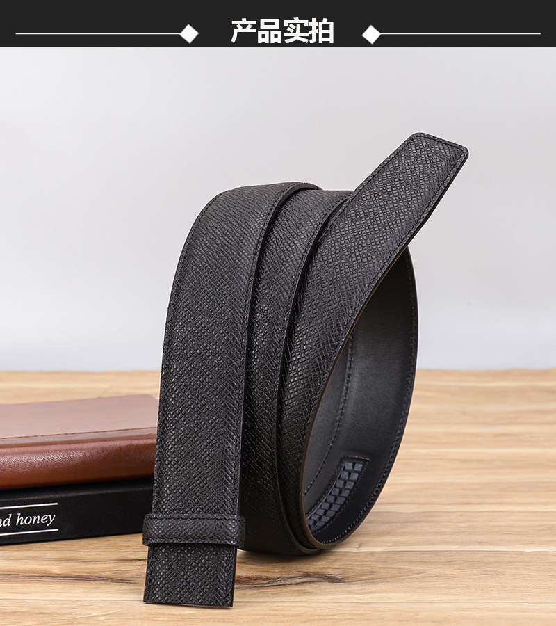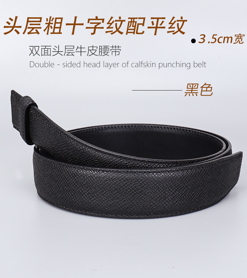 厂家直供男士3.5cm头层粗十字纹配平纹双面牛皮无扣带身支持跨境