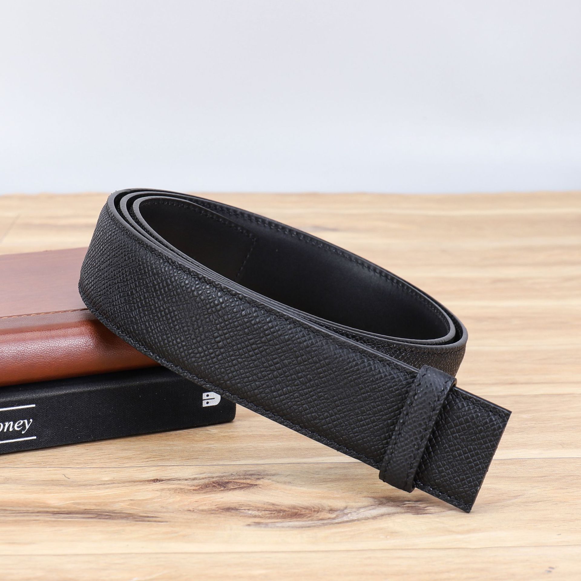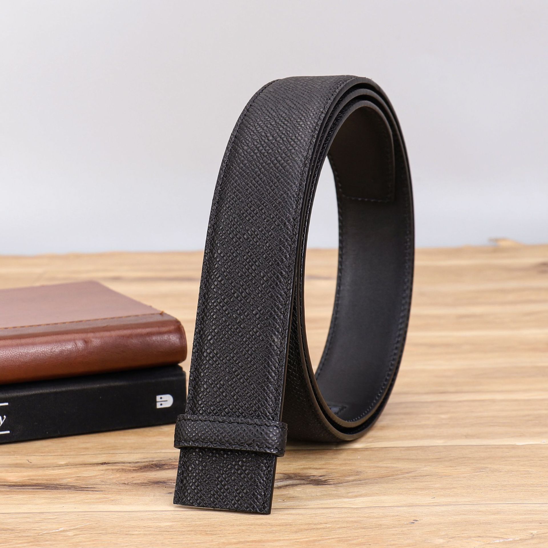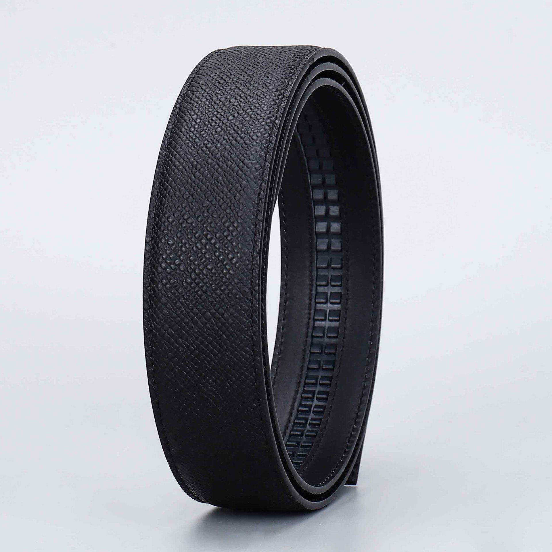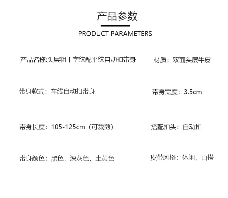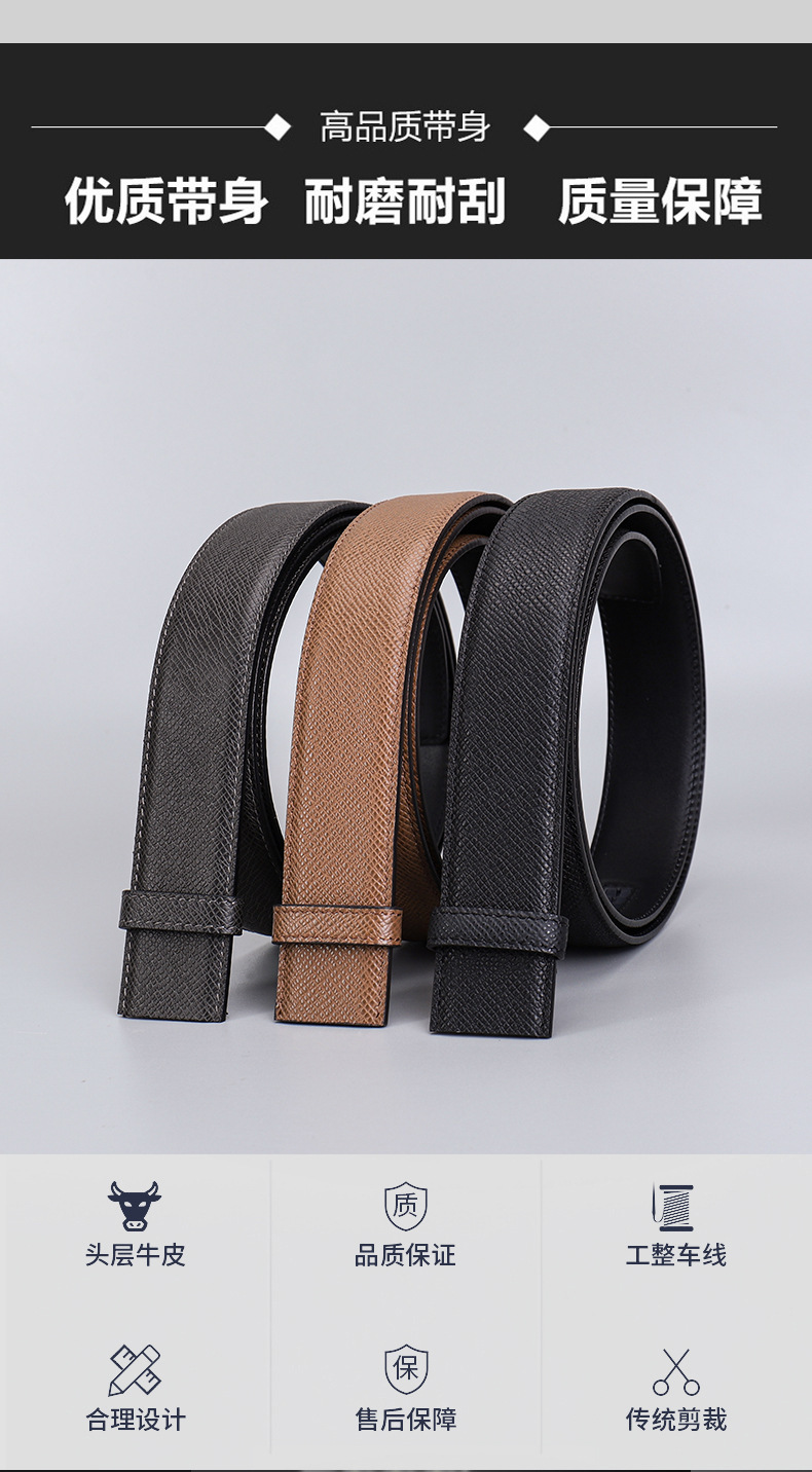 厂家直供男士3.5cm头层粗十字纹配平纹双面牛皮无扣带身支持跨境