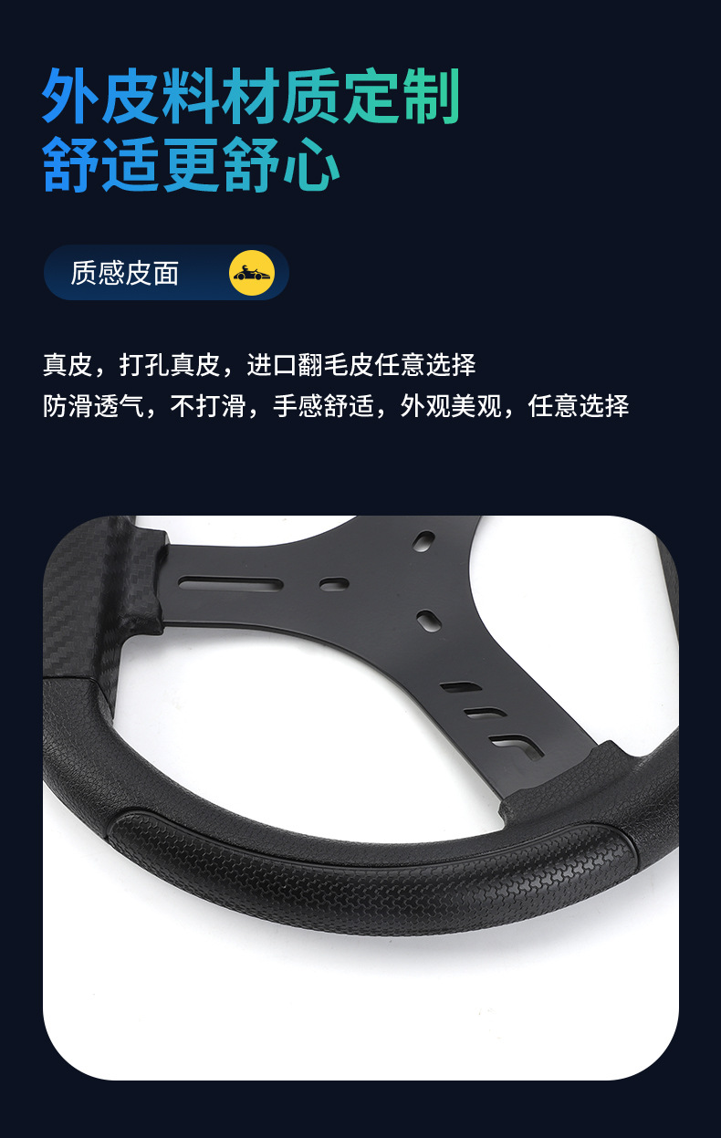 直径300毫米钢骨架碳纤维纹路卡丁沙滩车方向盘竞技转向盘转向盘